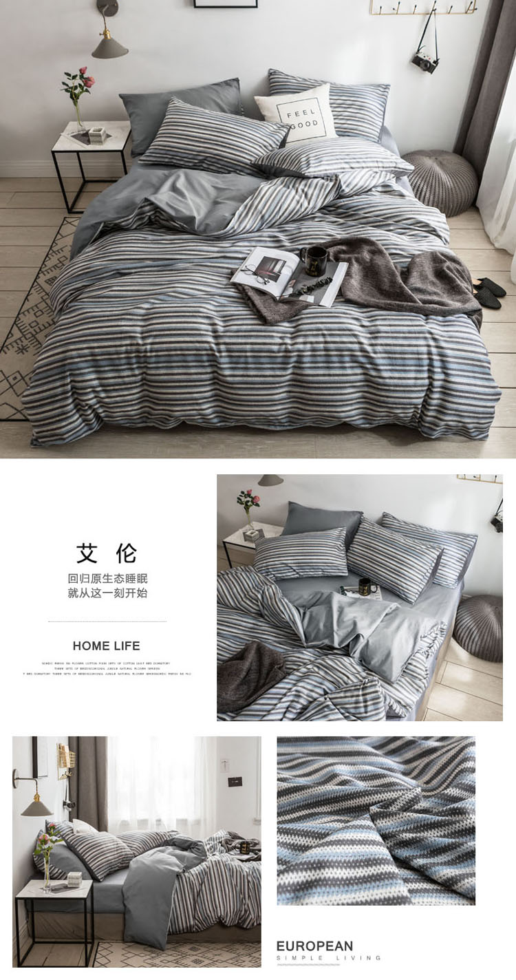 (总)梦家居 2024新款全棉13372简约小清新四件套,彩虹条纹,墨竹—黑色,墨竹—米色