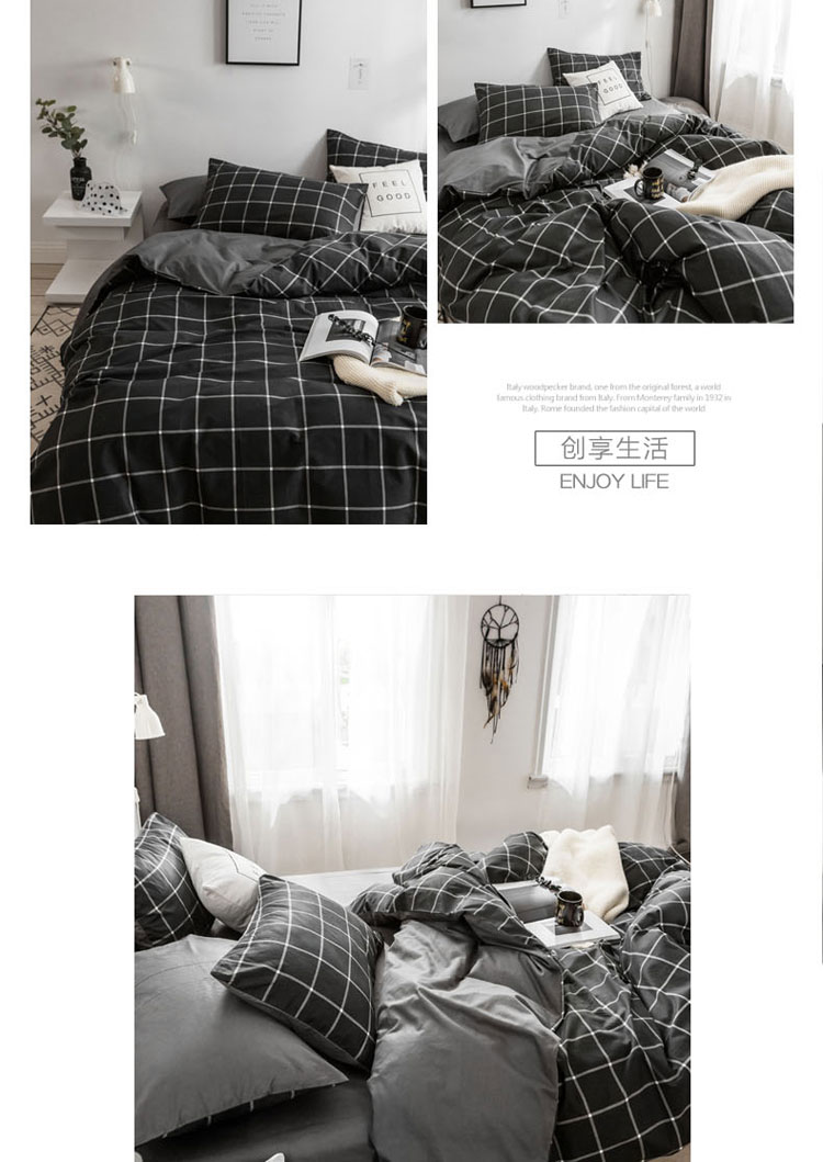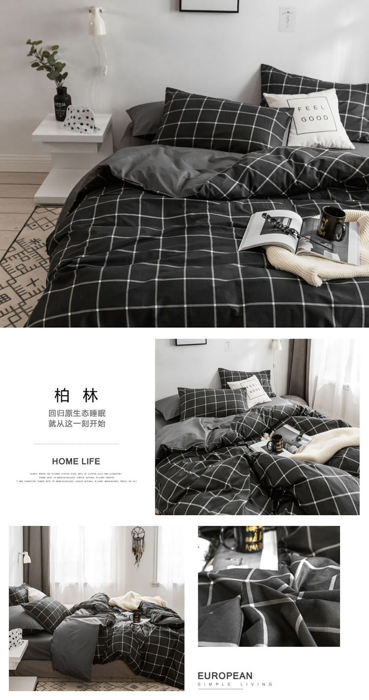 (总)梦家居 2024新款全棉色织水洗棉禁欲黑色系四件套,黑色—滚边款,黑色—花边款,黑色—基础款