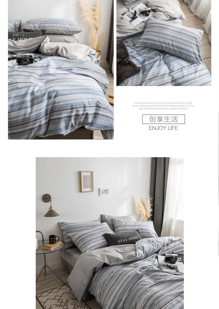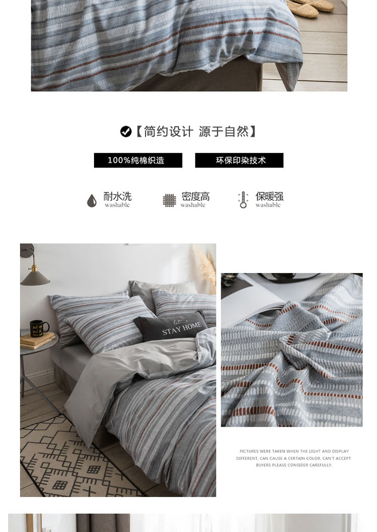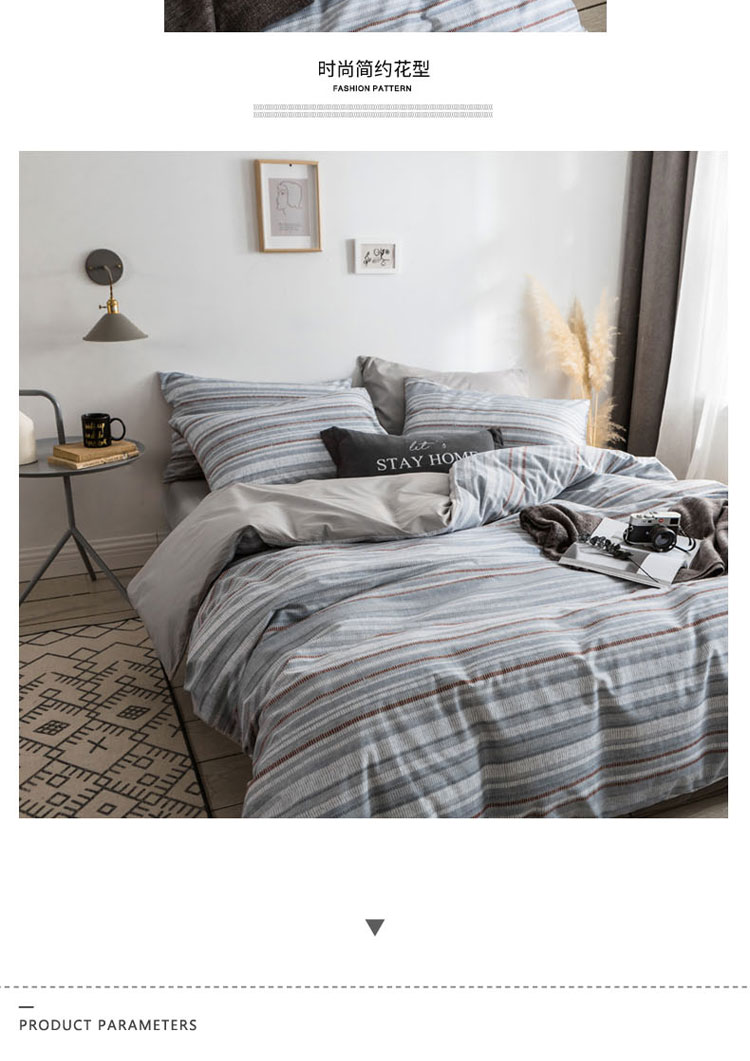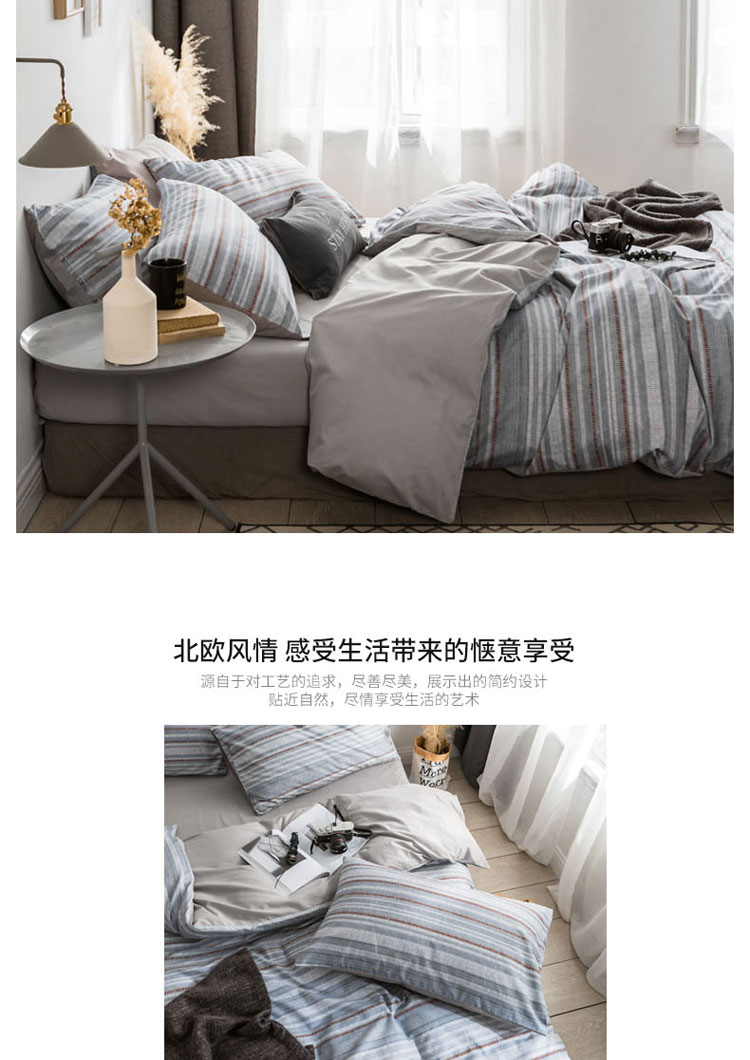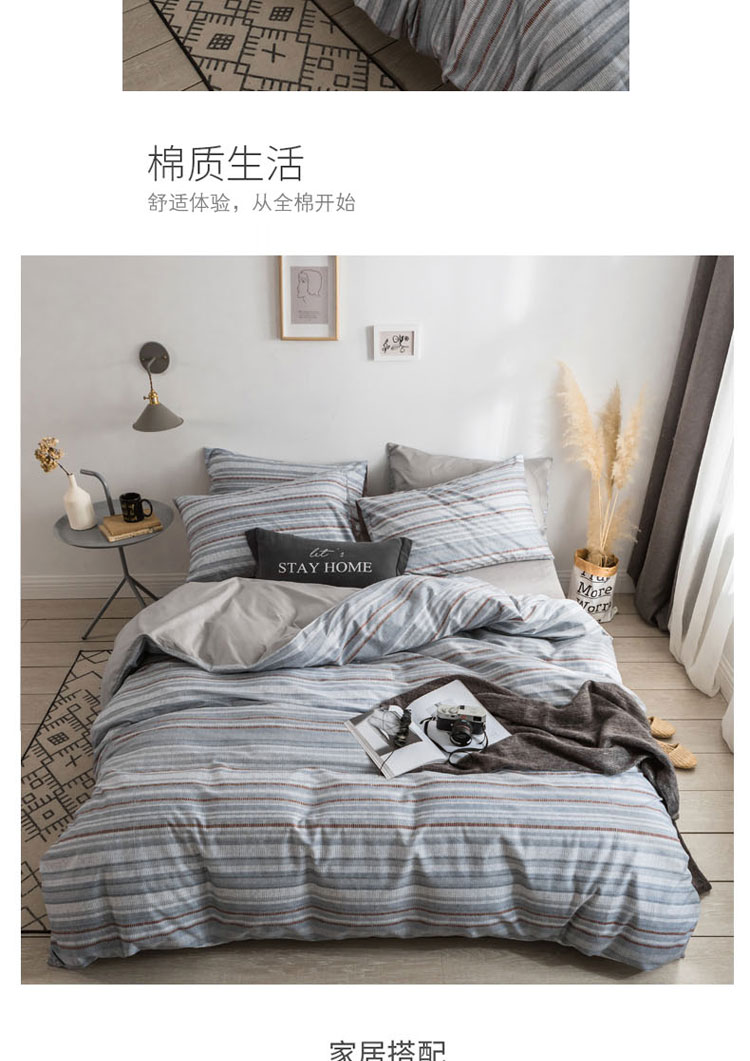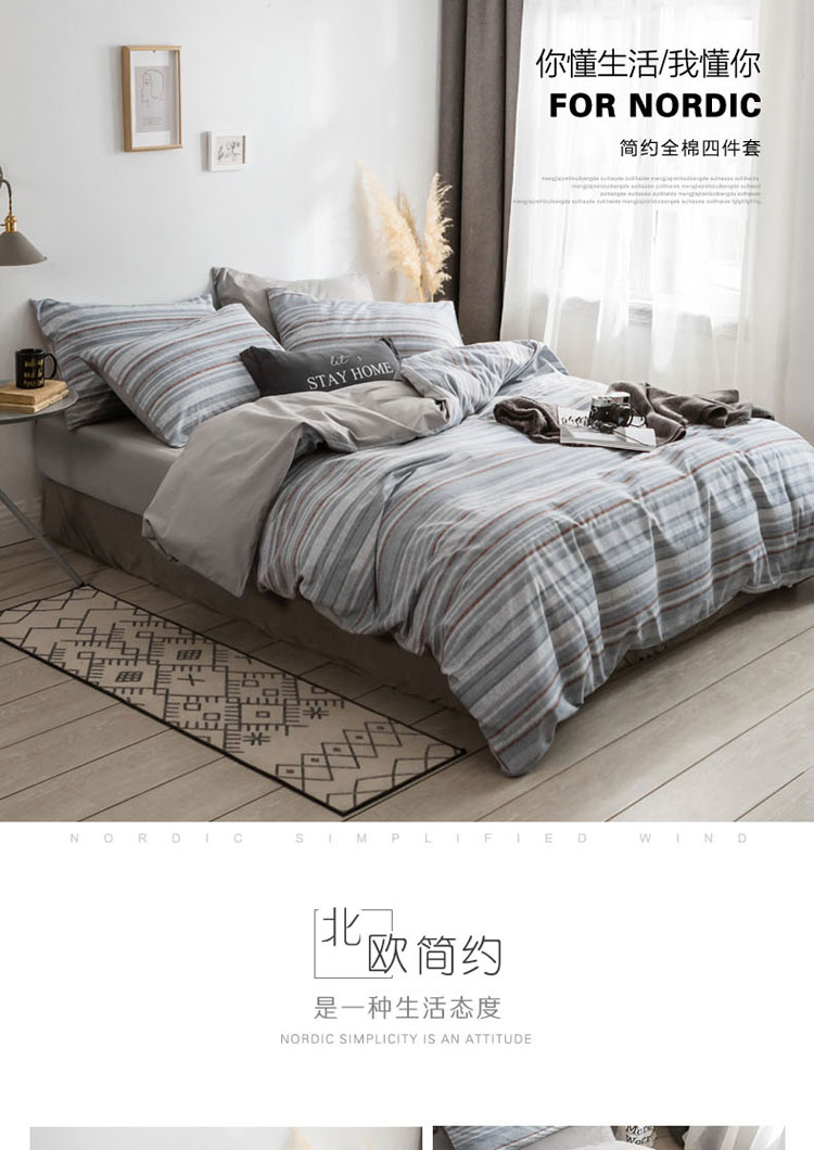 (总)梦家居 2024新款全棉13372简约小清新四件套,彩虹条纹,墨竹—黑色,墨竹—米色