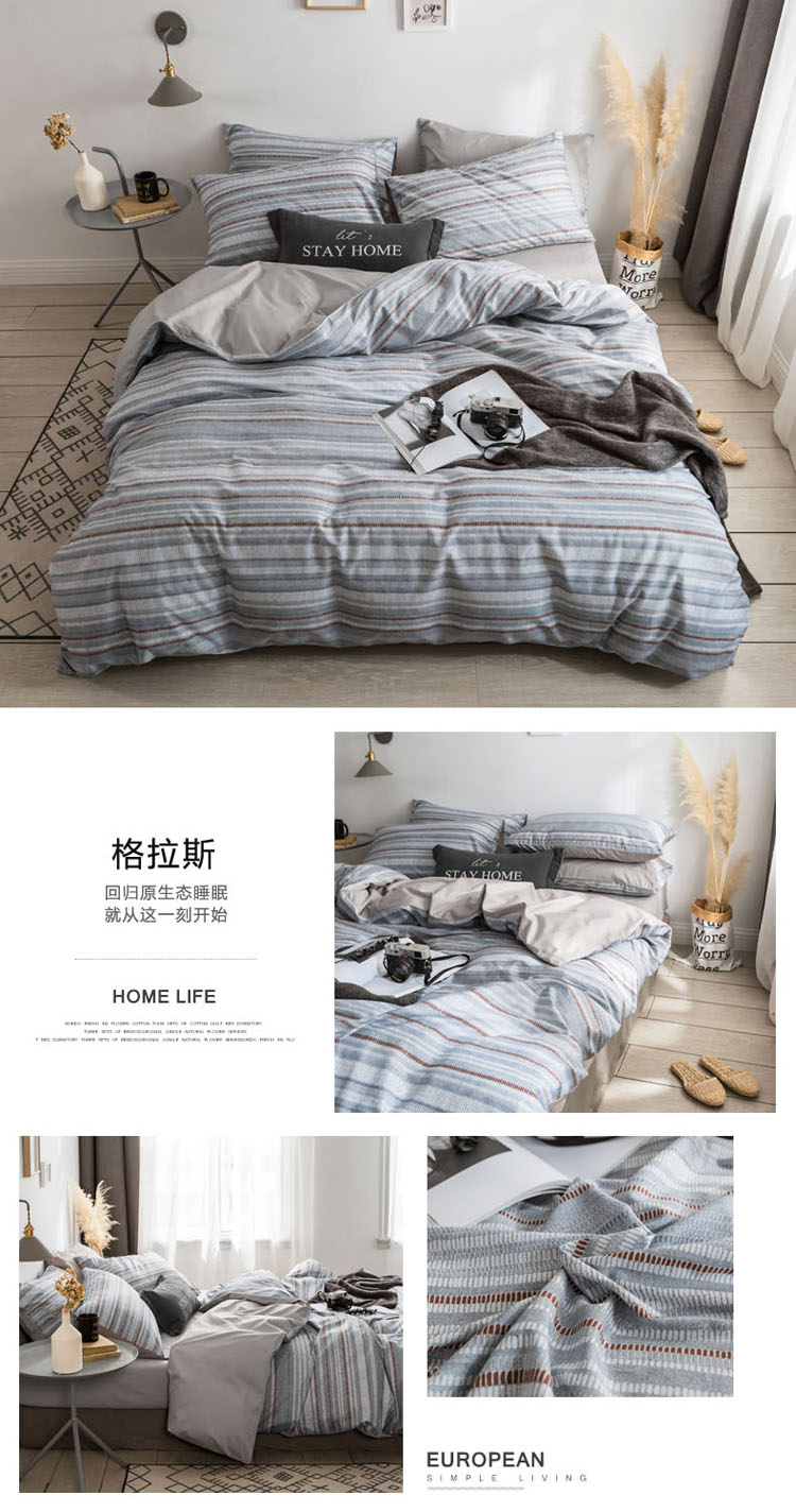 (总)梦家居 2022韩国花边款色织全棉水洗棉四件套,南瓜色,浅灰色,浅咖色,浅蓝色,浅绿色,深灰色,象牙白