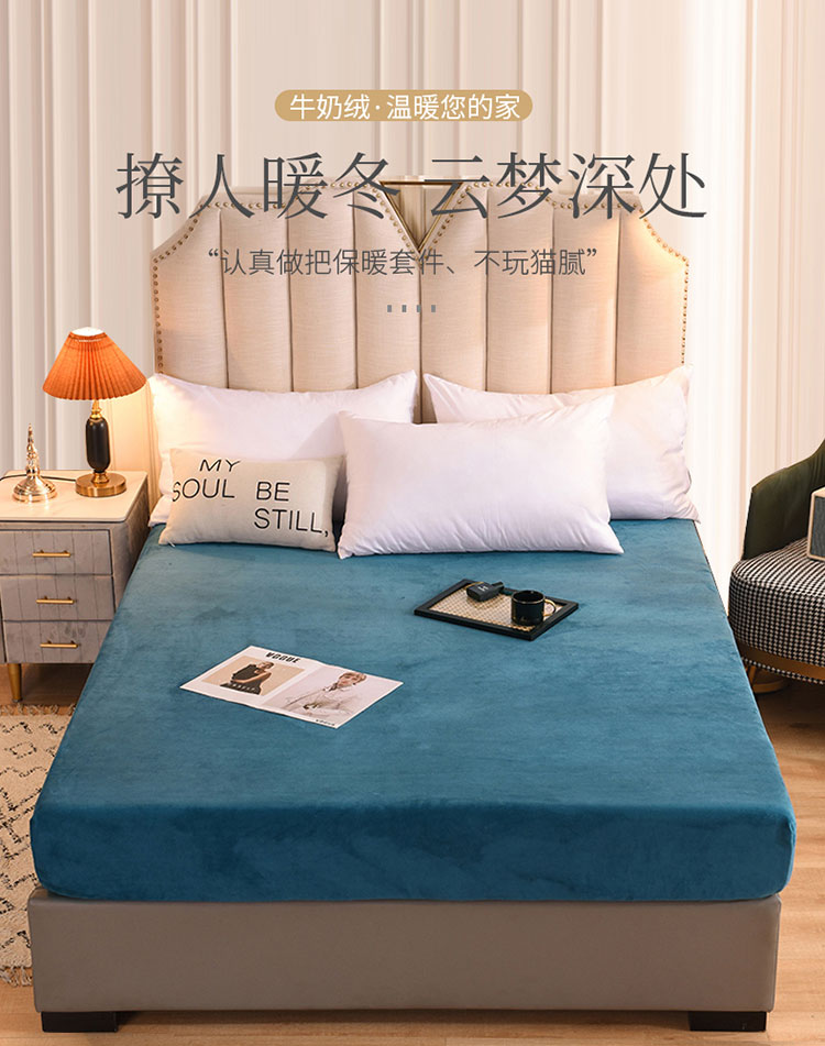 总甜之梦家纺 2025新款韩版泥点绒单床笠(任何尺寸异型缺角都可定做),贵族蓝,玛瑙绿,泥点绒淡粉,优雅灰