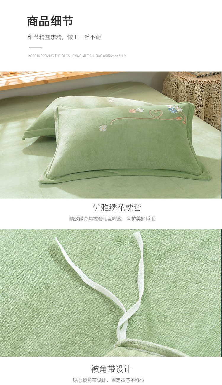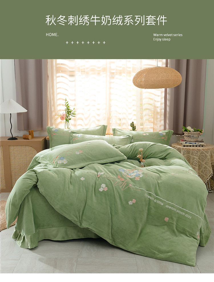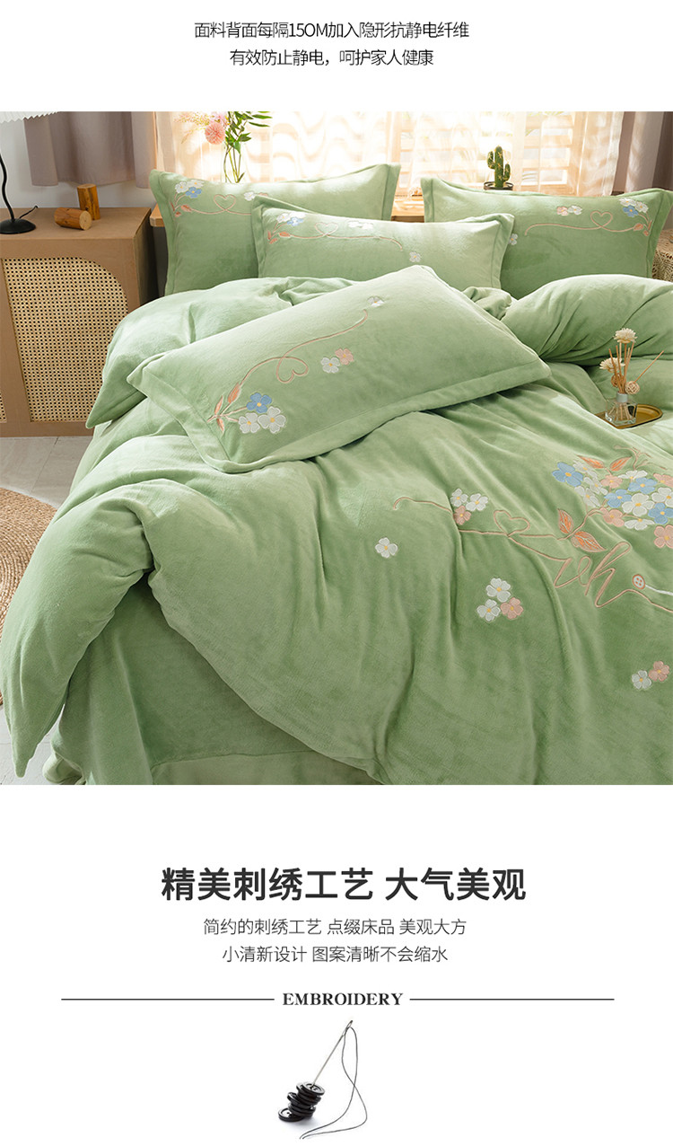 商品名称:佳梦家纺 2021新款牛奶绒刺绣四件套 浅绿