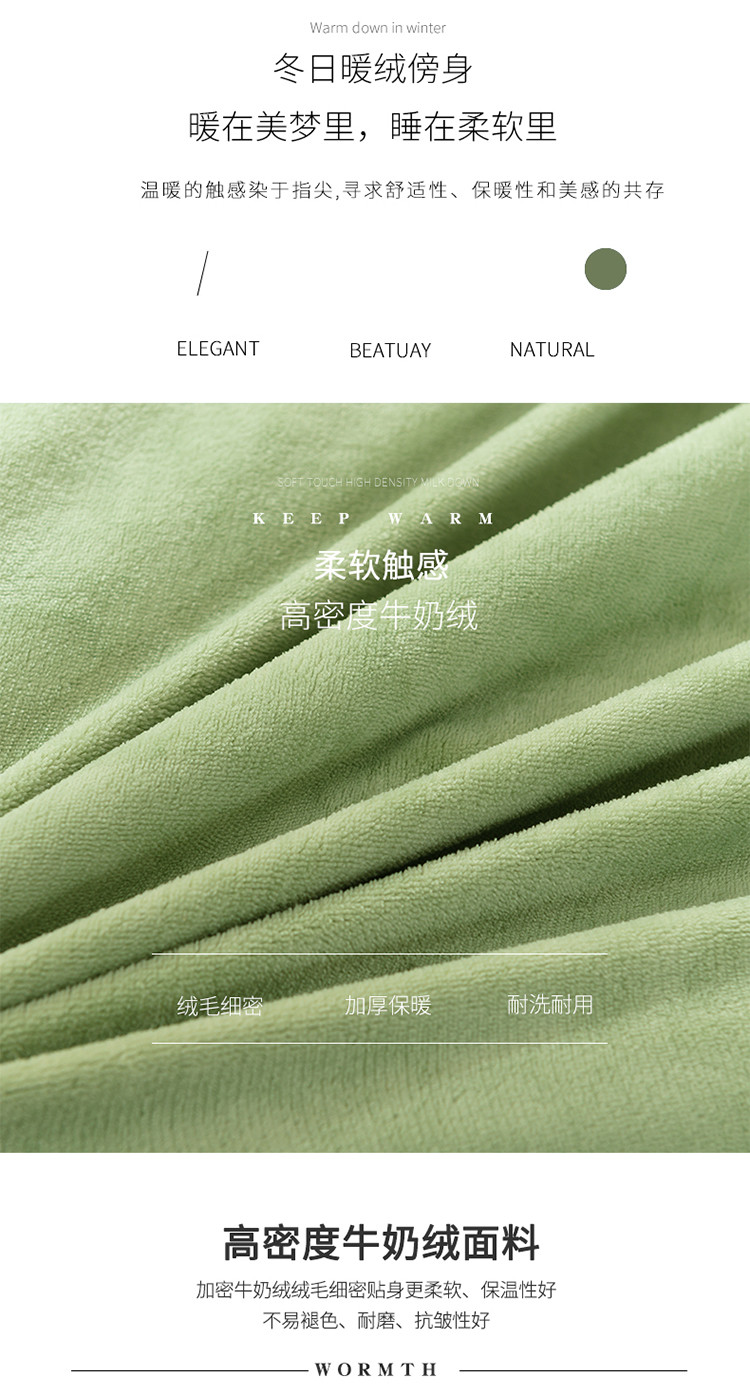 佳梦家纺轻奢提花绒四件套牛奶绒纯色消光压花宝宝绒被套 草绿,草绿