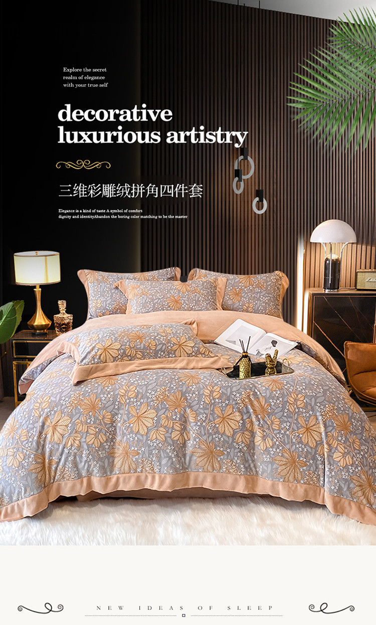 吾秀 2021秋冬新款三维彩雕绒四件套 梦田-灰