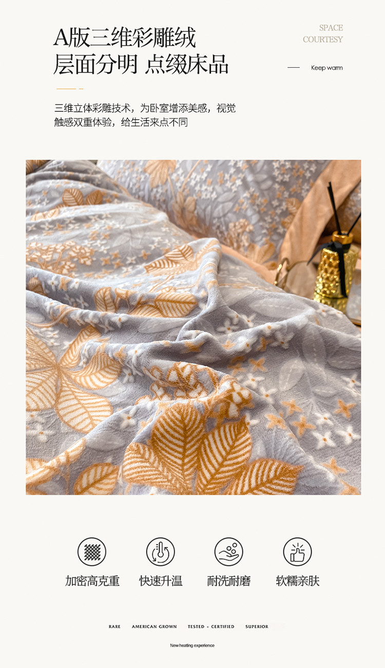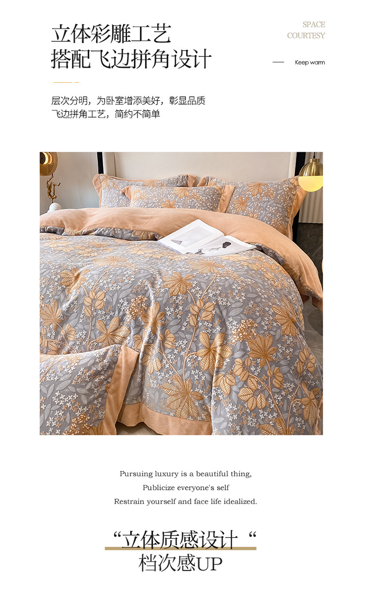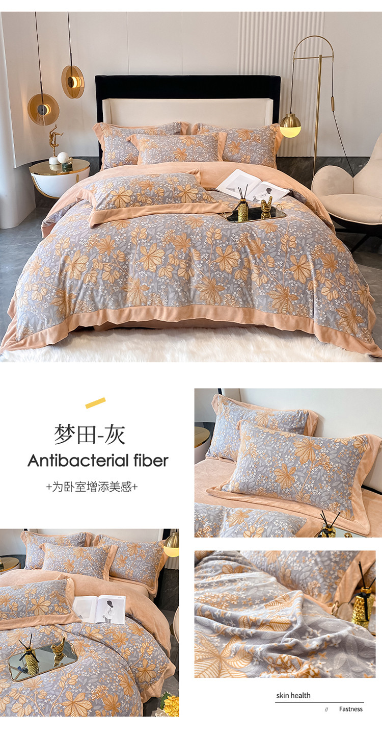 商品名称:吾秀 2021秋冬新款三维彩雕绒四件套 梦田-灰