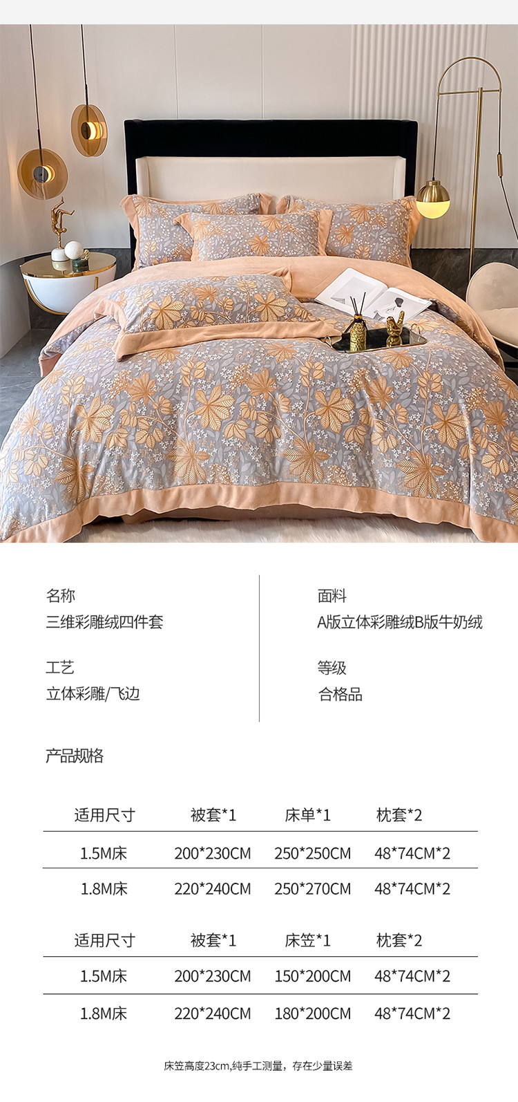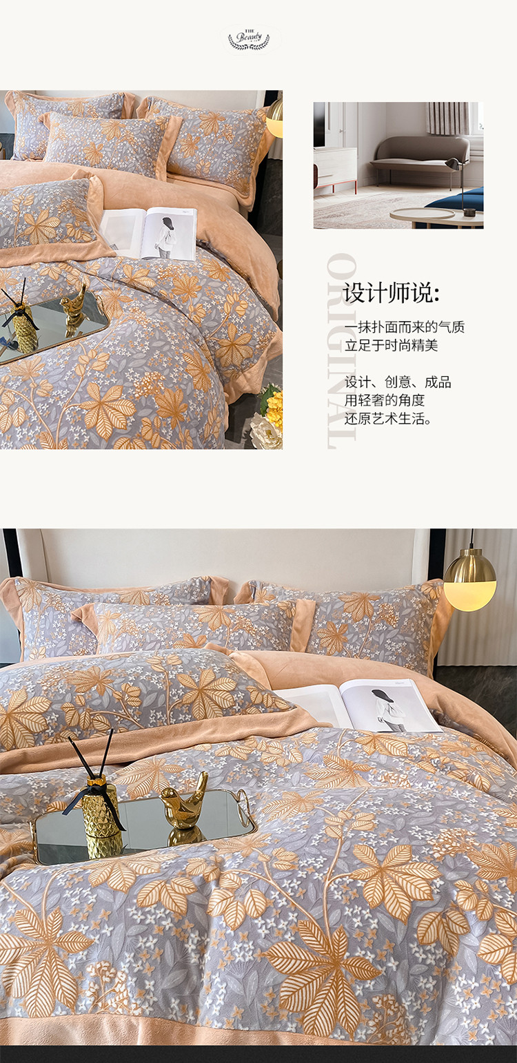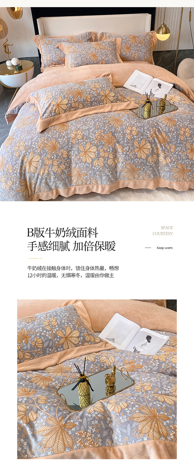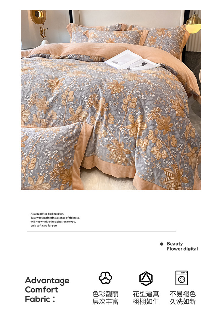 (总)吾秀家居 绒城 230克美拉德数码绒四件套 牛奶绒四件套 - 暖秋系列,花韵,暗香,冬日恋歌-咖,冬日恋歌-棕,冬日森林,花意浓,境玉森林,罗曼庄园,拿铁玫瑰,深紫罗兰,丝绒玫瑰,幽香花语