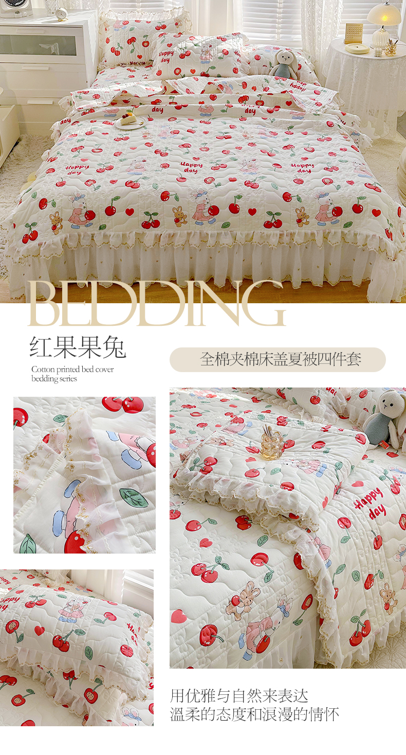 当前位置: 91家纺网 > 商品网购 > 床品套件 > 四件套 > 夏被四件套 > 宜凡家纺 全棉床盖夏被四件套 红果果兔