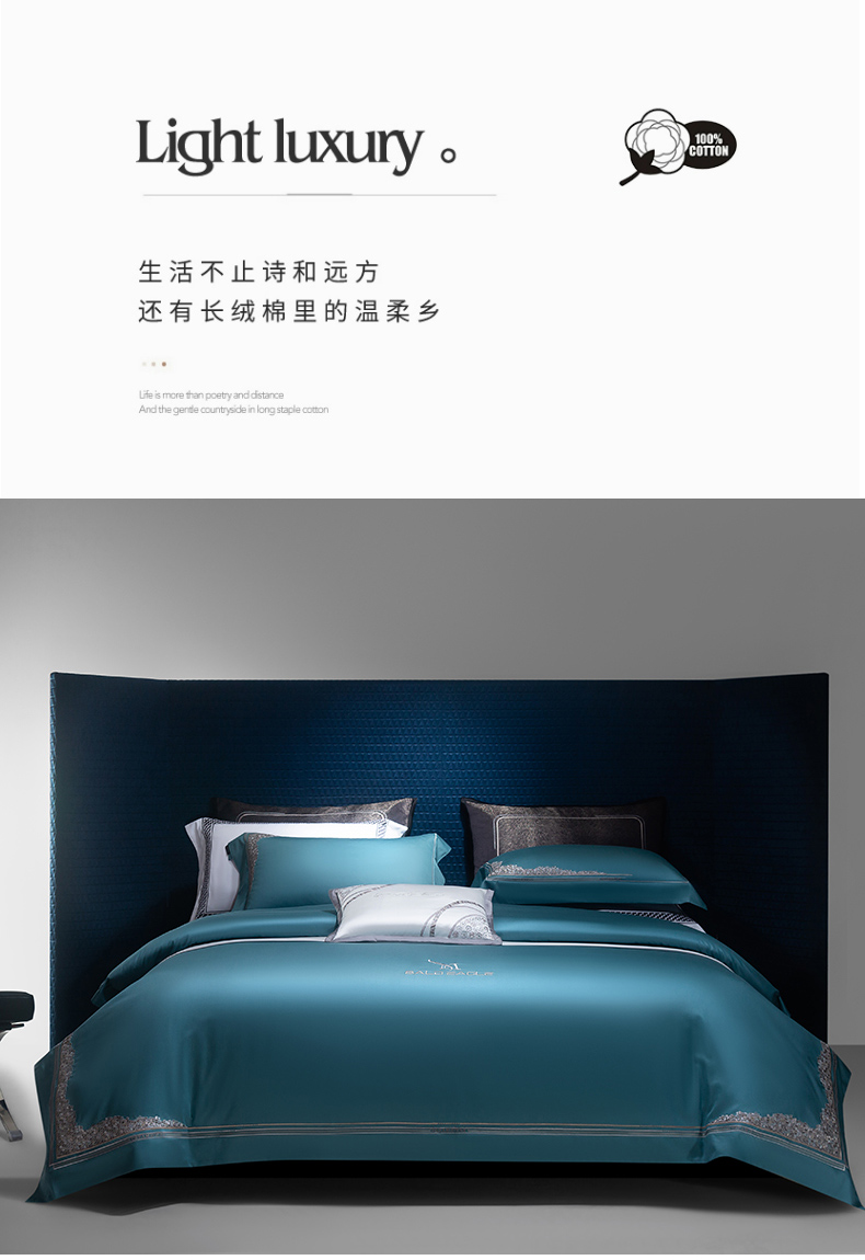 商品名称:诗黛尔 2长绒棉刺绣四件套-莫拉塔系列 北欧蓝