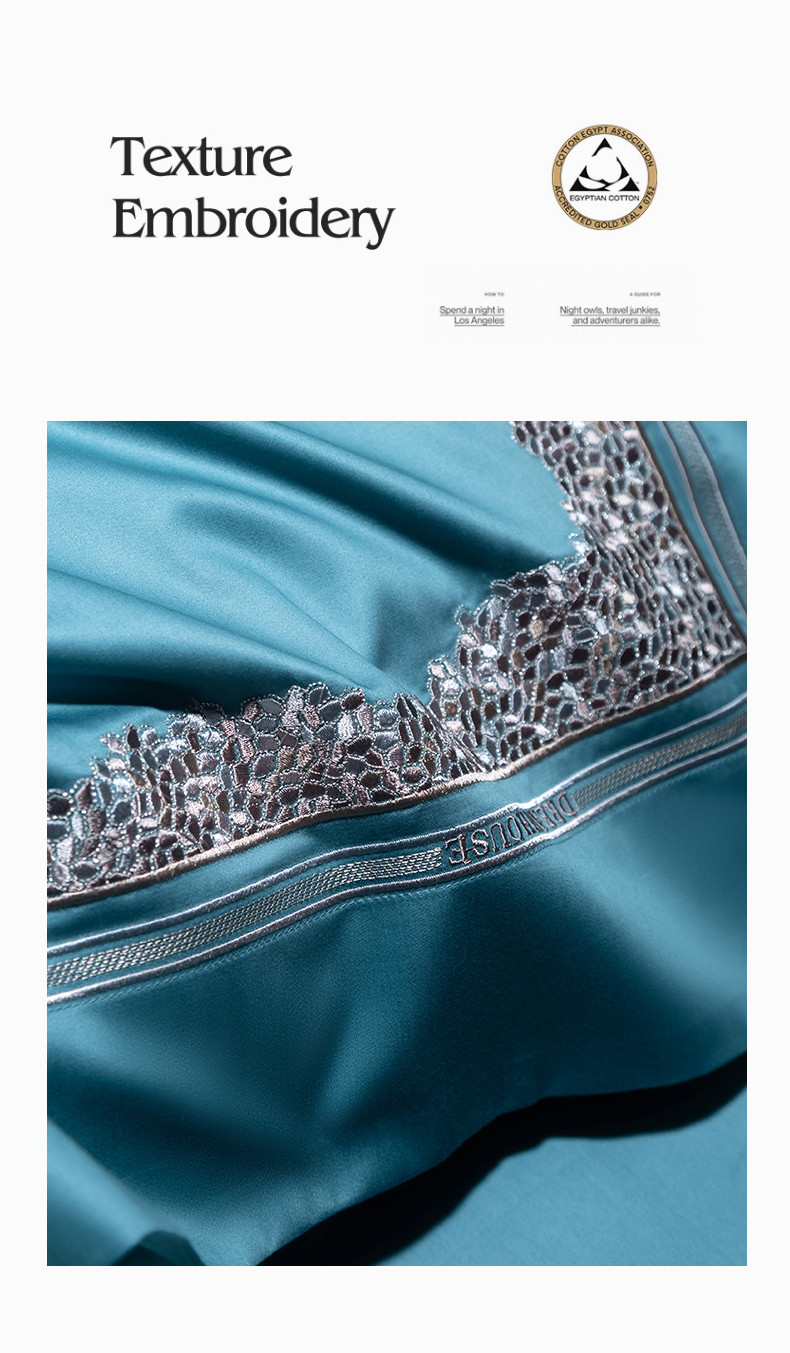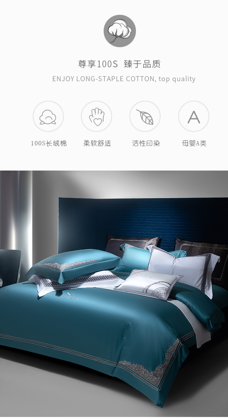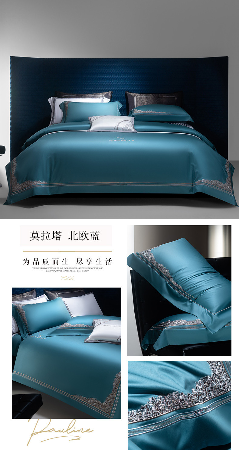 诗黛尔 2长绒棉刺绣四件套-莫拉塔系列 北欧蓝