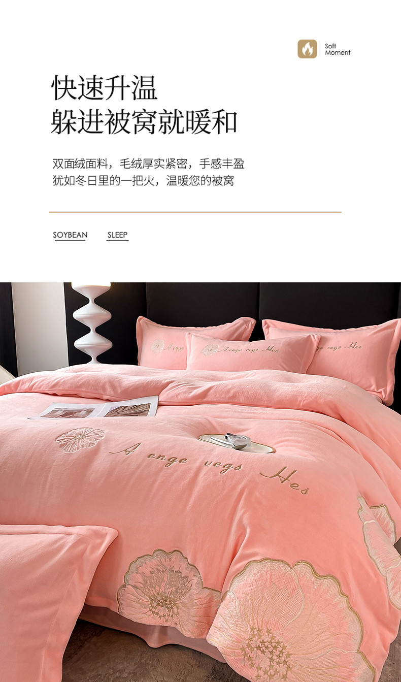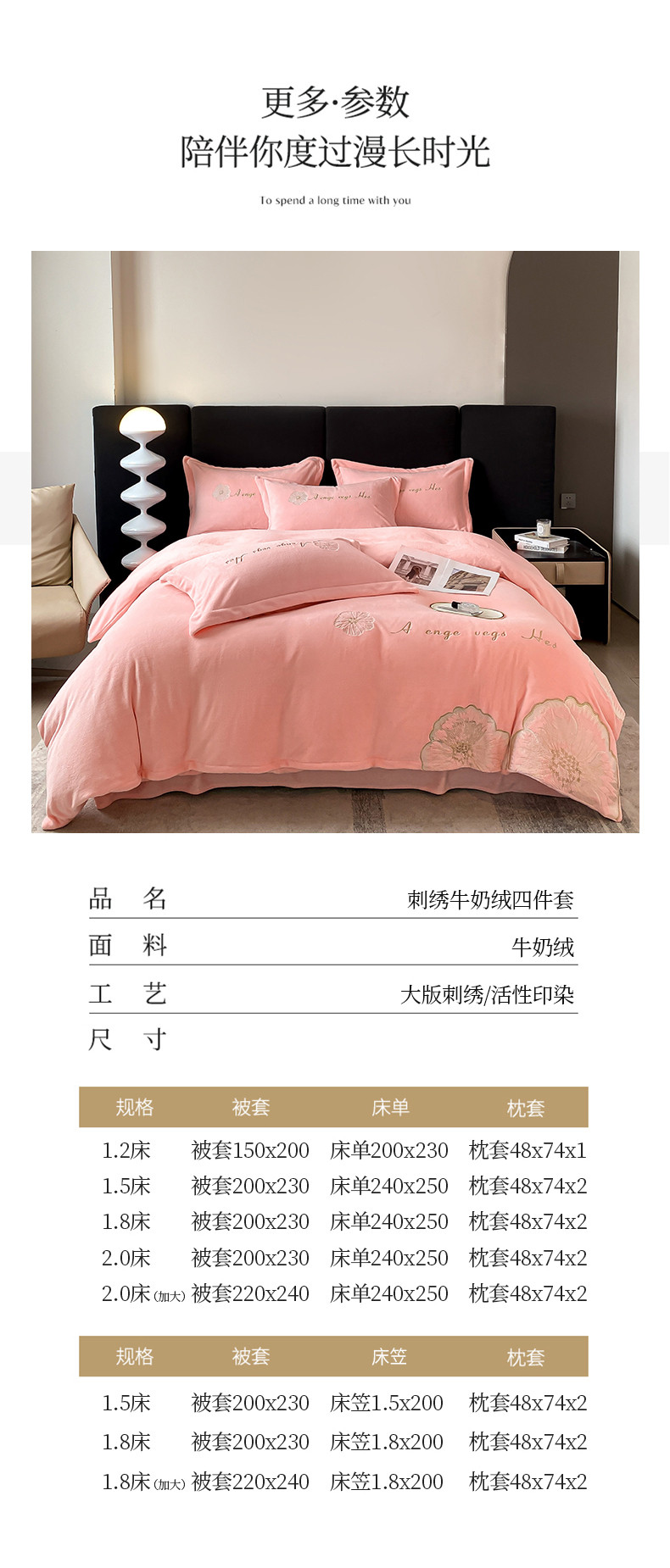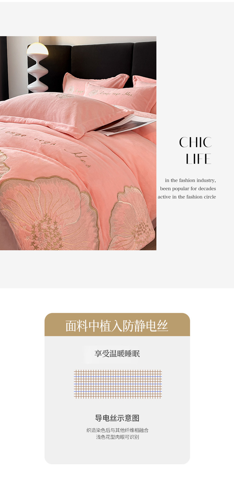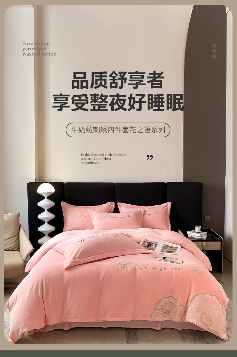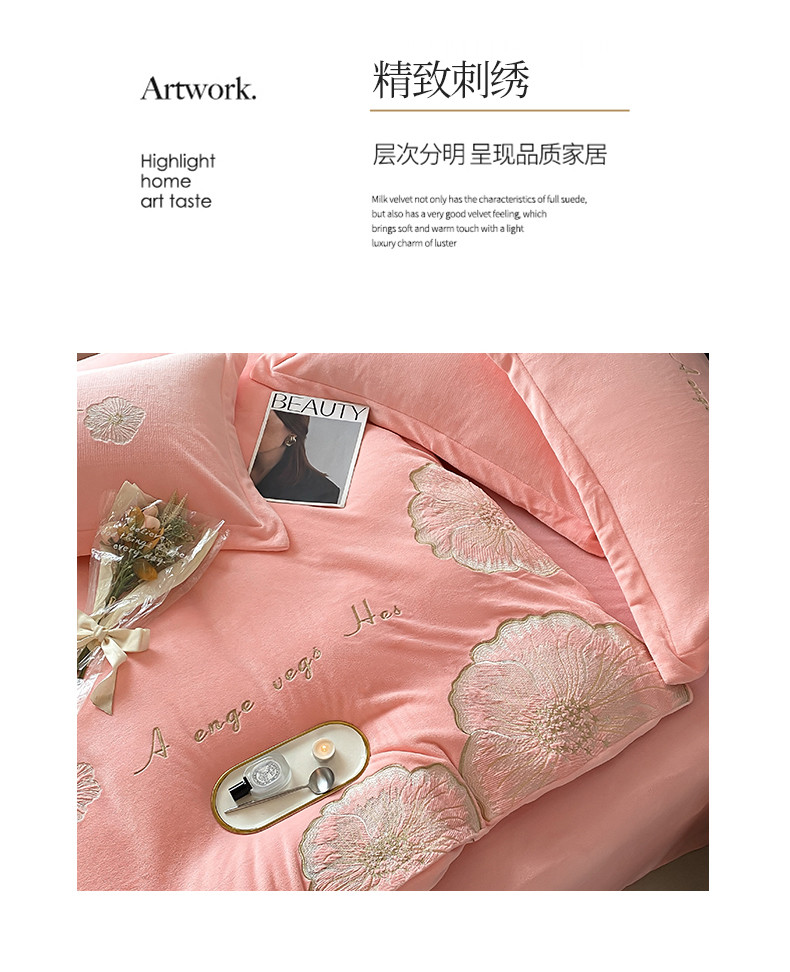 当前位置: 91家纺网 > 商品网购 > 床品套件 > 四件套 > 牛奶绒四件套 > 你好美丽 2025新款200克牛奶绒刺绣花卉3系列四件套 花之语粉