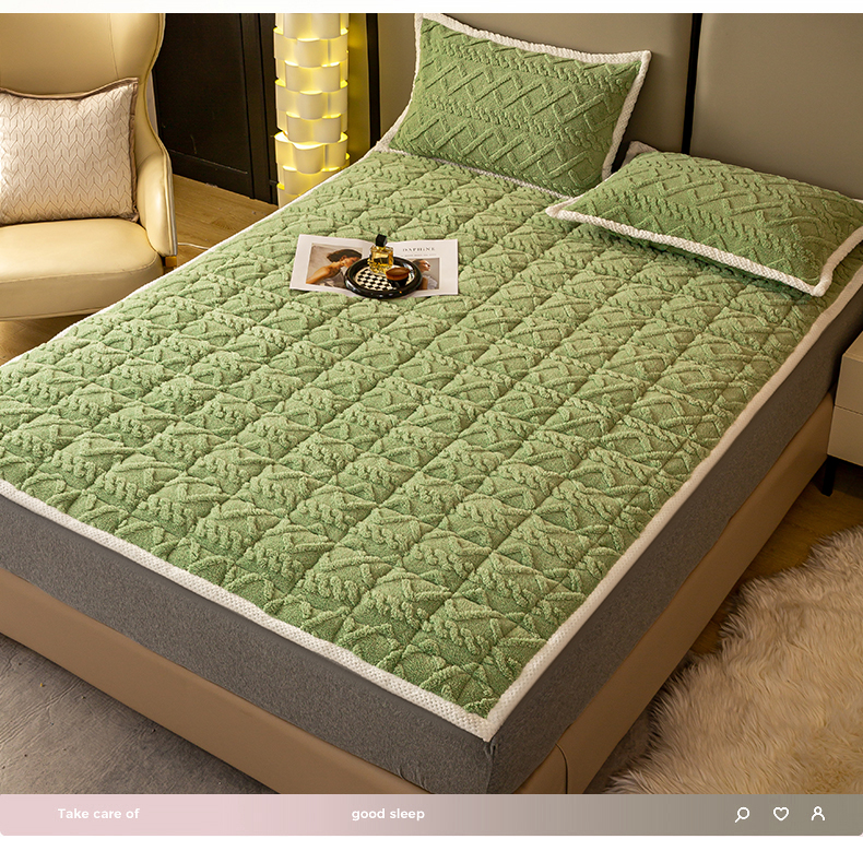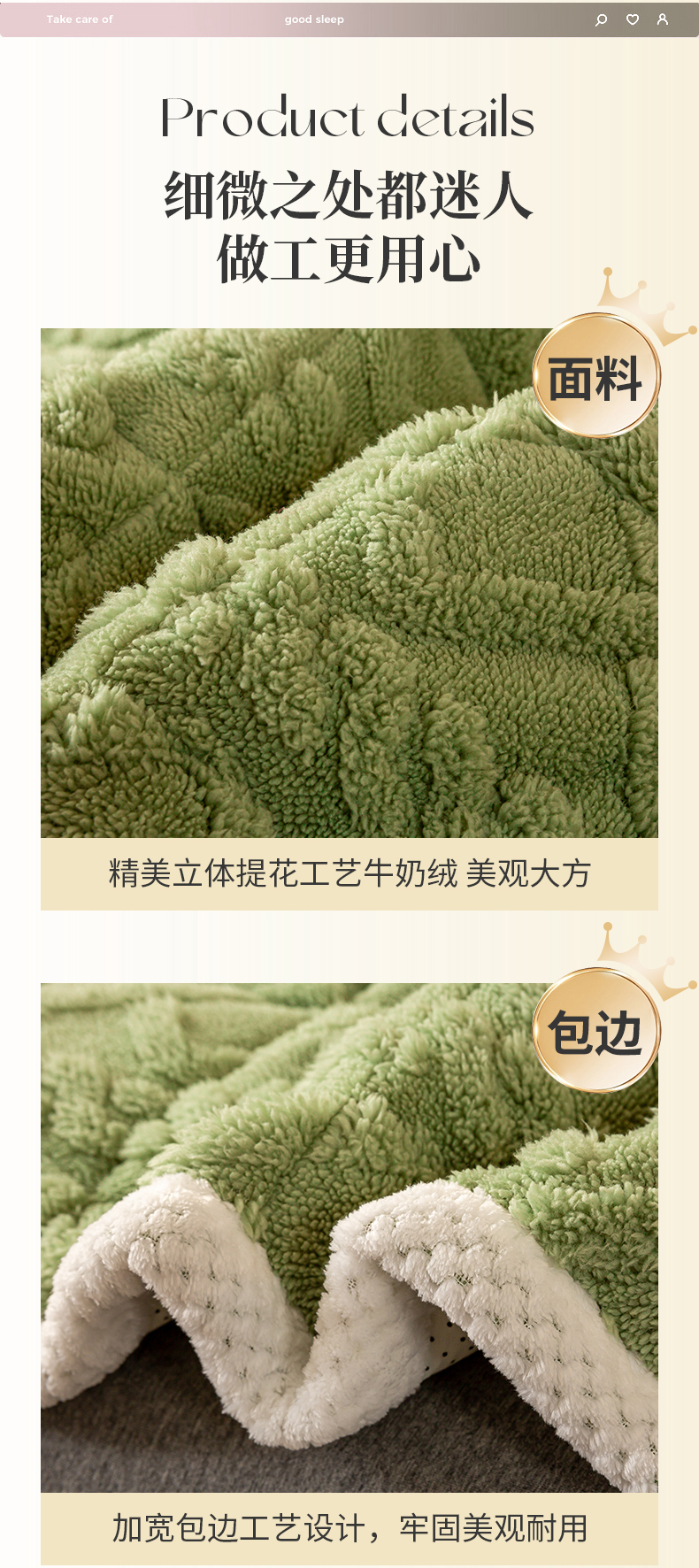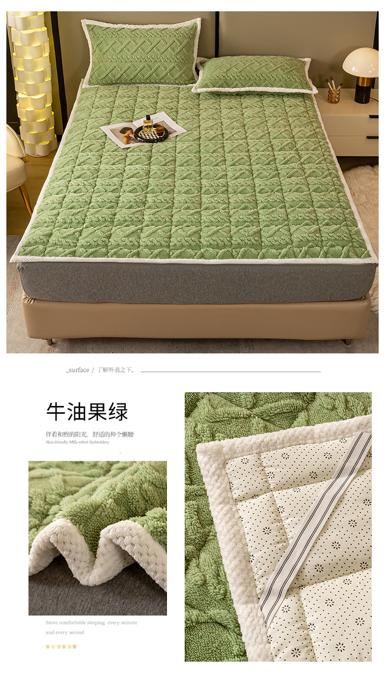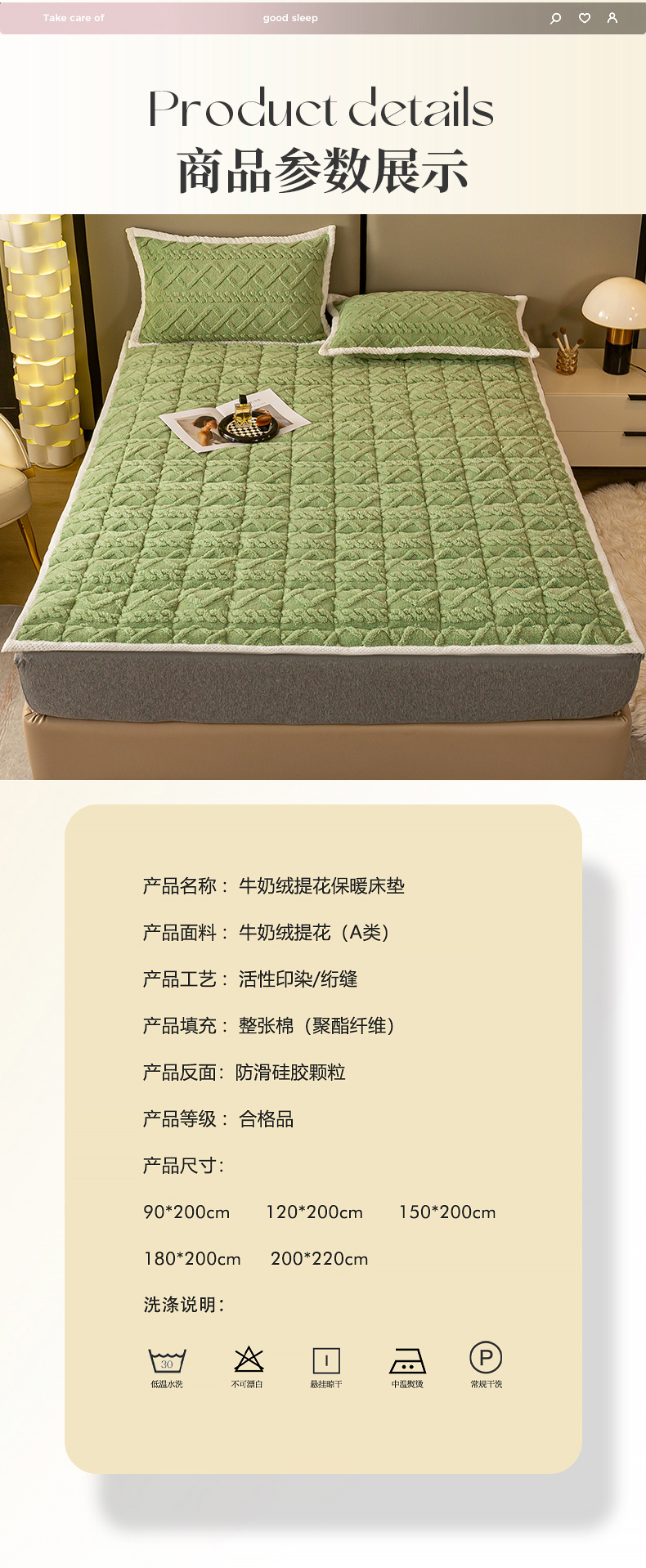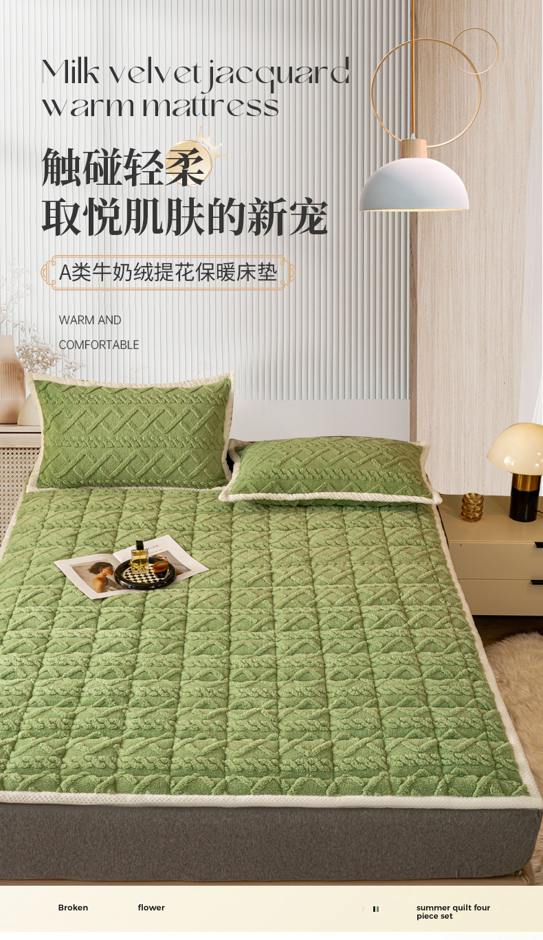 商品名称:正邦家纺 2024新款牛奶绒提花保暖塔芙蓉床垫 牛油果绿