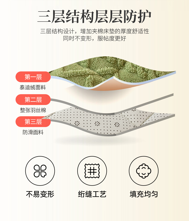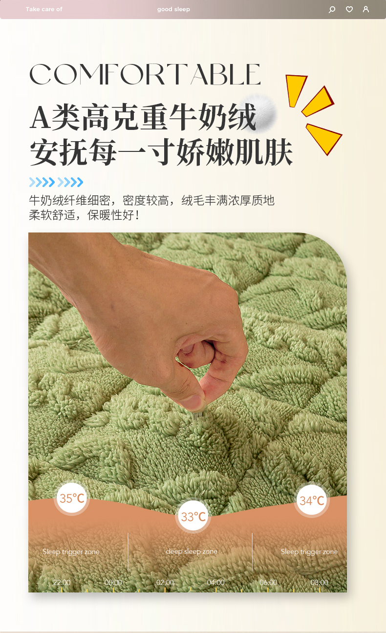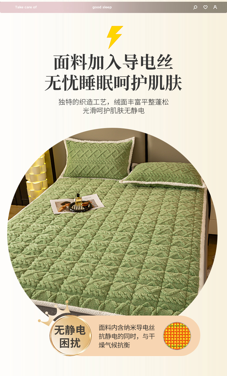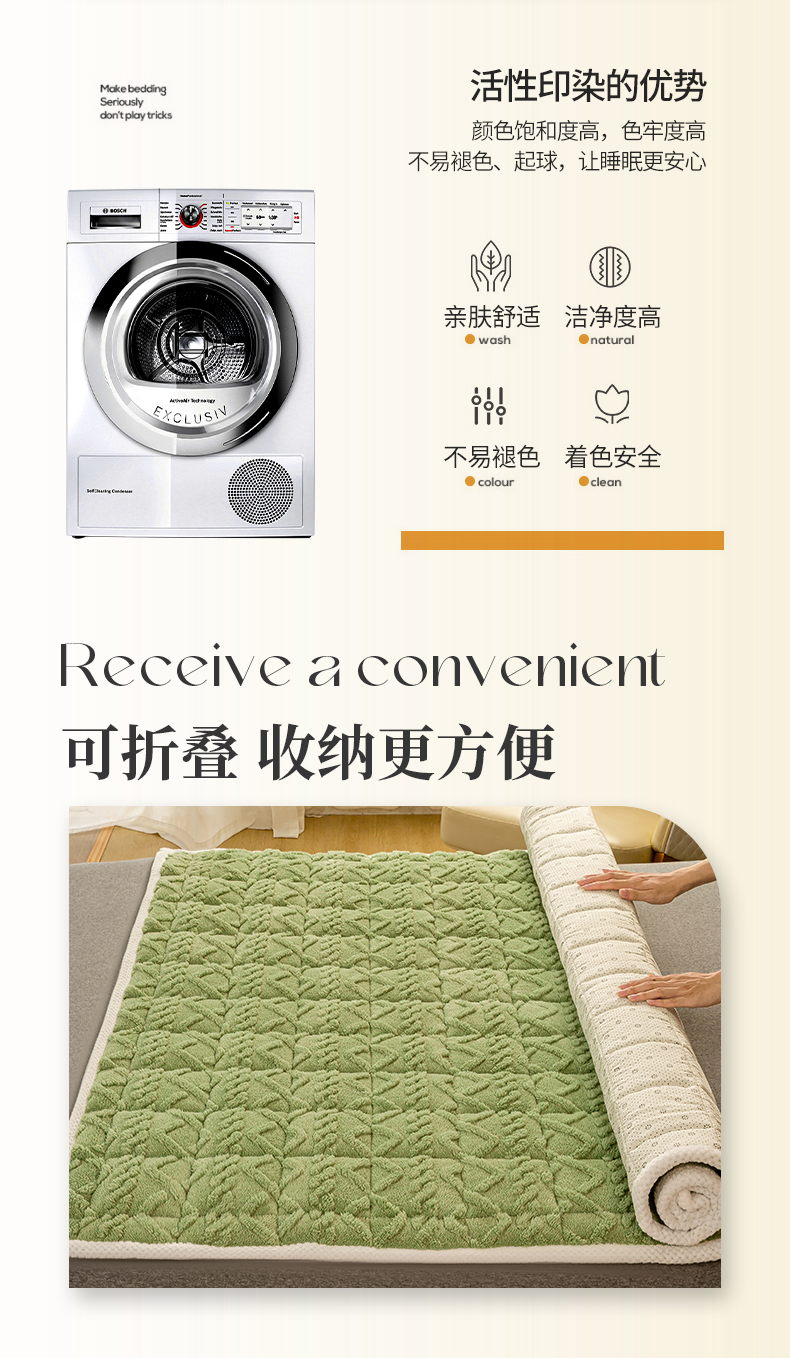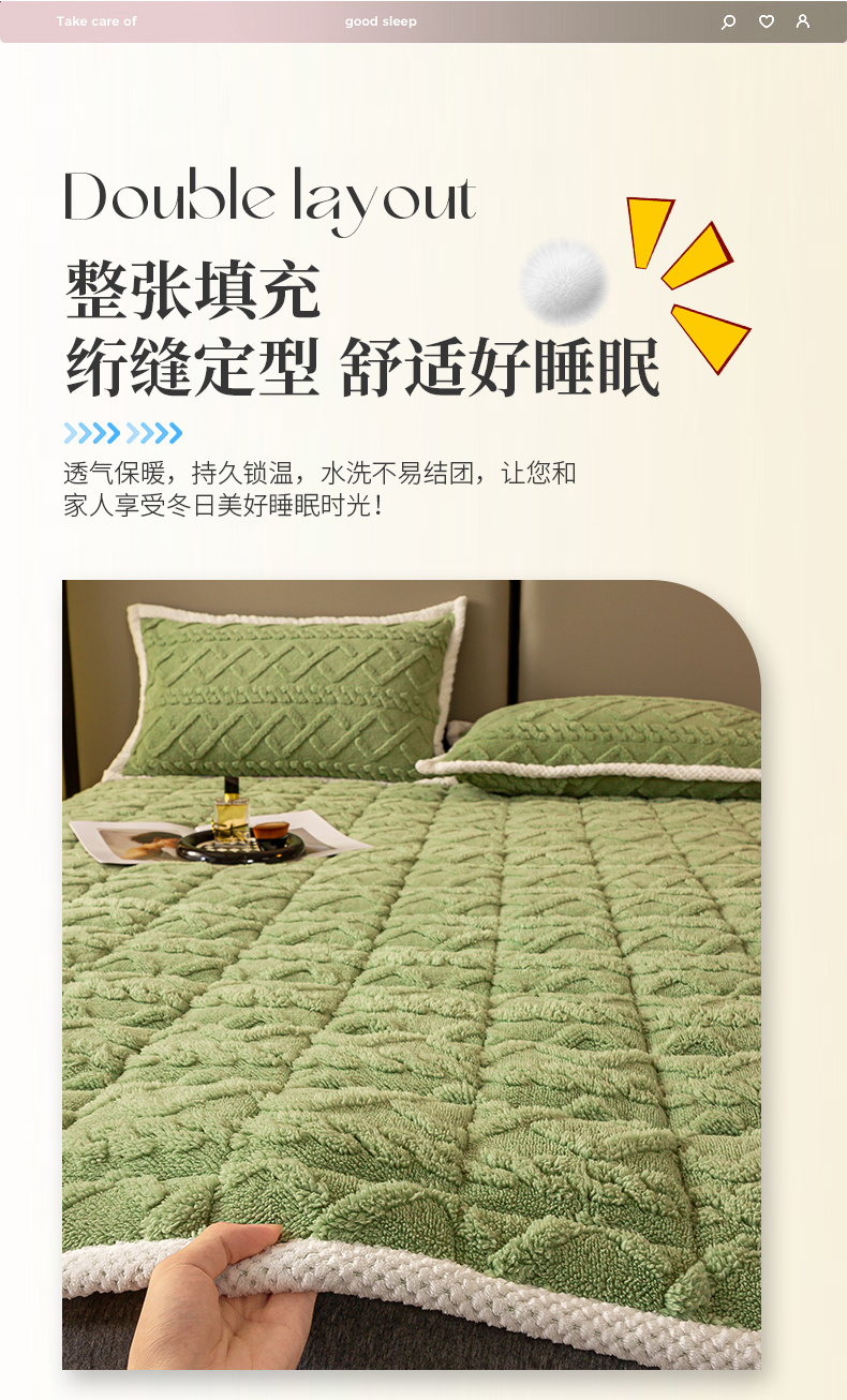 商品名称:正邦家纺 2024新款牛奶绒提花保暖塔芙蓉床垫 牛油果绿