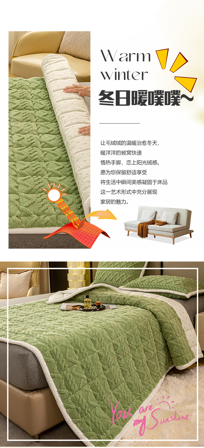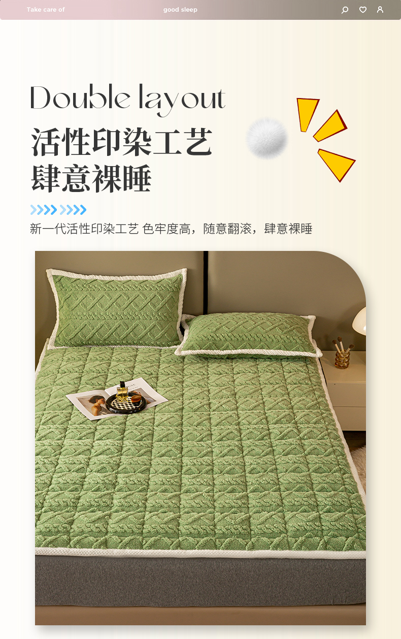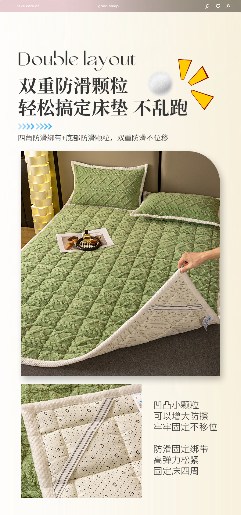正邦家纺 2024新款牛奶绒提花保暖塔芙蓉床垫 牛油果绿