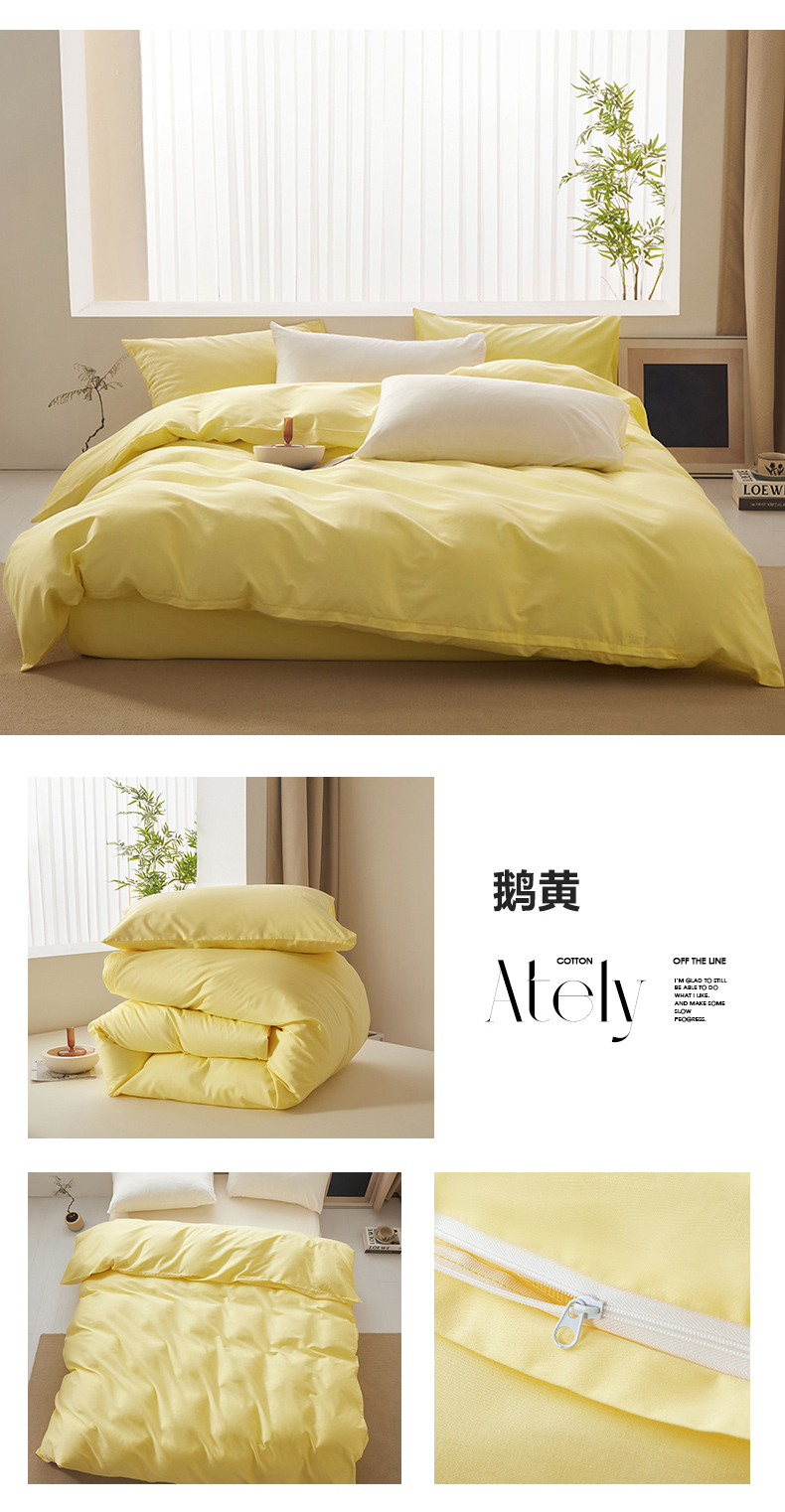 商品名称:寝柔家纺 2024新款40S全棉斜纹13372纯棉纯色被套单件 鹅黄