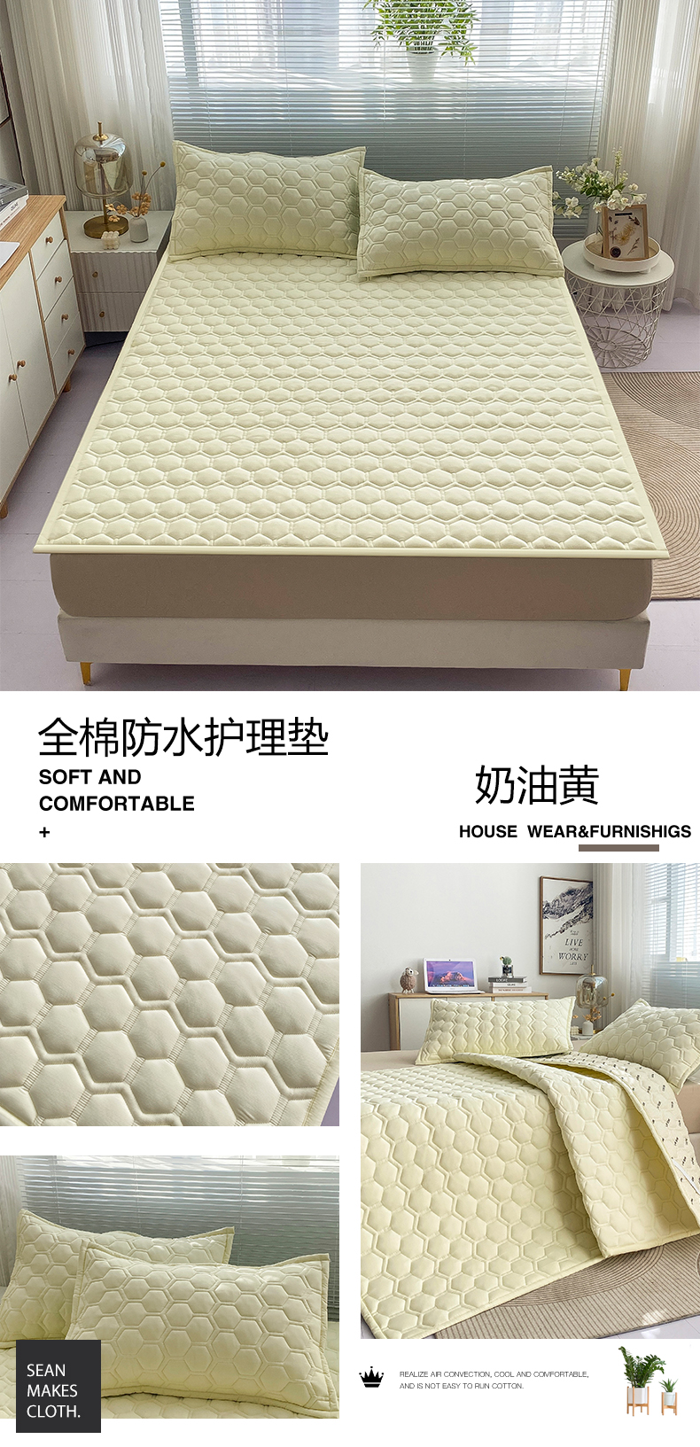 商品名称:恋绒家纺 2025新款A类纯棉(隔尿 防水)抗菌软床垫 奶油黄