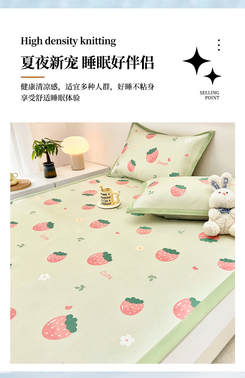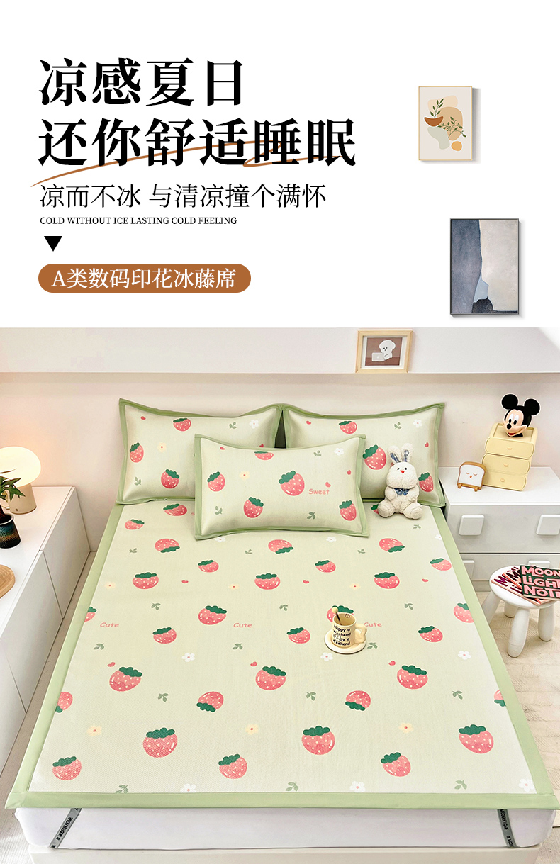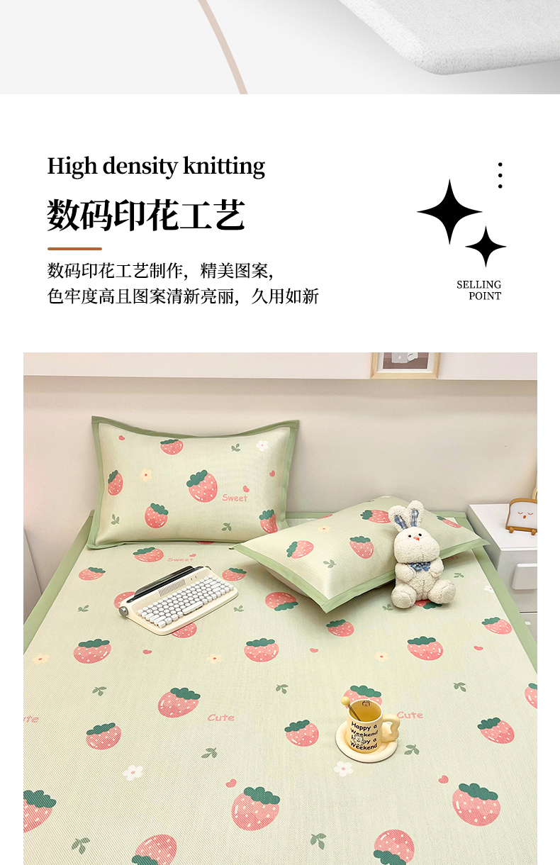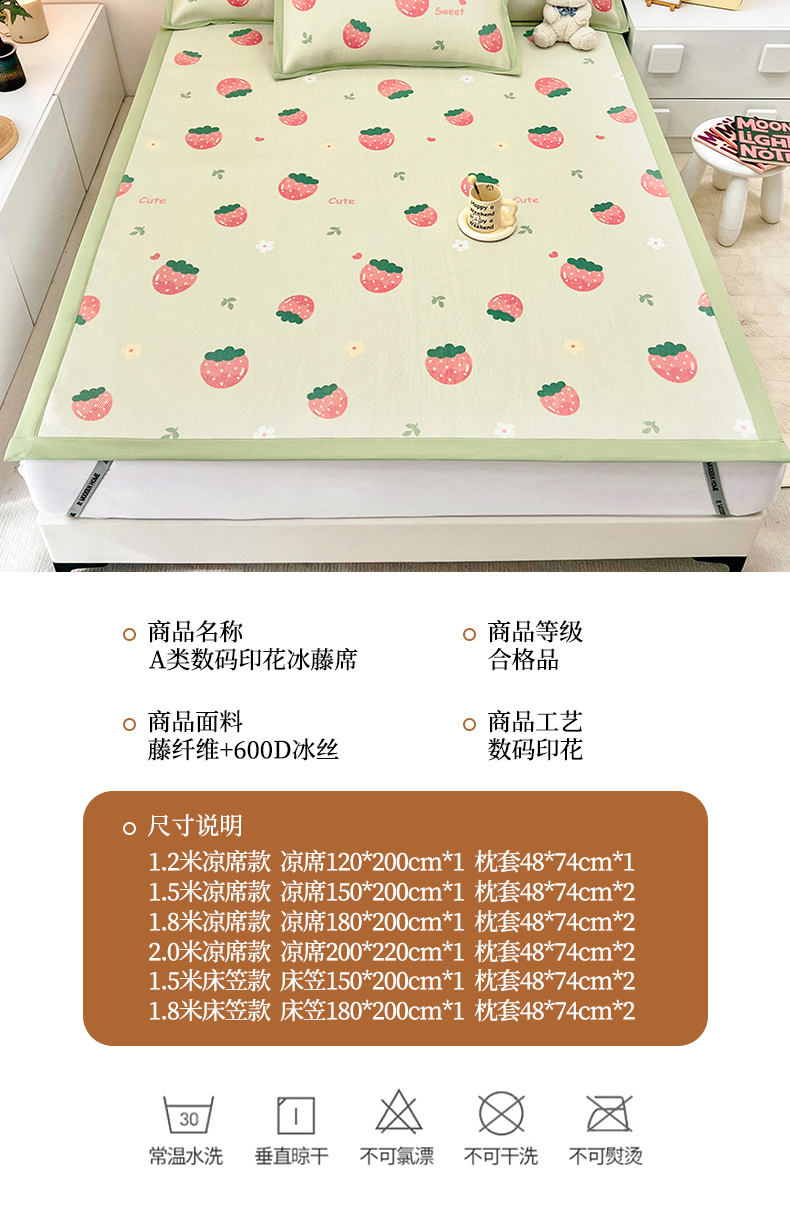 当前位置: 91家纺网 > 商品网购 > 床上用品 > 凉席 > 藤席 > 全季家居 2024新款5A抗菌小清新数码印花冰藤席 草莓(床席款)