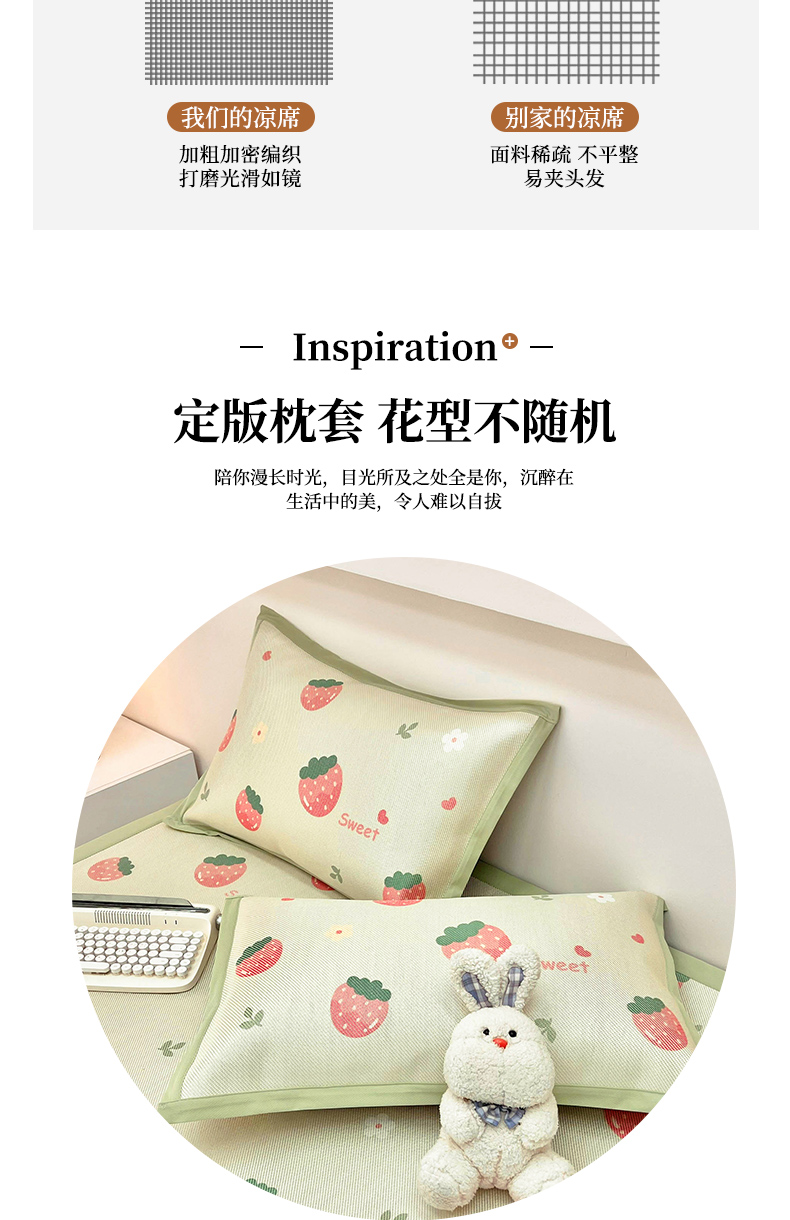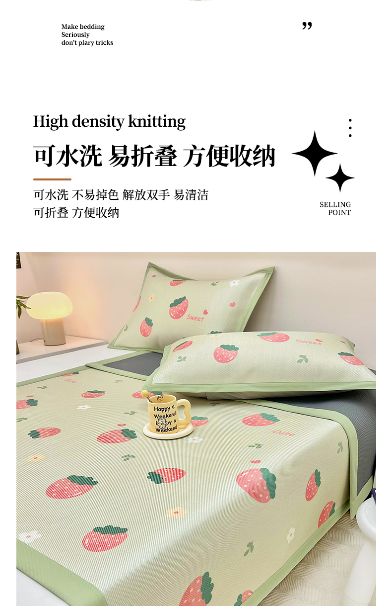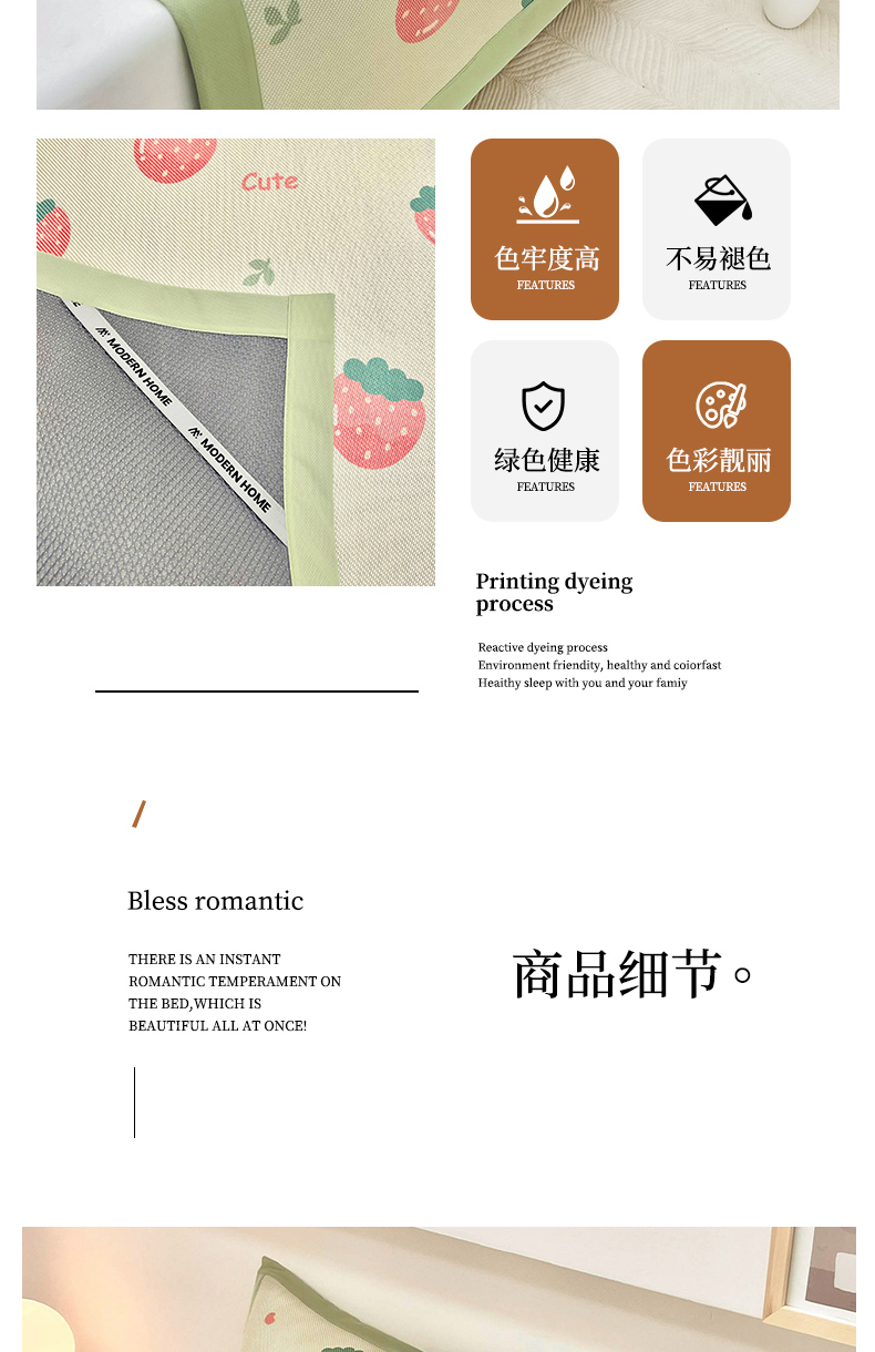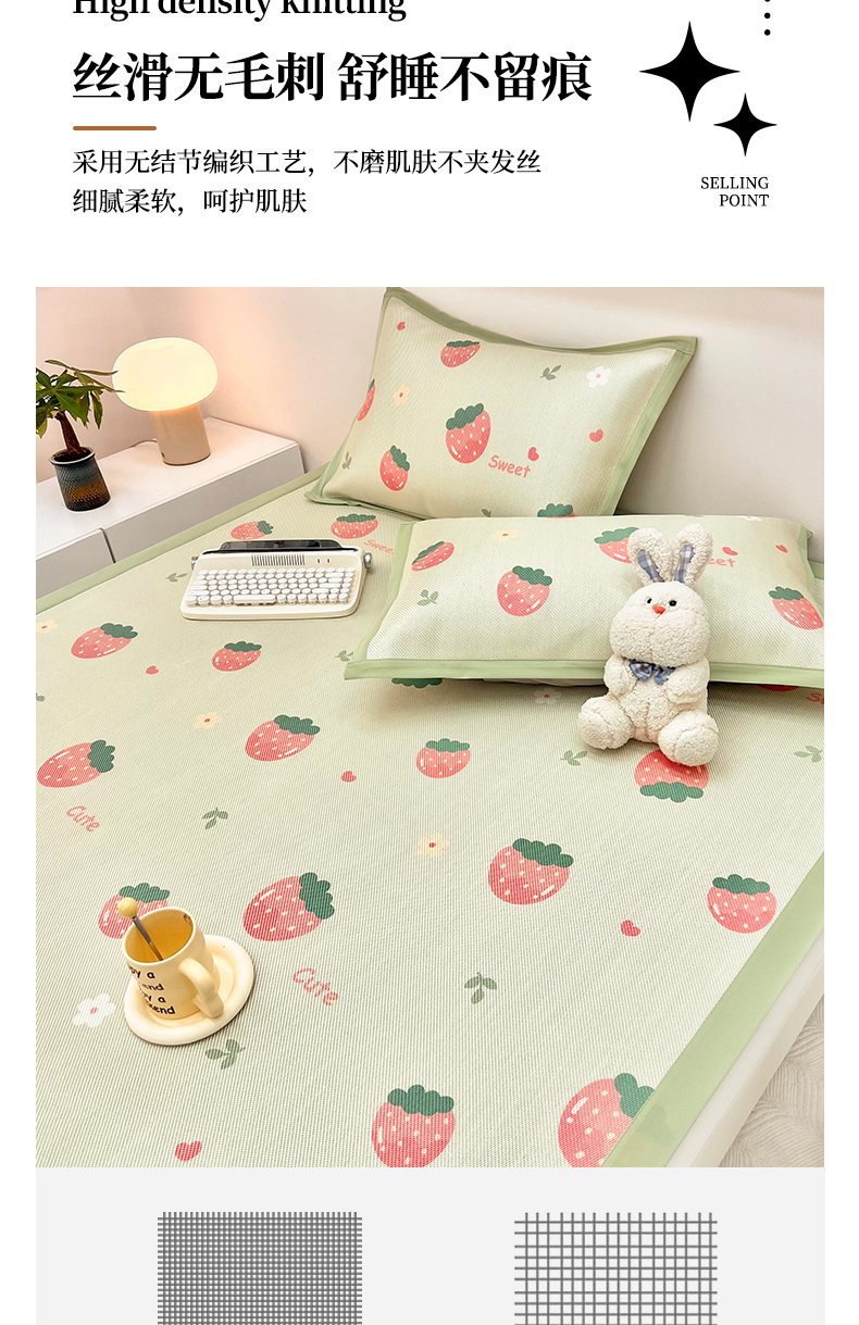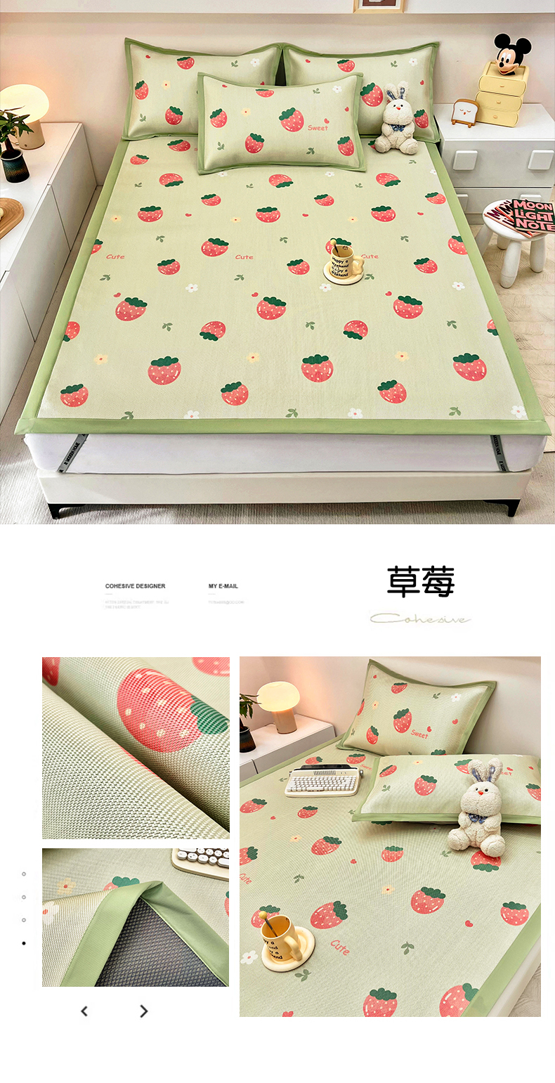 当前位置: 91家纺网 > 商品网购 > 床上用品 > 凉席 > 藤席 > 全季家居 2024新款5A抗菌小清新数码印花冰藤席 草莓(床席款)