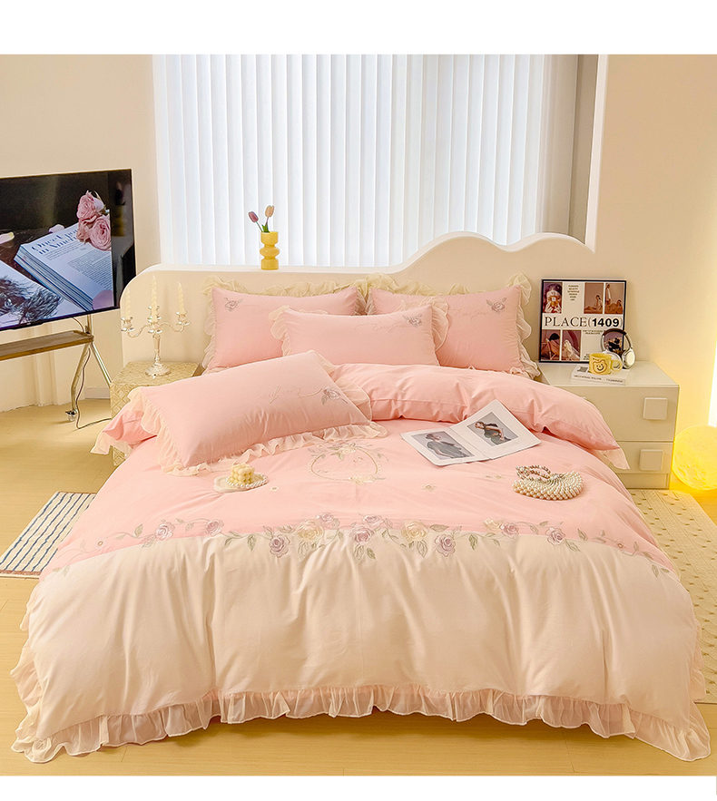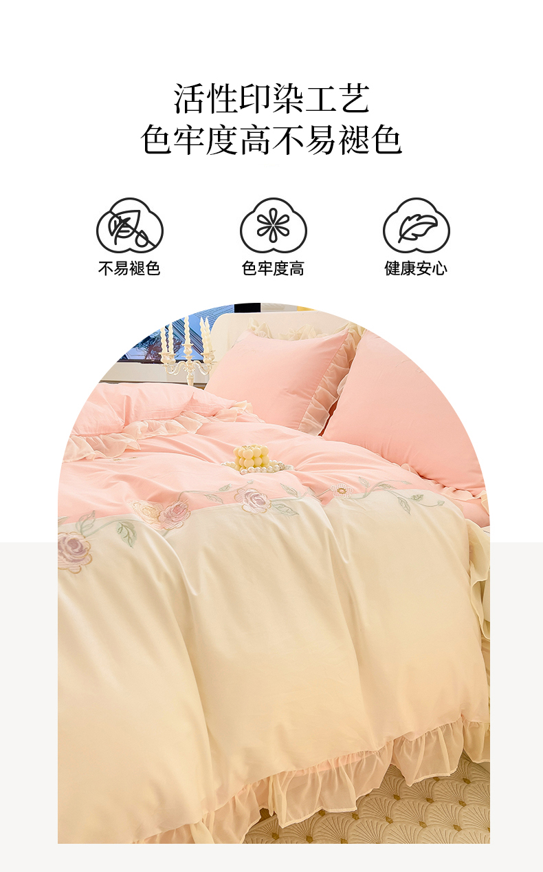 迪欧芙 2024新款全棉刺绣四件套-满庭院 满庭院-粉