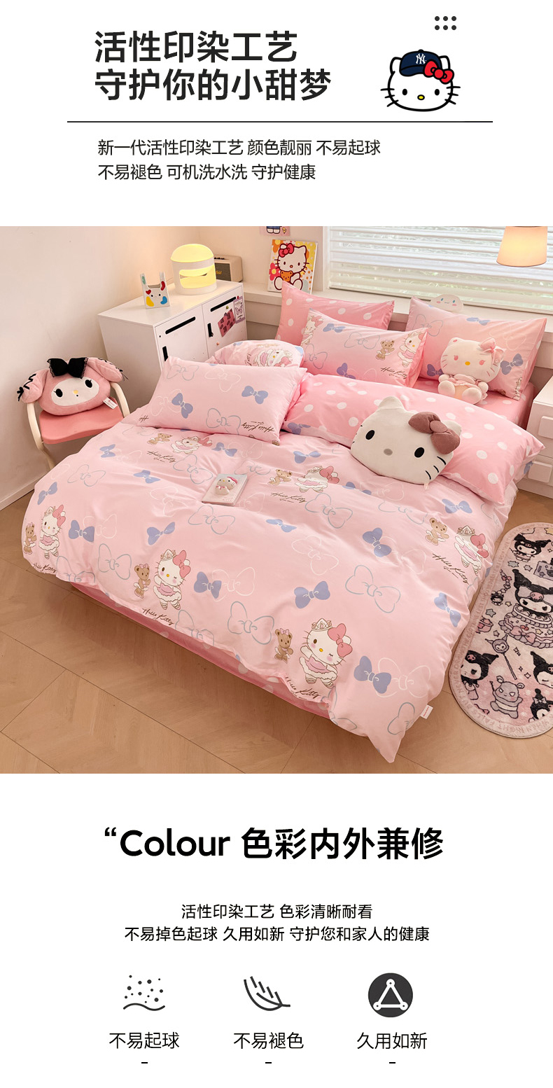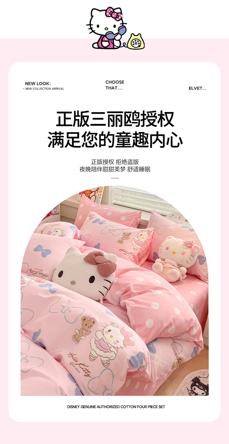 当前位置: 91家纺网 > 商品网购 > 床品套件 > 四件套 > 全棉普通四件套 > 暮思家居 2024新款正版授权三丽鸥全棉四件套系列第六批 蝴蝶结凯蒂