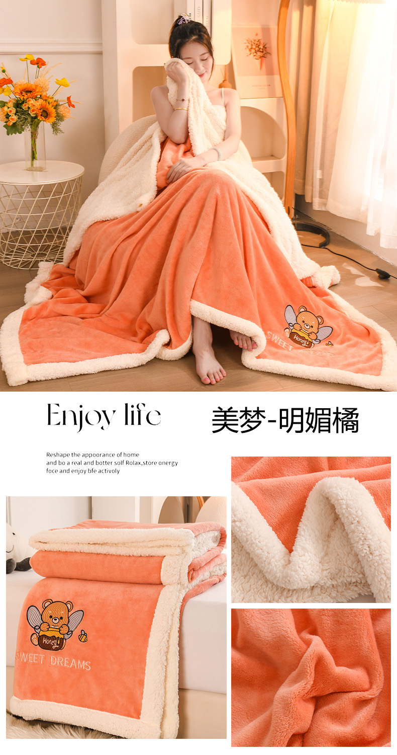 当前位置: 91家纺网 > 商品网购 > 毛毯休闲毯绒毯 > 毛毯 > 2025新款毛毯AB版牛奶绒+羊羔绒毯子复合多功能午睡毯 美梦-明媚橘