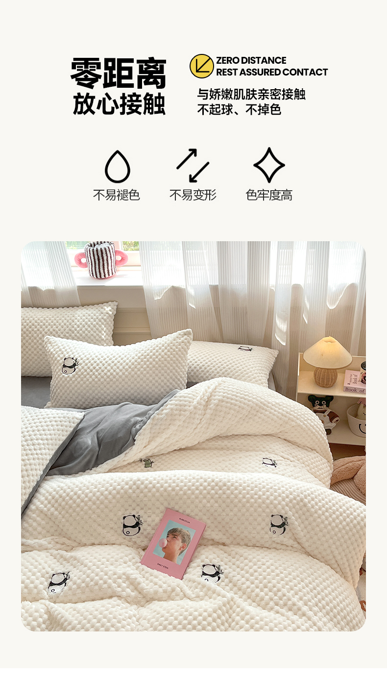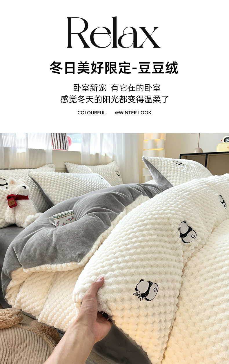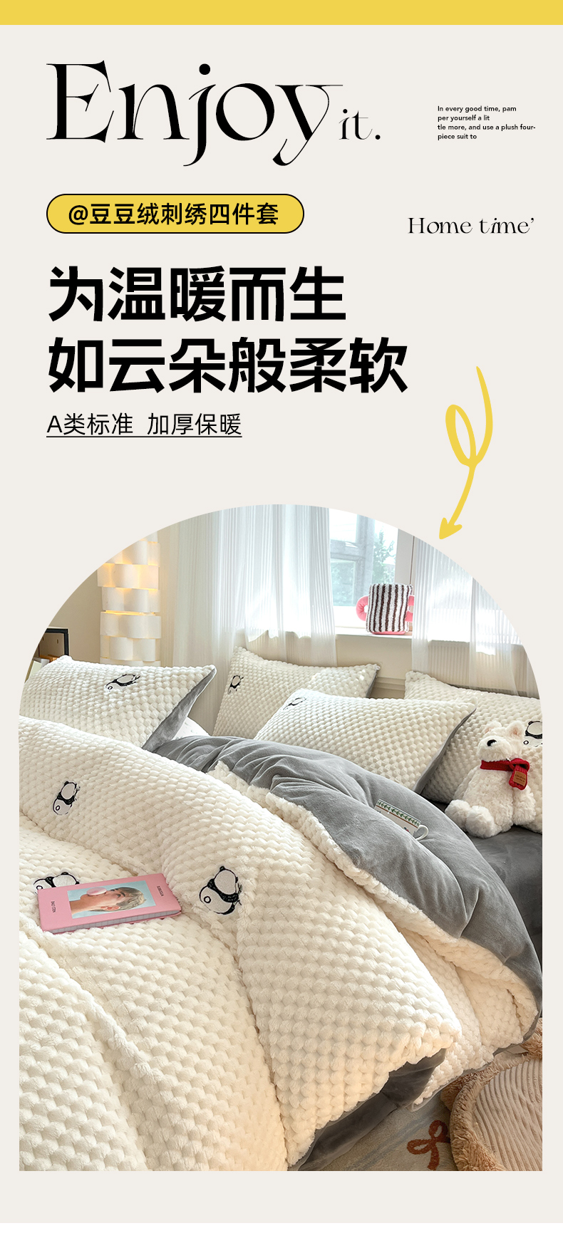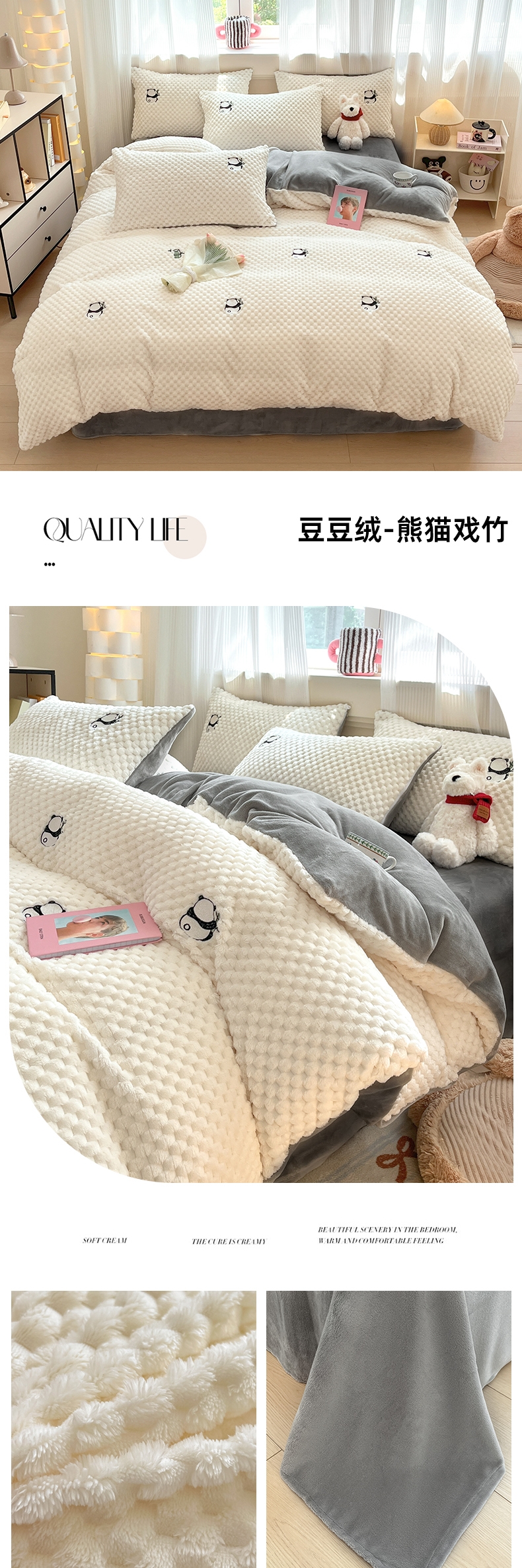 铭宣家居 2024新款A类豆豆绒刺绣款四件套 豆豆绒-熊猫戏竹