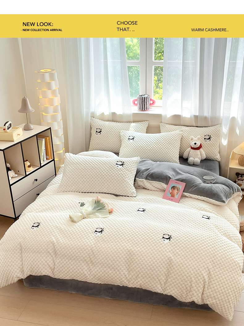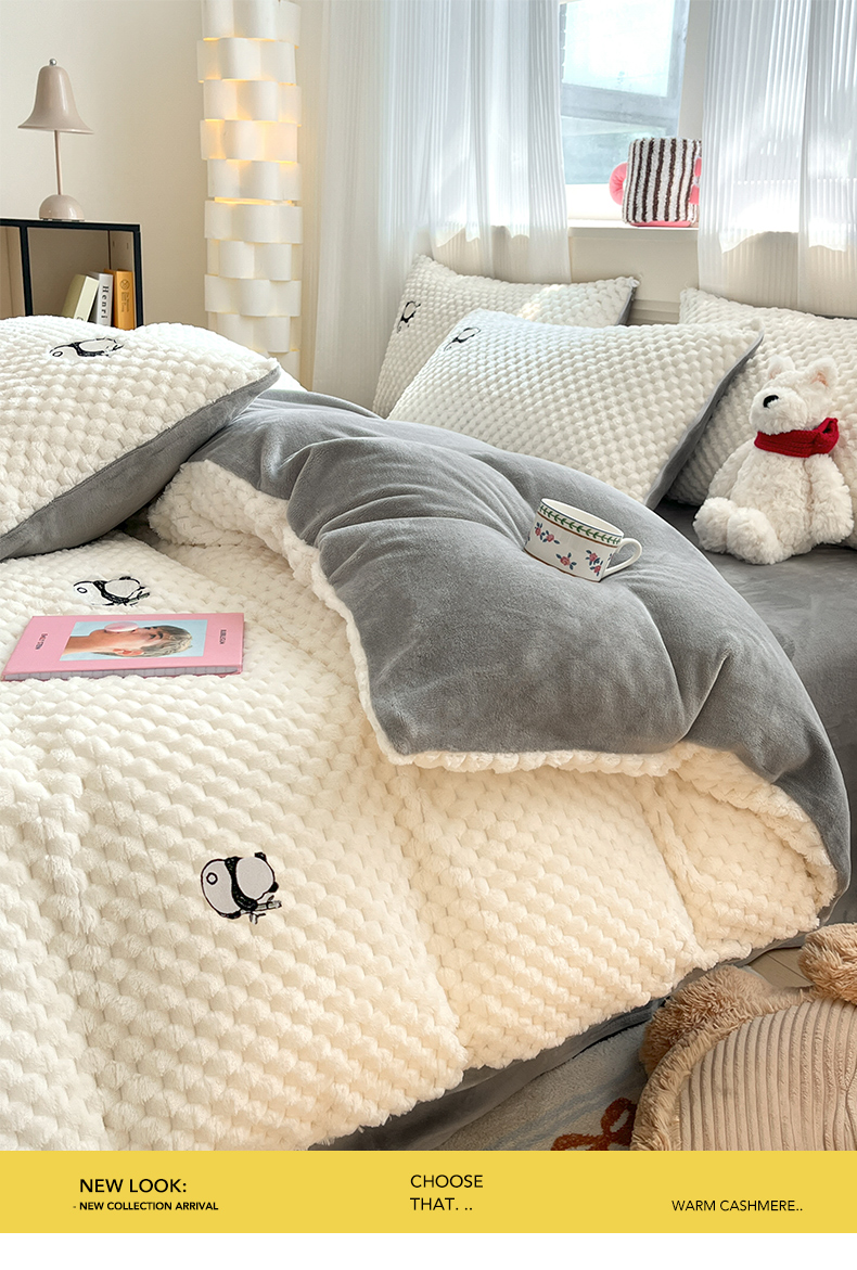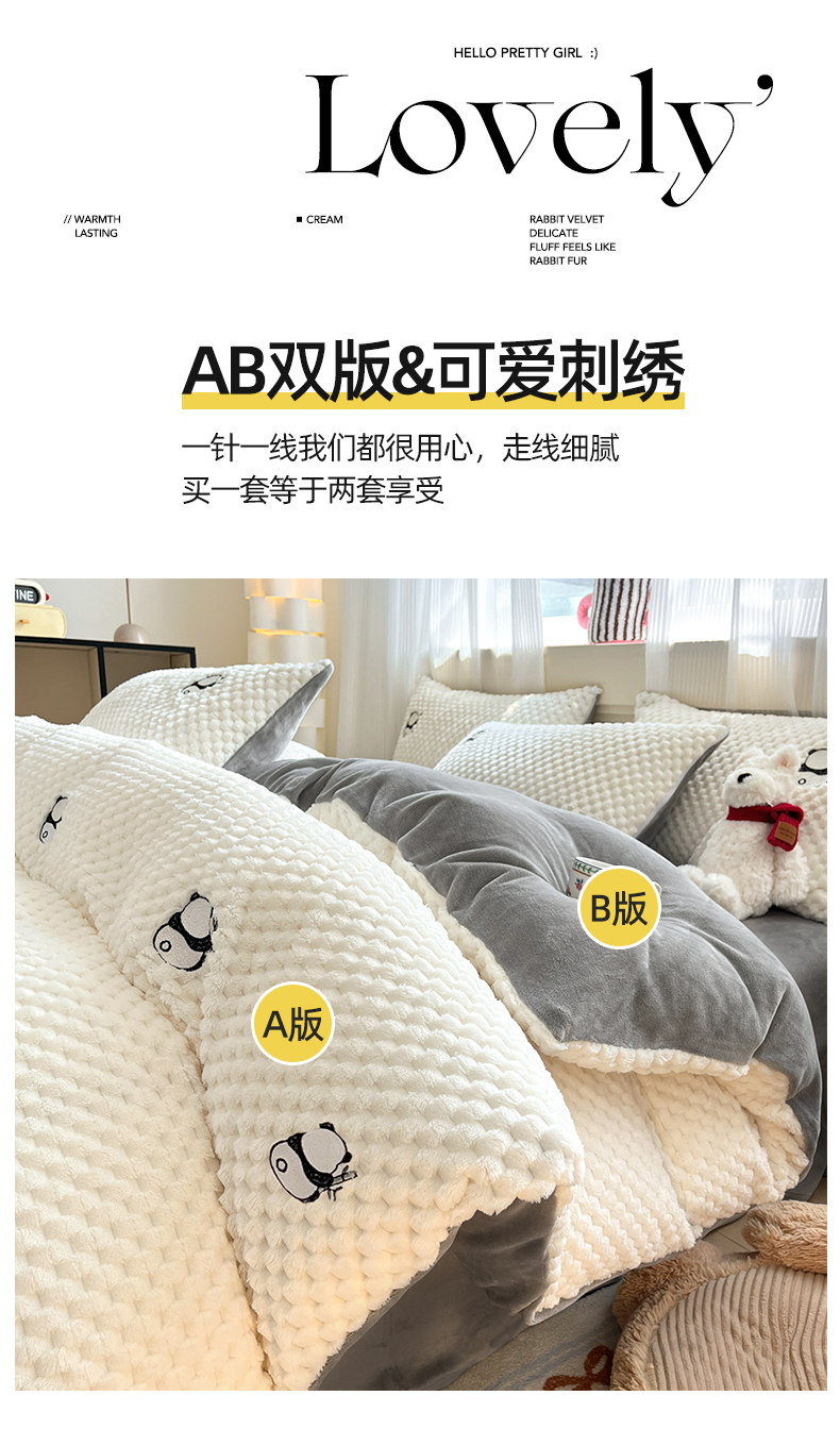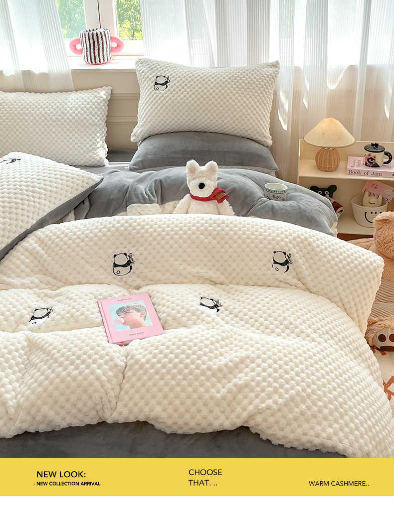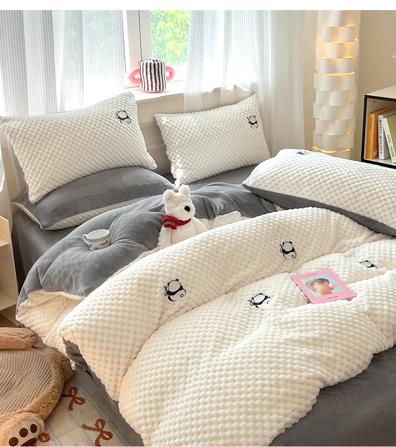 铭宣家居 2024新款A类豆豆绒刺绣款四件套 豆豆绒-熊猫戏竹
