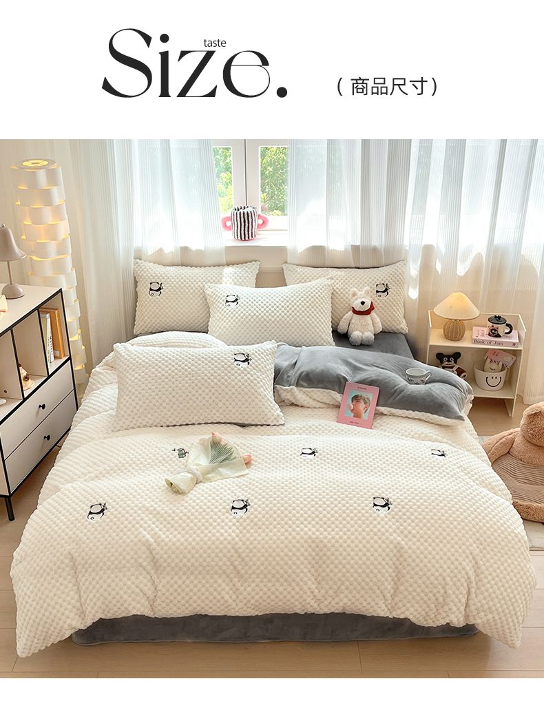 商品名称:铭宣家居 2024新款A类豆豆绒刺绣款四件套 豆豆绒-熊猫戏竹