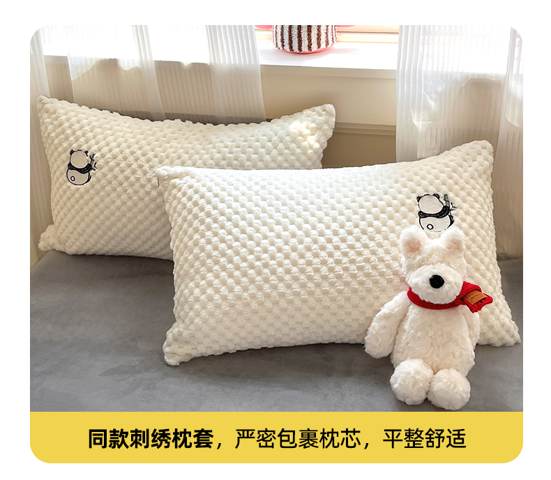 (总)铭宣家居 2025新款200g牛奶绒数码印花加毛巾绣单枕套,萌餐格韵,海盐蛋糕,快乐萌友,萌喵花町,星落卡皮