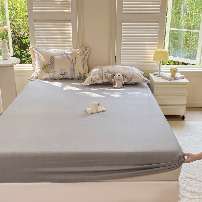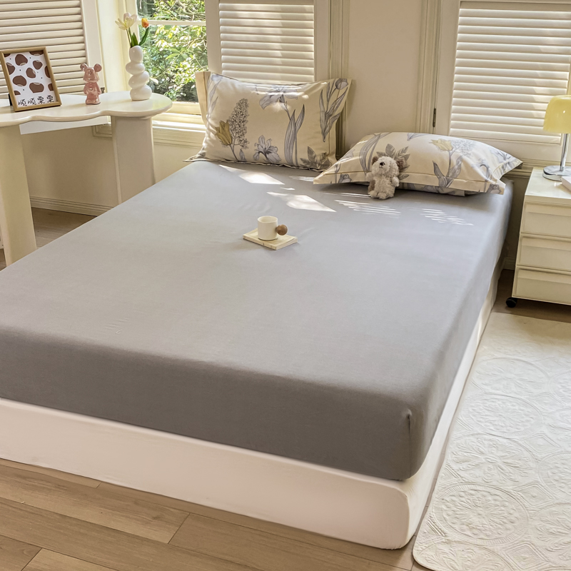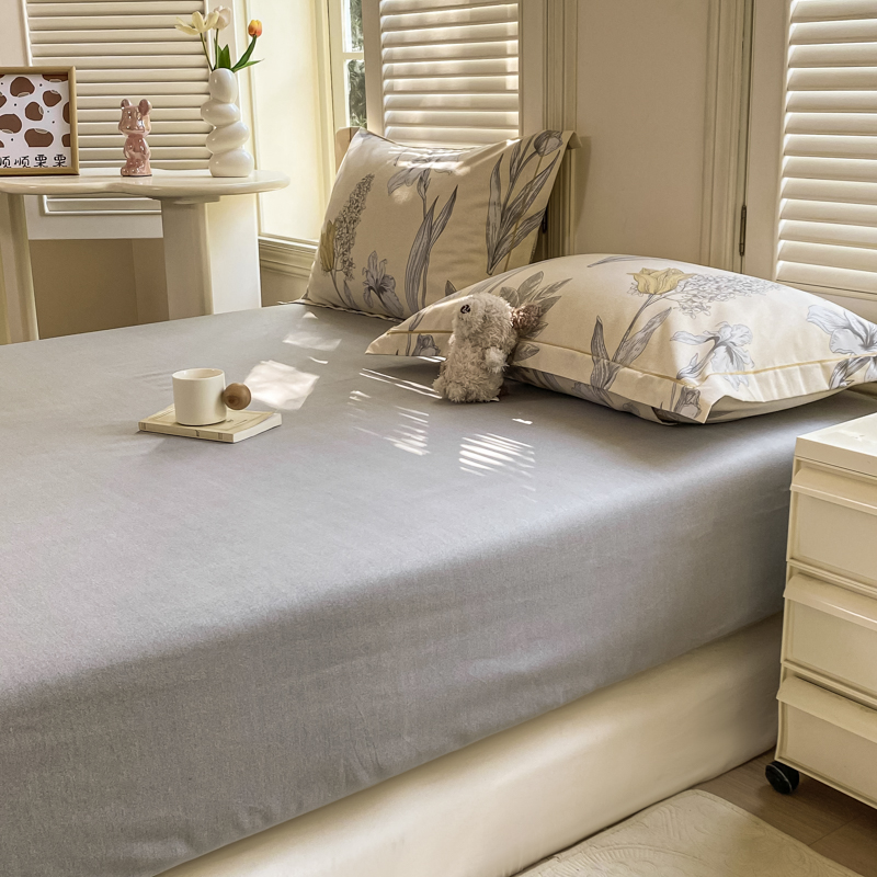 优品阁 2024新款全棉磨毛四件套单品系列-单床笠 且听风铃-灰