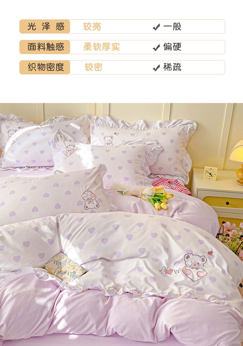 商品名称:2025新款高克重立体臻棉法式韩版毛巾绣四件套-爱心熊 爱心熊-浅紫