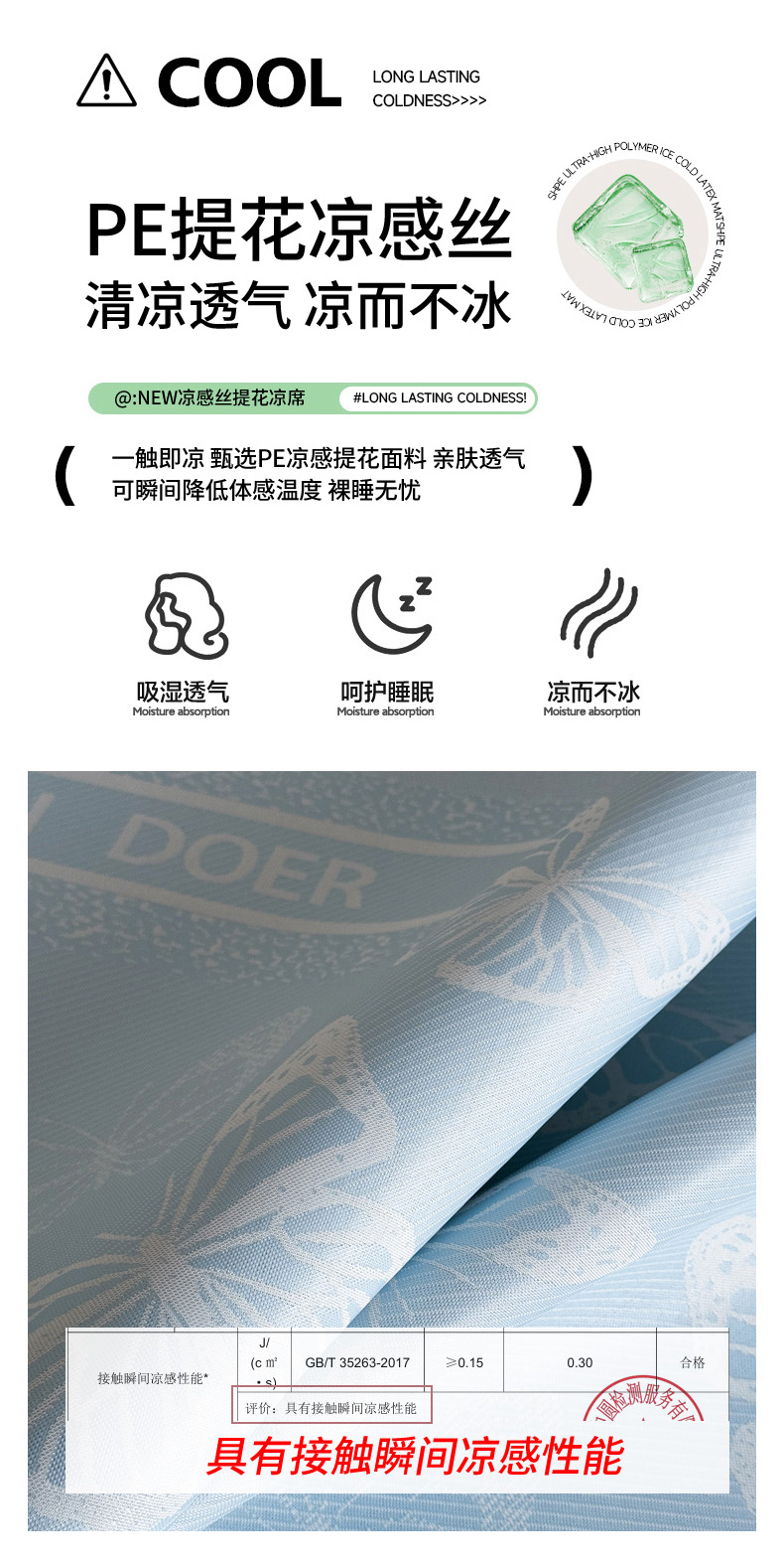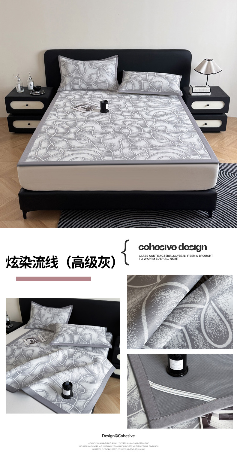 商品名称:九花鹿 2025新款A类PE凉感提花冰丝凉席软凉席可水洗可机洗 炫染流线(浅蓝)