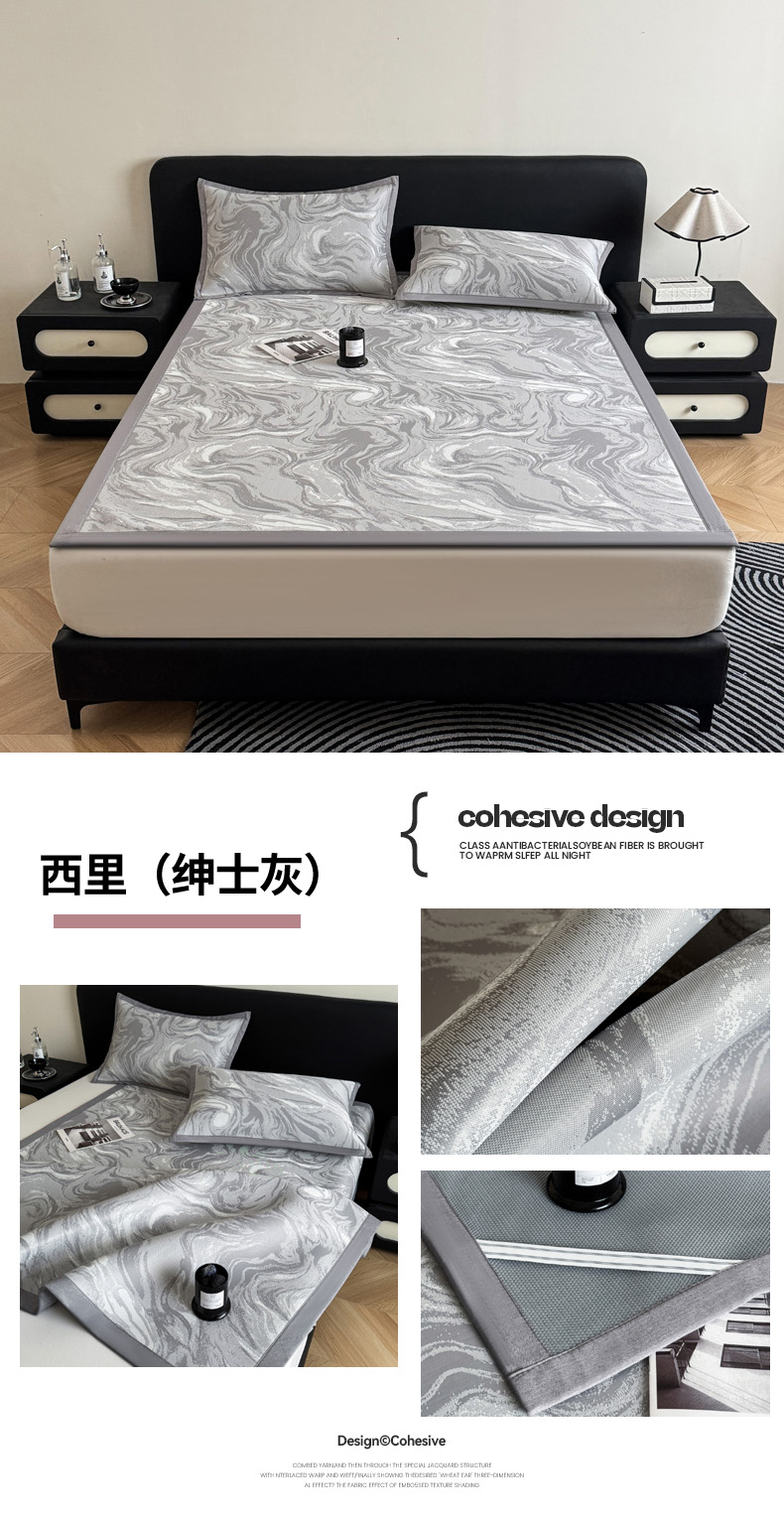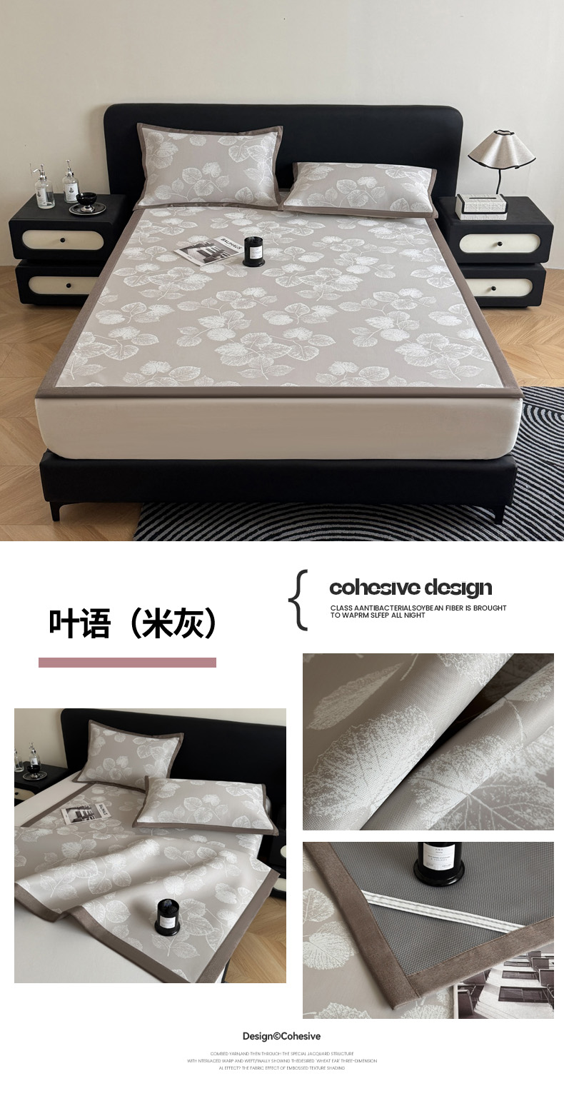 九花鹿2024新款A类大版碳光冰丝凉席床笠款三件套四件套,大版床笠款-熊宝贝