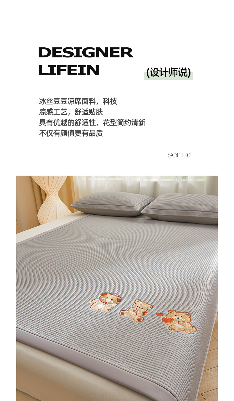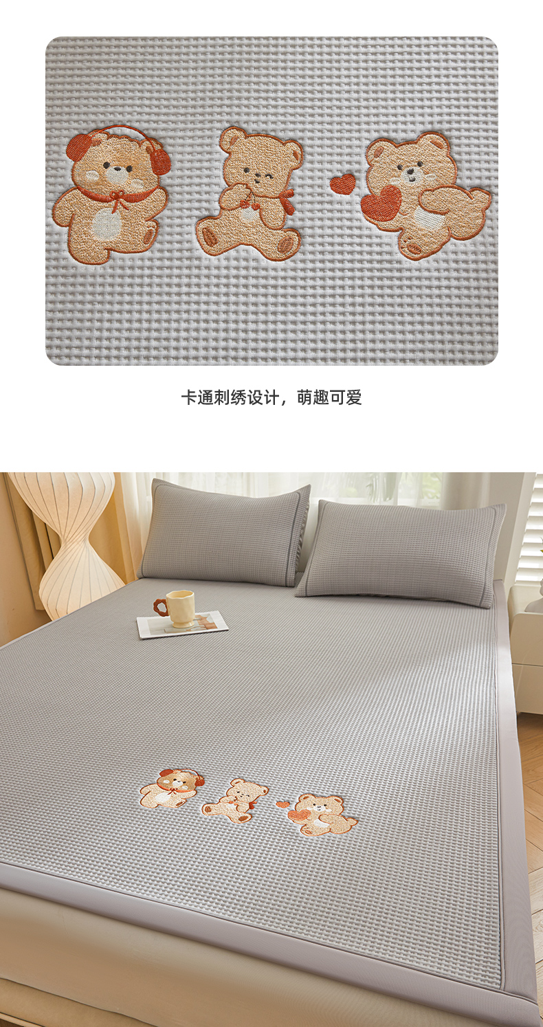 • 91家纺网 家纺一手货源 找家纺 全季家居 2025新款A类乙纶PE家族系列刺绣凉豆豆席凉席席子 快乐小熊-浅灰-床席款