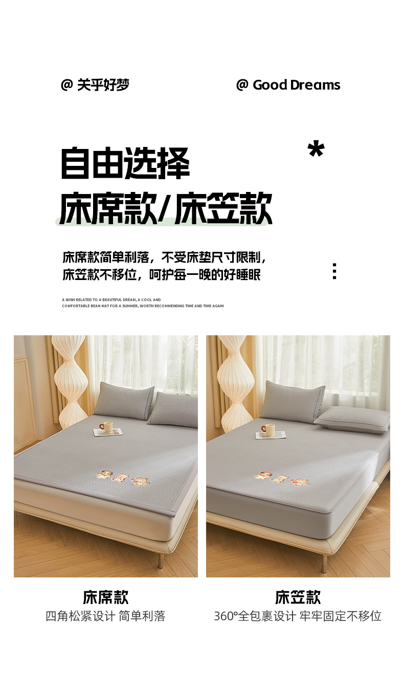 • 91家纺网 家纺一手货源 找家纺 (总)全季家居 2025新款A类抗菌防螨幸运星系列冰藤席凉席席子,金咖 床席,水绿 床席,银灰 床席,金咖 床笠,水绿 床笠,银灰 床笠