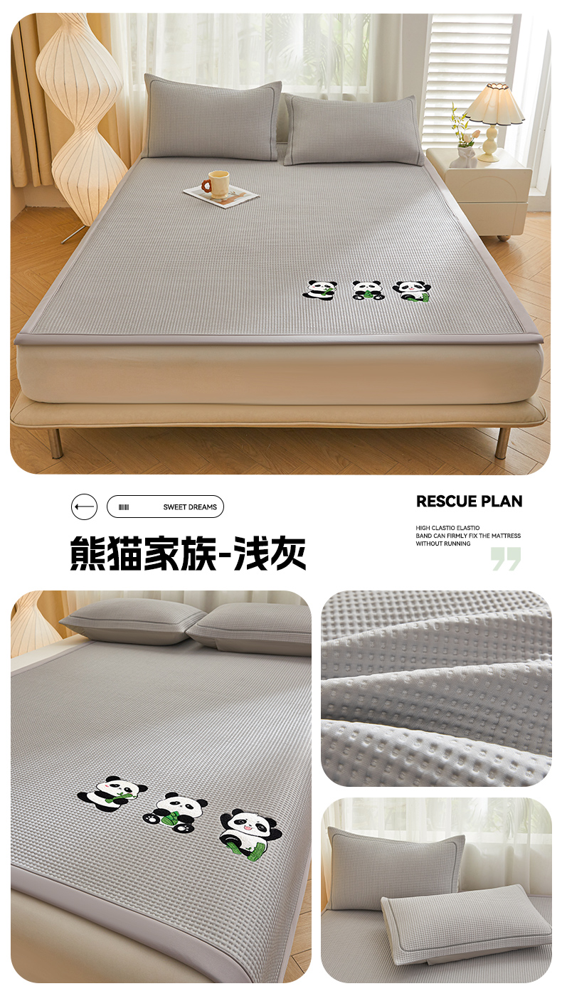 • 91家纺网 家纺一手货源 找家纺 (总)全季家居 2025新款A类抗菌防螨贪吃熊猫系列冰藤席凉席席子,金咖 床席,水绿 床席,银灰 床席,金咖 床笠,水绿 床笠,银灰 床笠