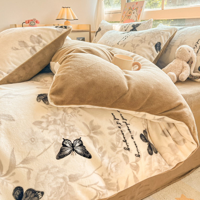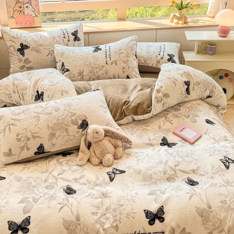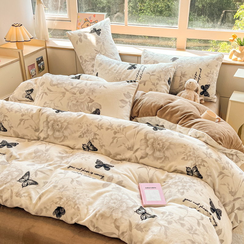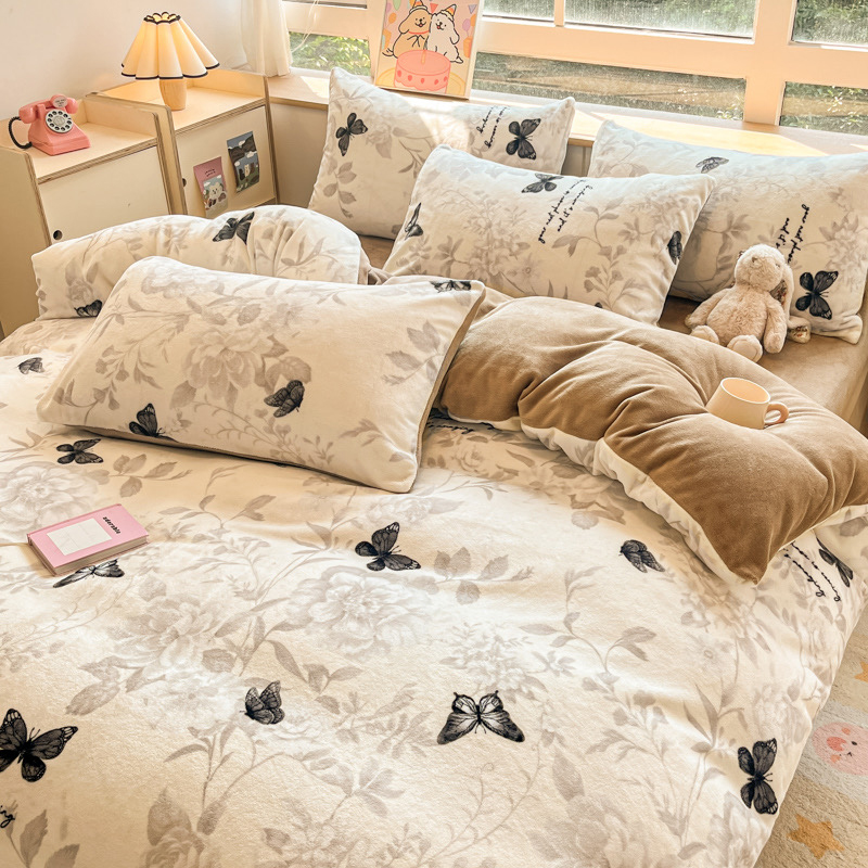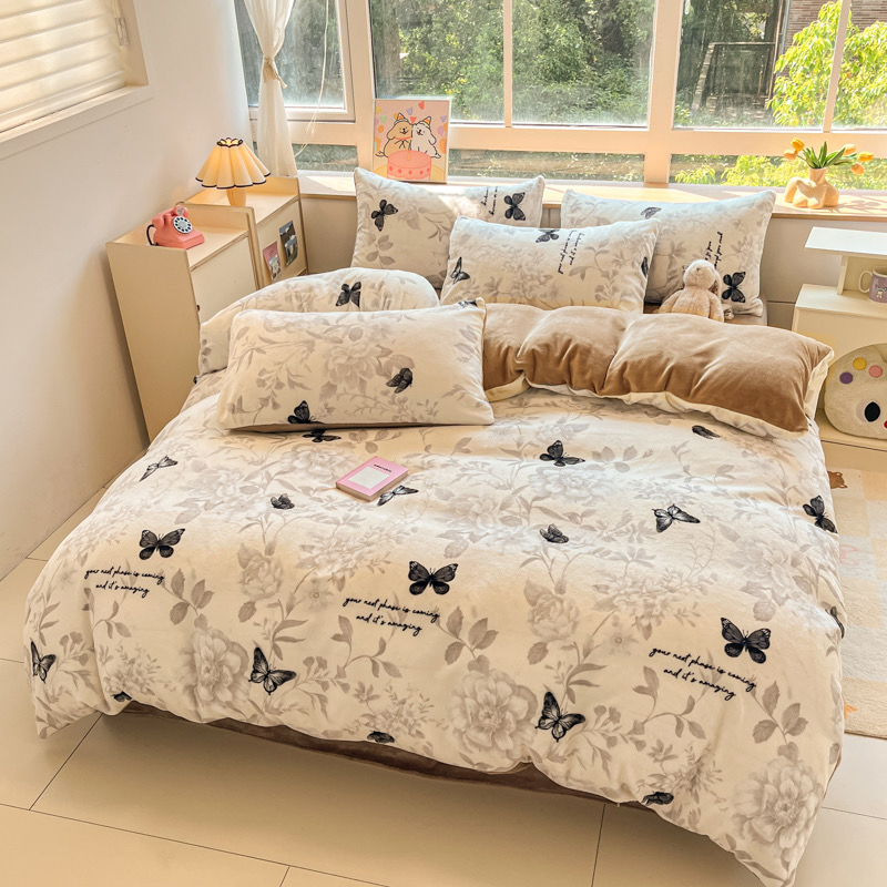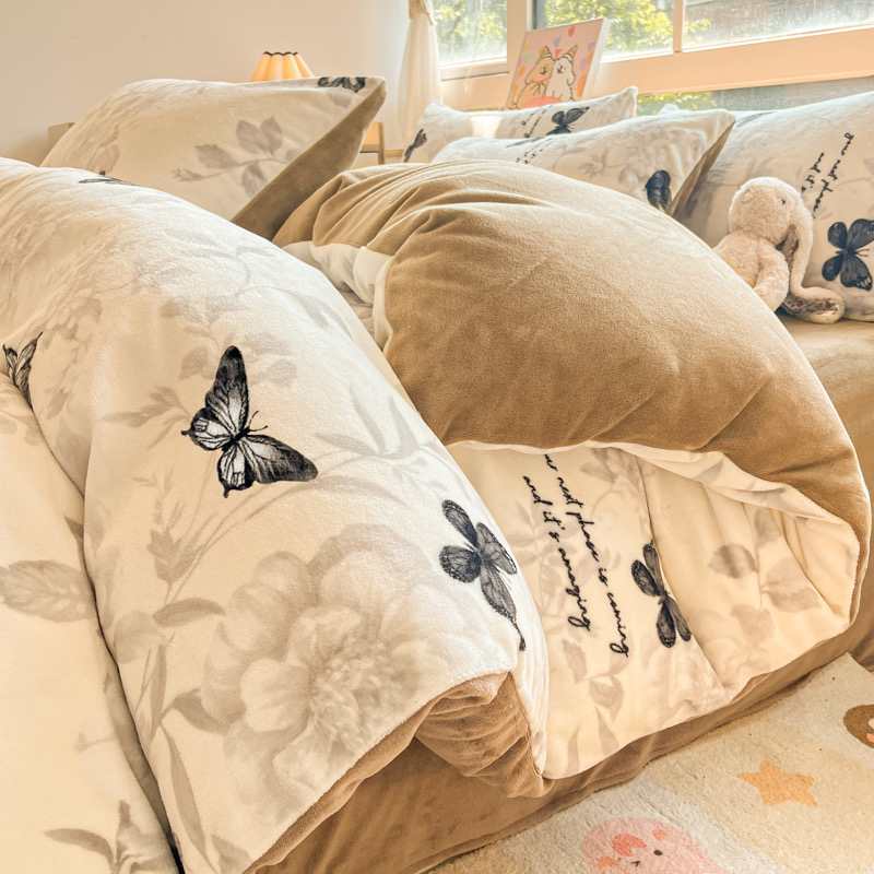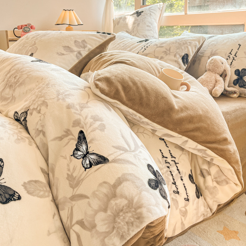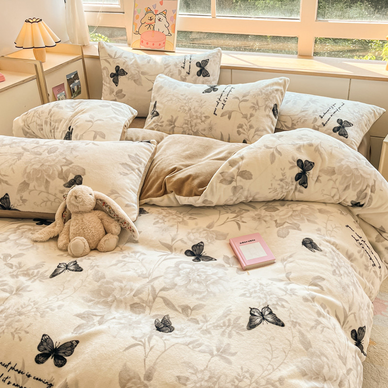 (总)鸿森林 2025新款蝴蝶牛奶绒印花四件套