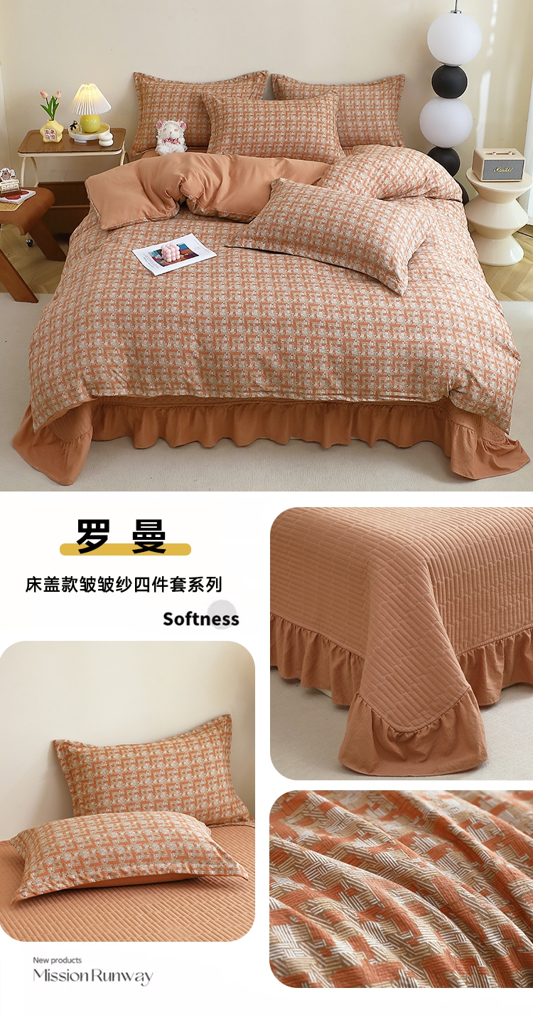 仟网汇 2025新款亲肤皱皱棉四件套皱皱纱四件套 罗曼