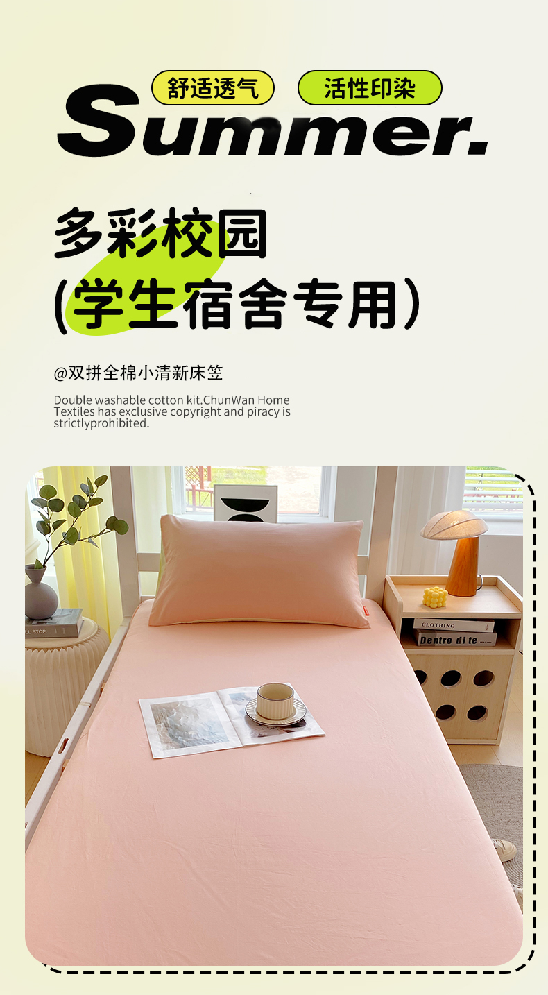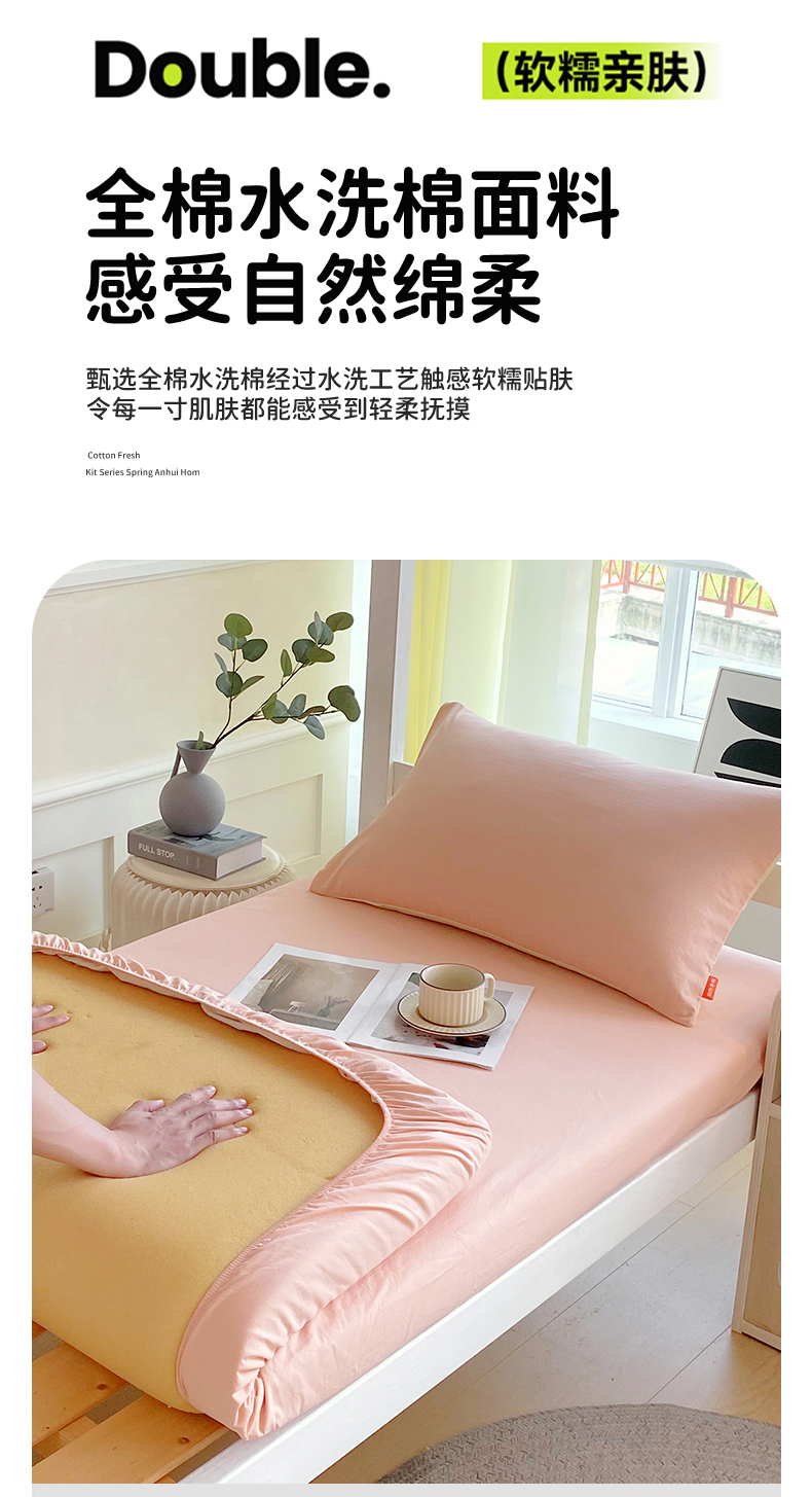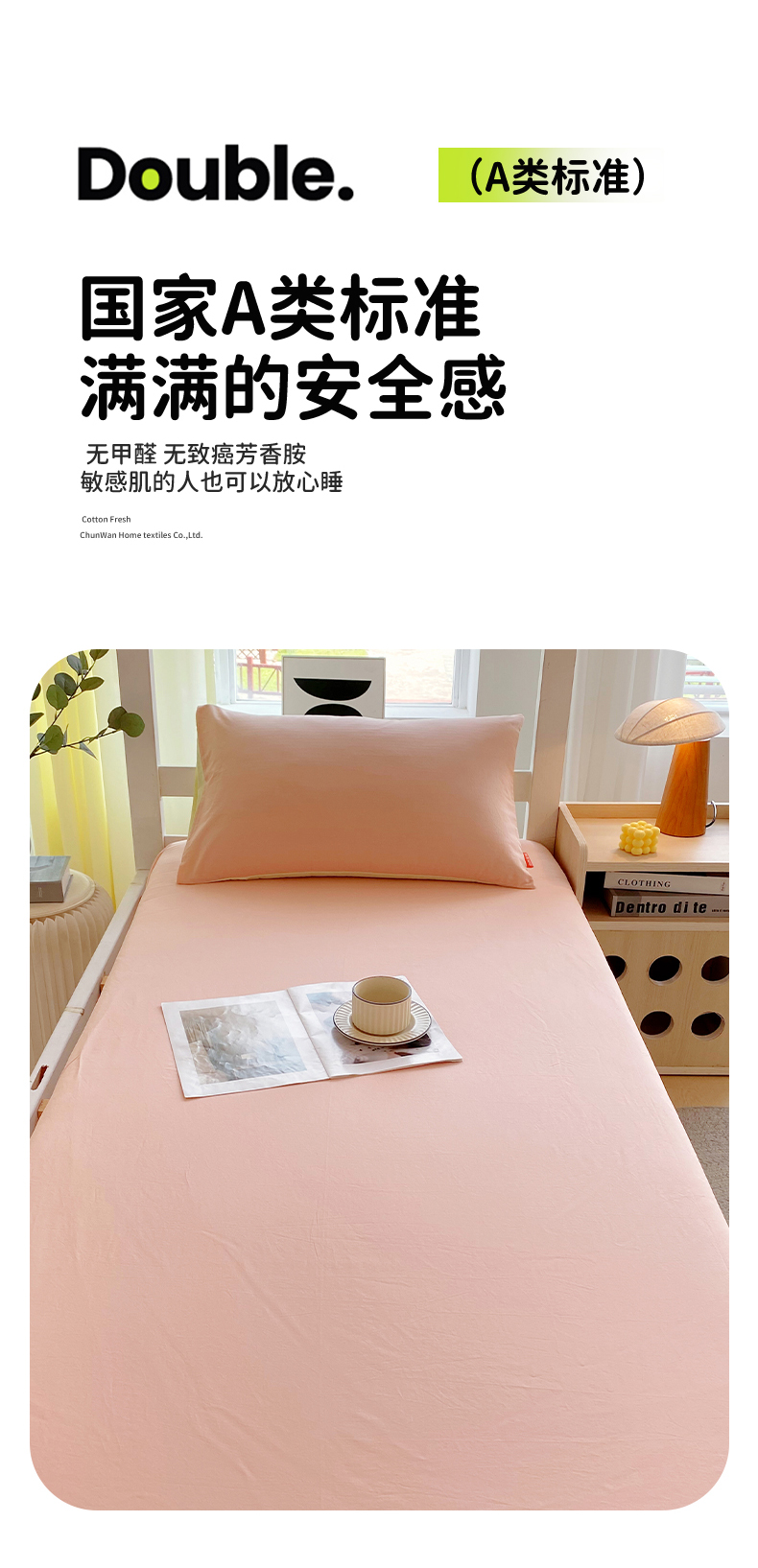 春皖家纺 2025新款双拼A类水洗棉系列-单床笠 素雅浅玉