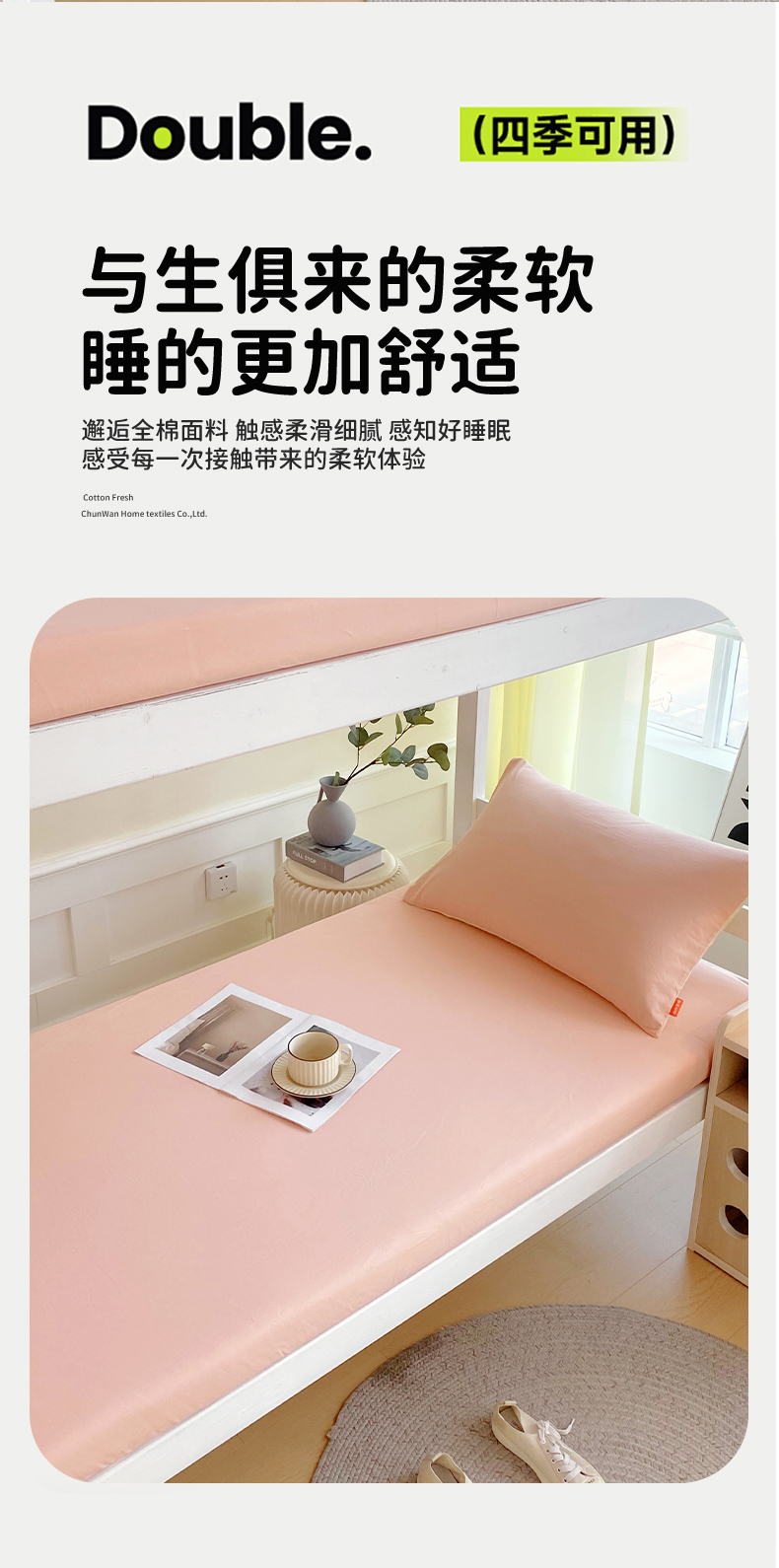 • 91家纺网 家纺一手货源 找家纺 春皖家纺 2025新款双拼A类水洗棉系列-单床笠 素雅浅玉