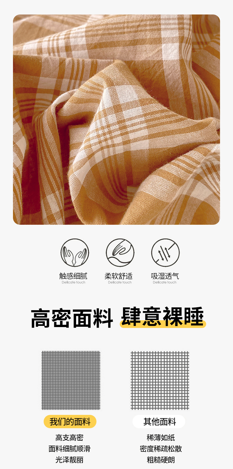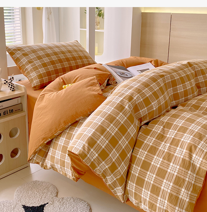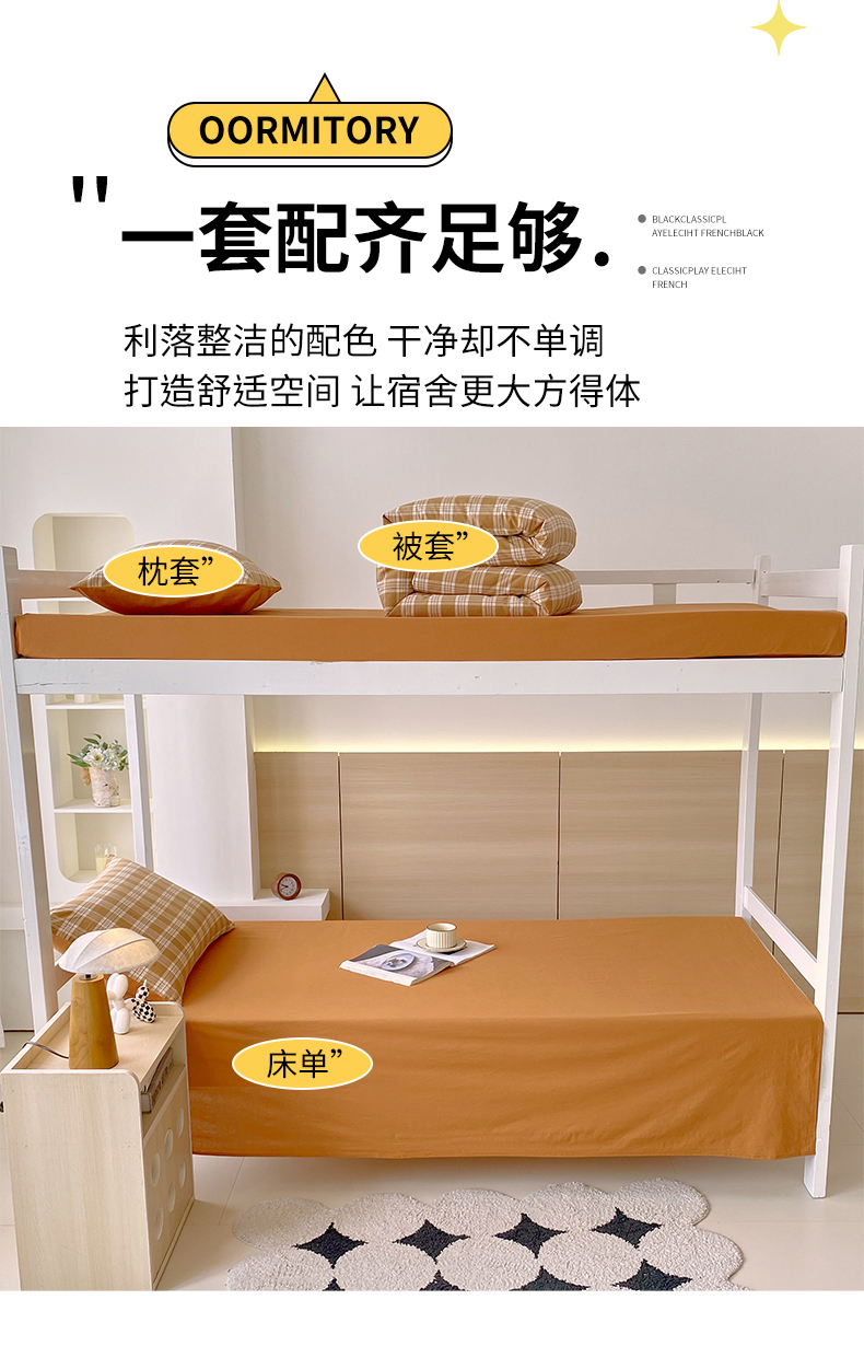 当前位置: 91家纺网 > 商品网购 > 床品套件 > 四件套 > 春皖家纺 2025新款AB棉全棉亲肤水洗棉学生三件套四件套 素雅-黄格