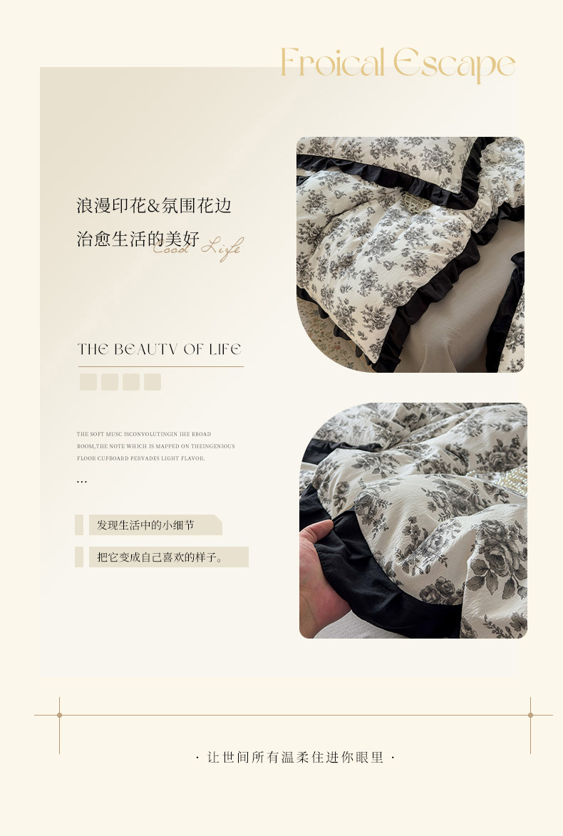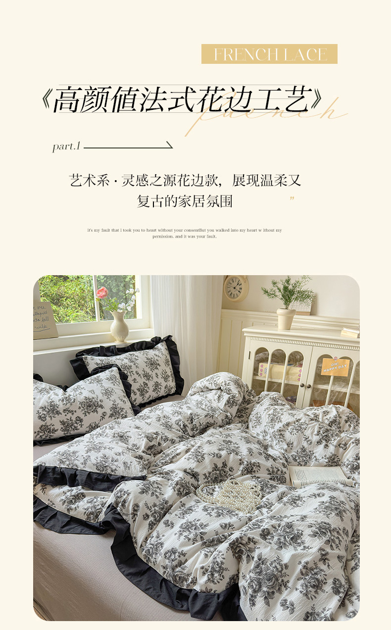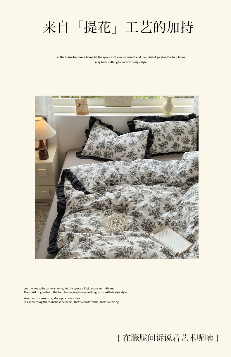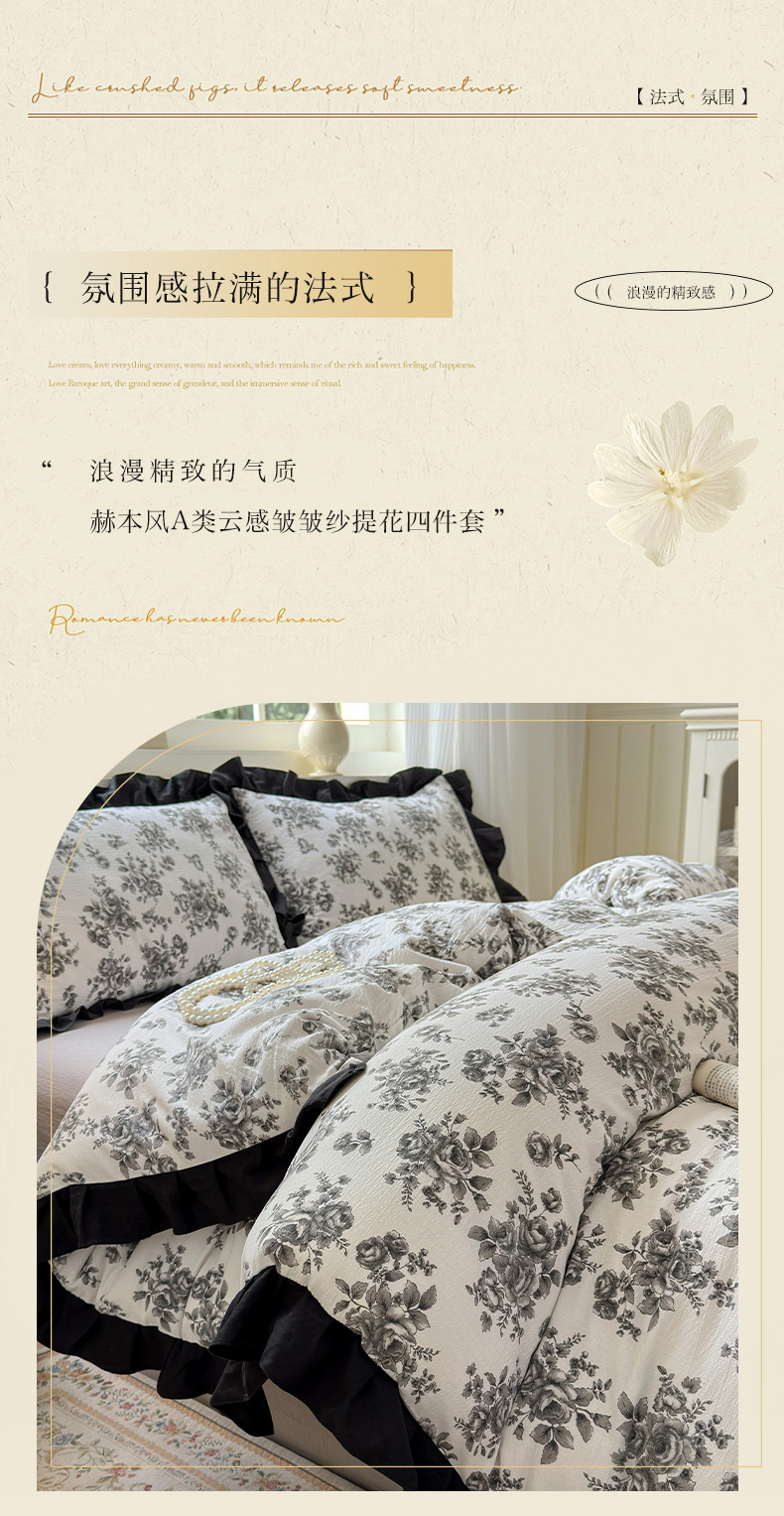 当前位置: 91家纺网 > 商品网购 > 床品套件 > 四件套 > 其它四件套 > 喜颜 2025新款云感提花皱皱棉爆款花边四件套-赫本风 花束