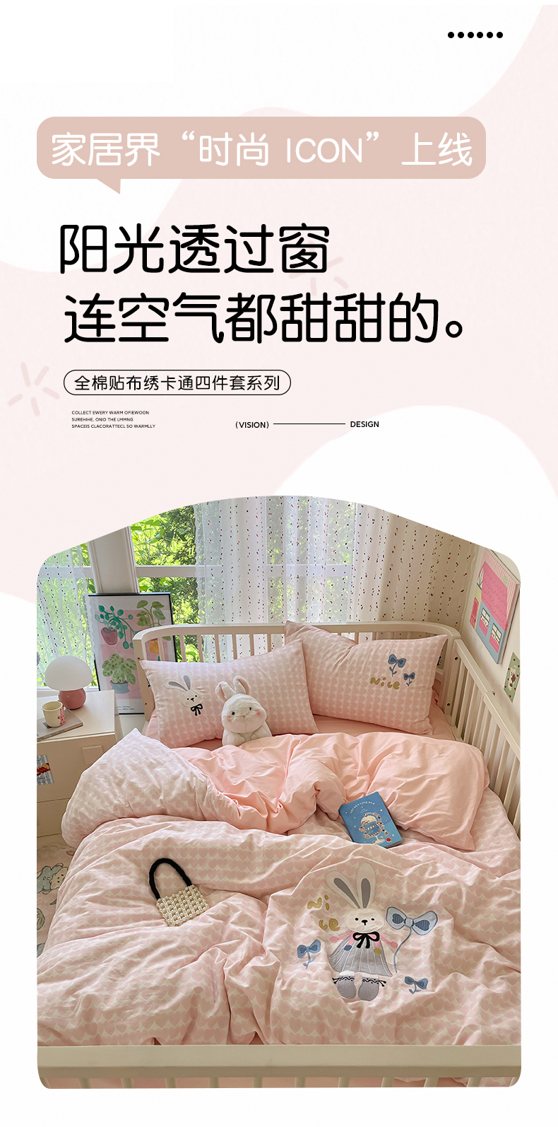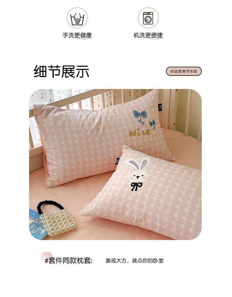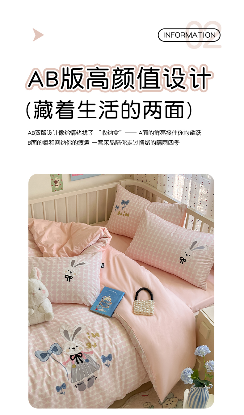 当前位置: 91家纺网 > 商品网购 > 床品套件 > 四件套 > 全棉普通四件套 > 乐美家纺 2025新款亲肤舒适全棉纯棉贴布绣卡通系列四件套 蝴蝶结兔子