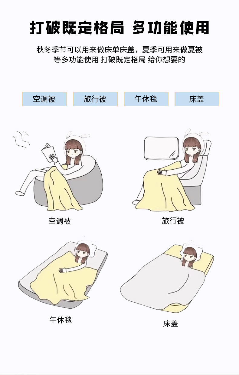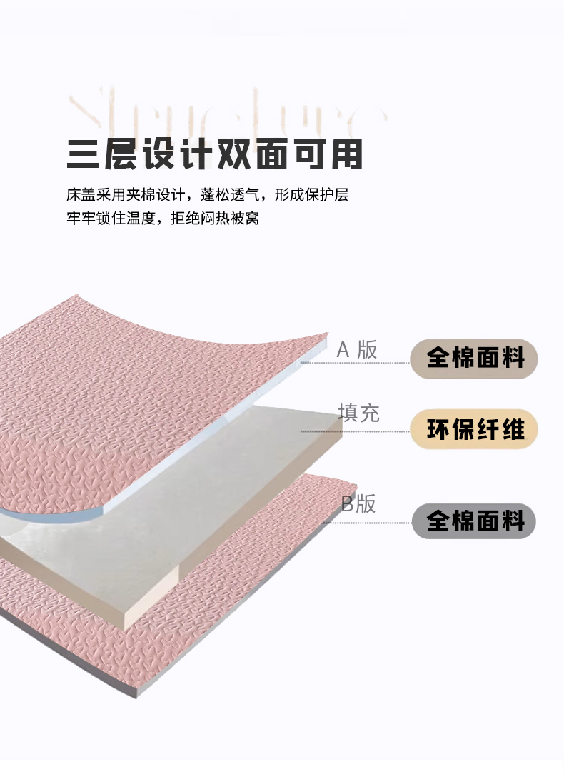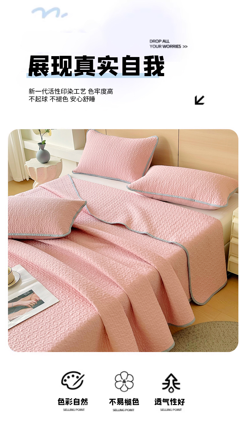 商品名称:春皖家纺 2025新款全棉多功能单床盖 床盖单件 艾迪-粉