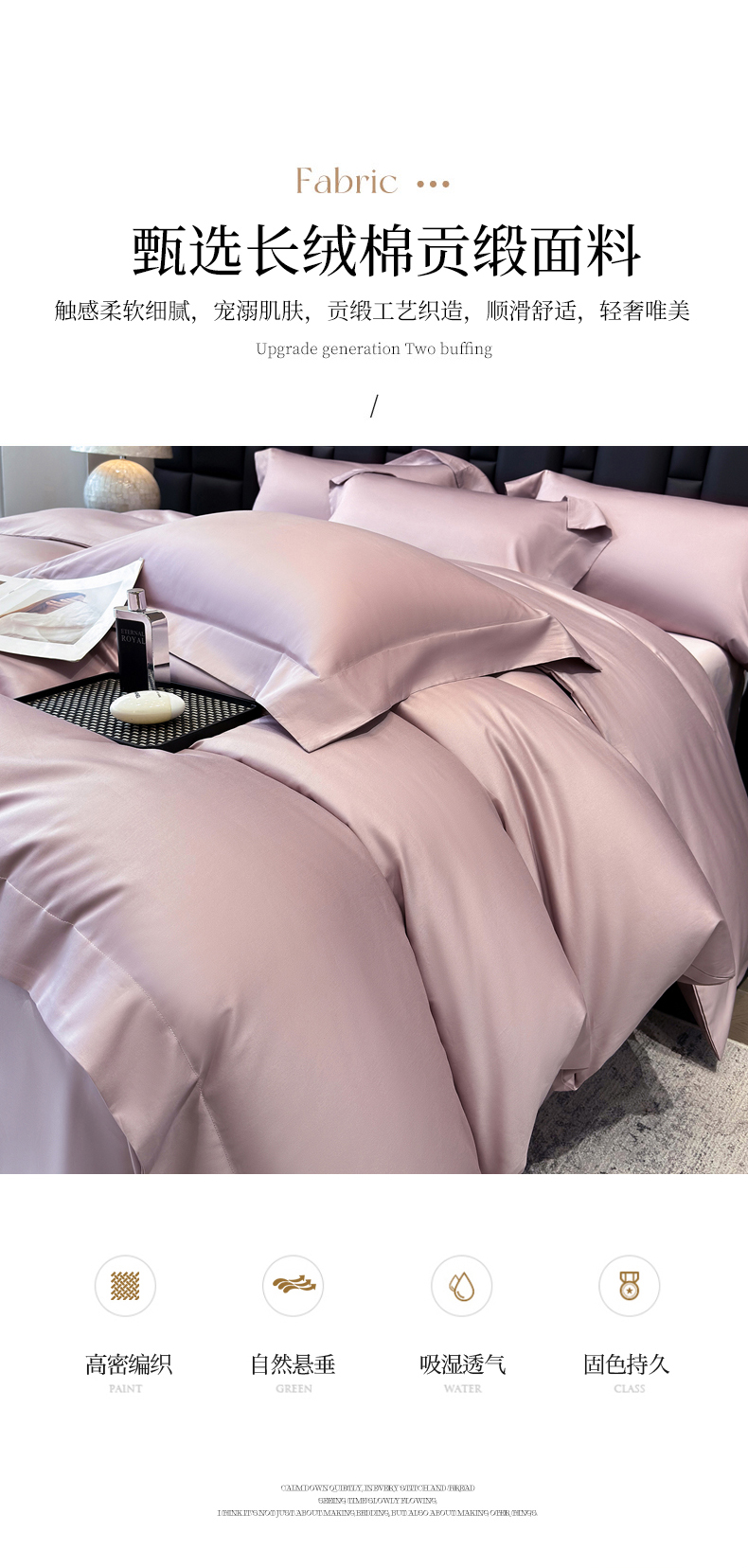 (总)星蕴家纺 2026新款贡缎长绒棉纯色四件套-多米,多米-优雅紫,多米-山灰色,多米-珍珠白,多米-香槟金