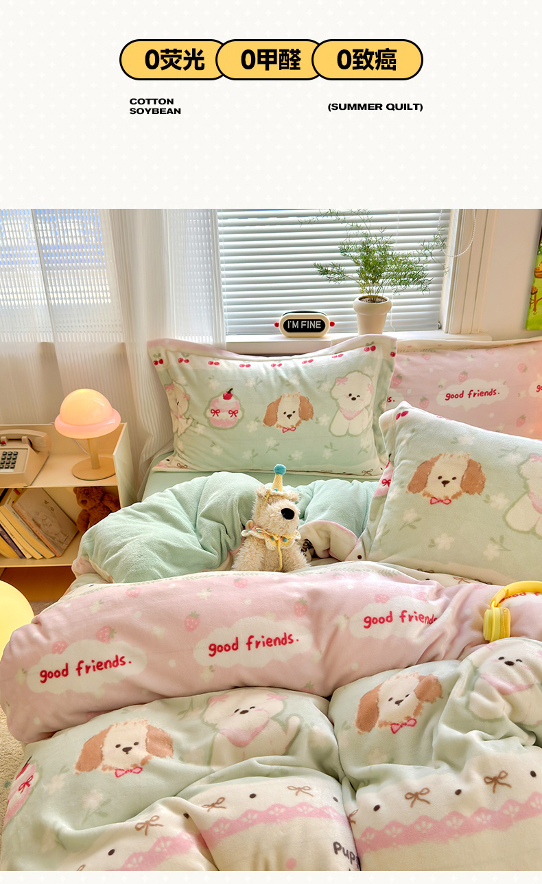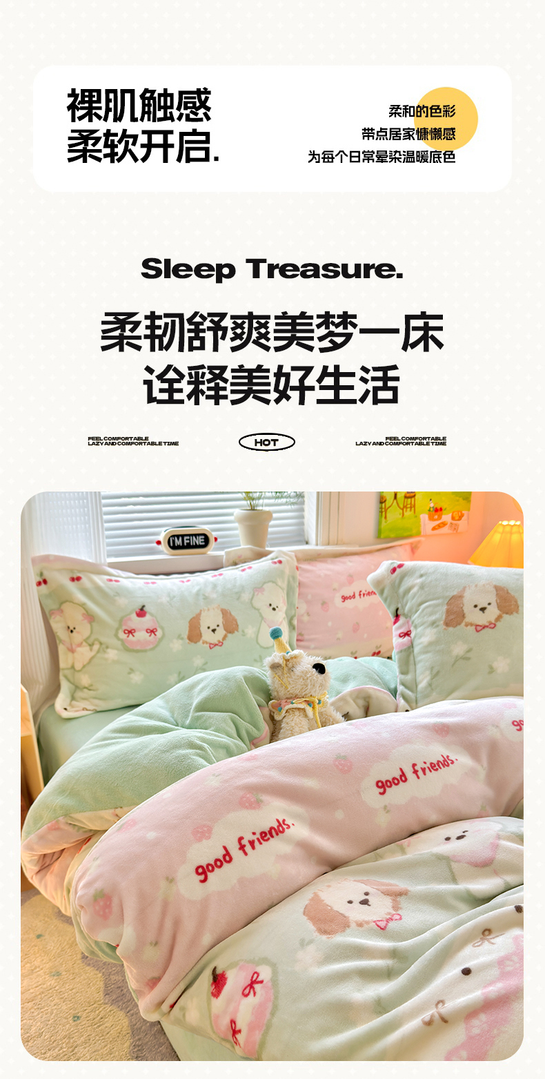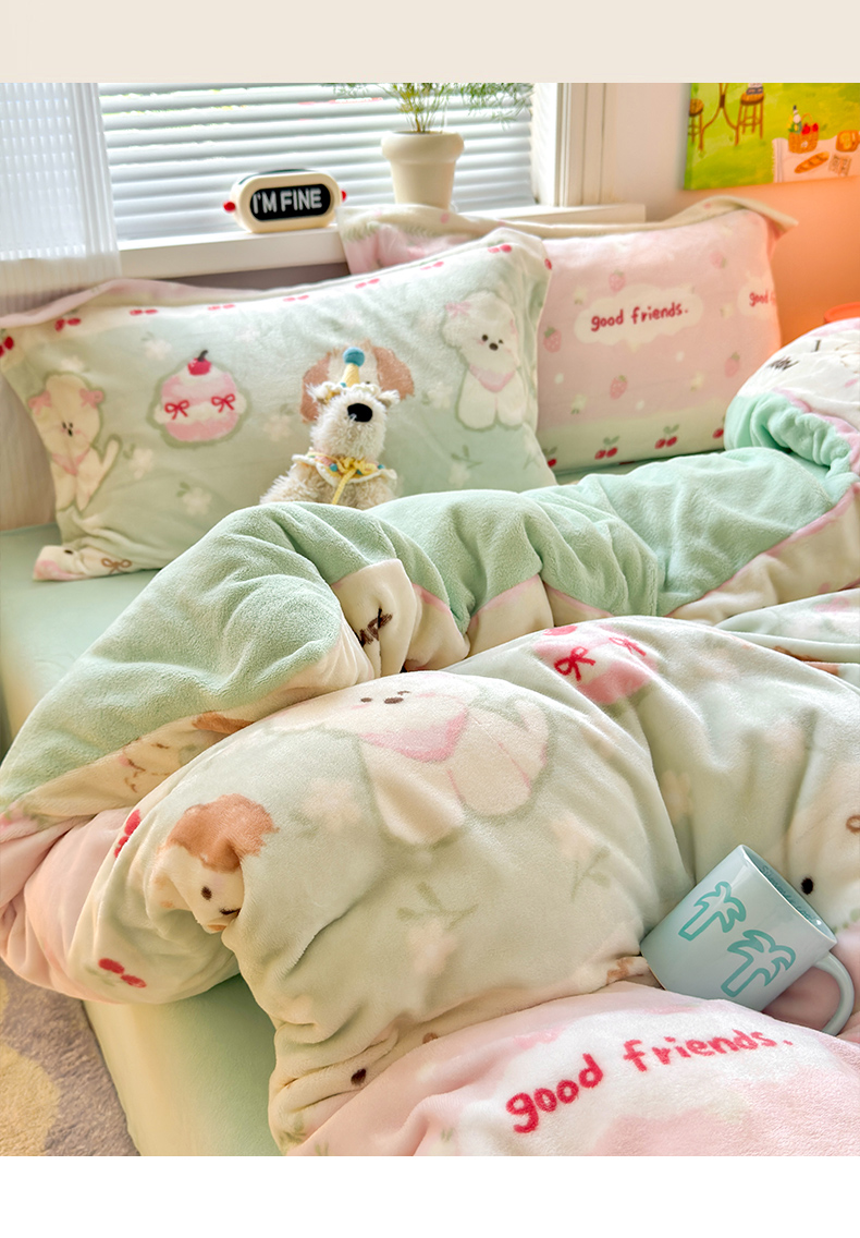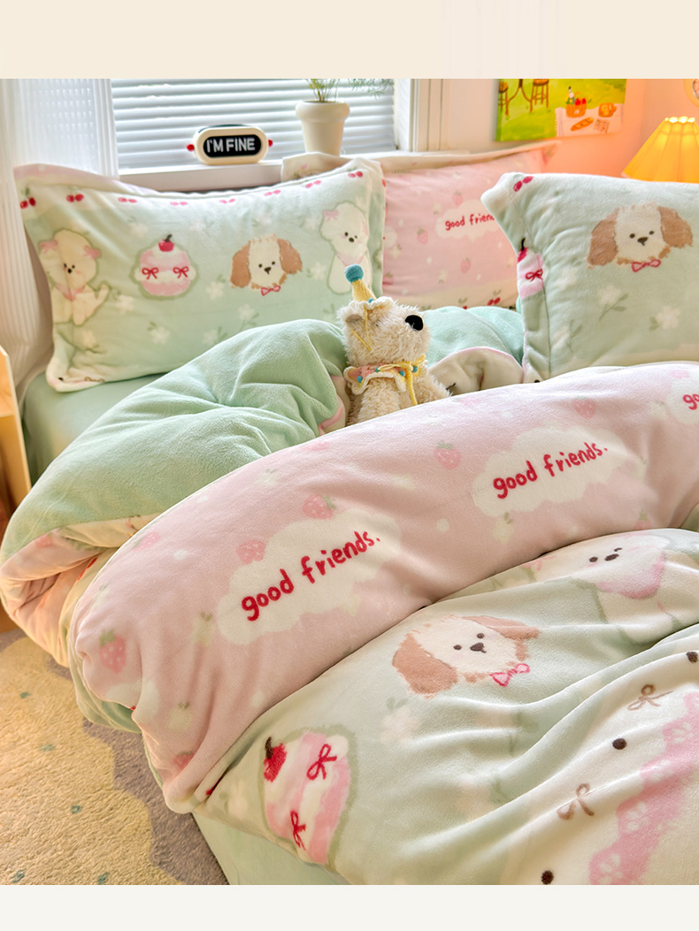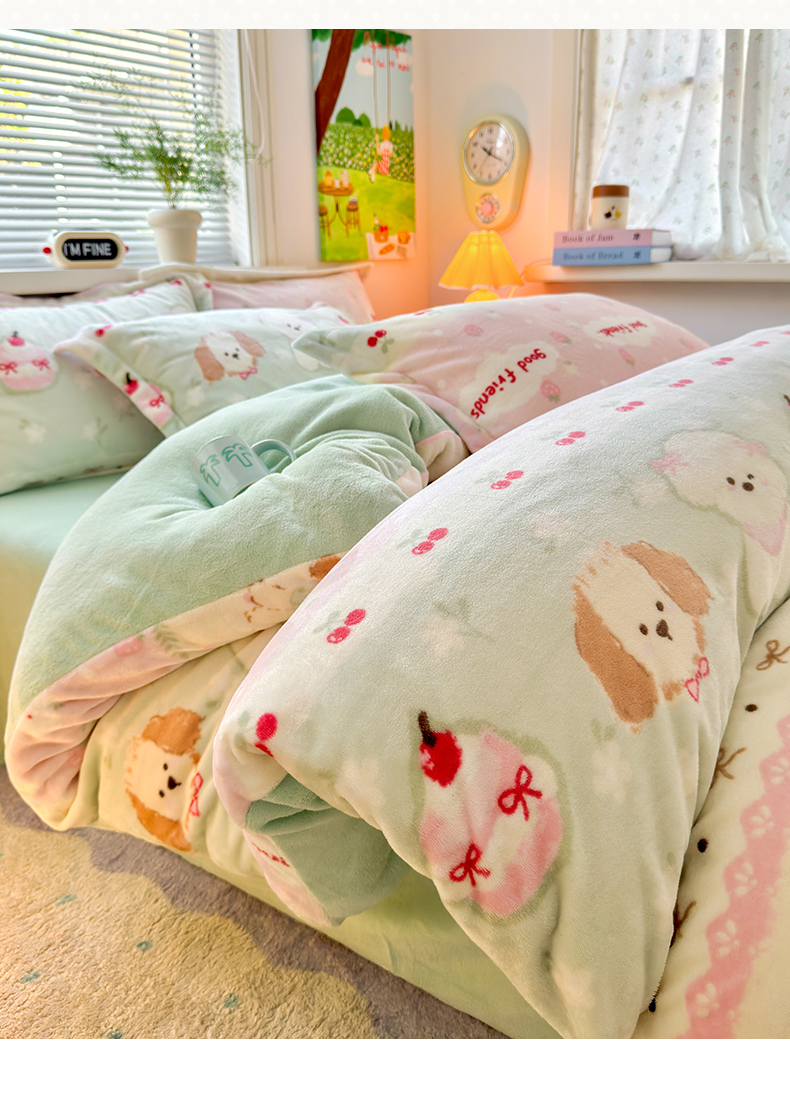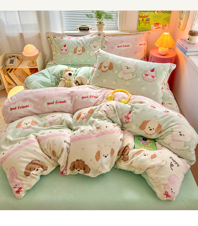 当前位置: 91家纺网 > 商品网购 > 床品套件 > 四件套 > 牛奶绒四件套 > 铭宣 2025新款高克重牛奶绒印花保暖四件套床单床笠单被套款 春日萌犬