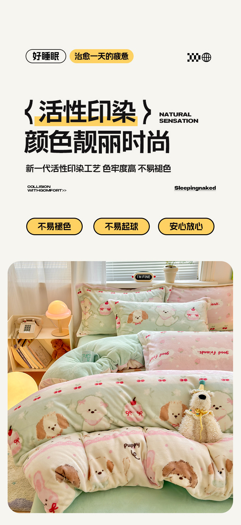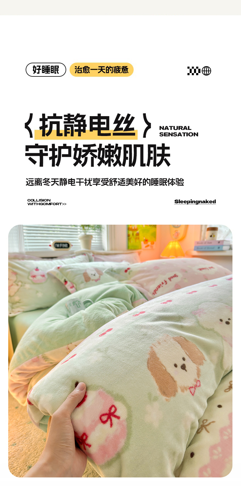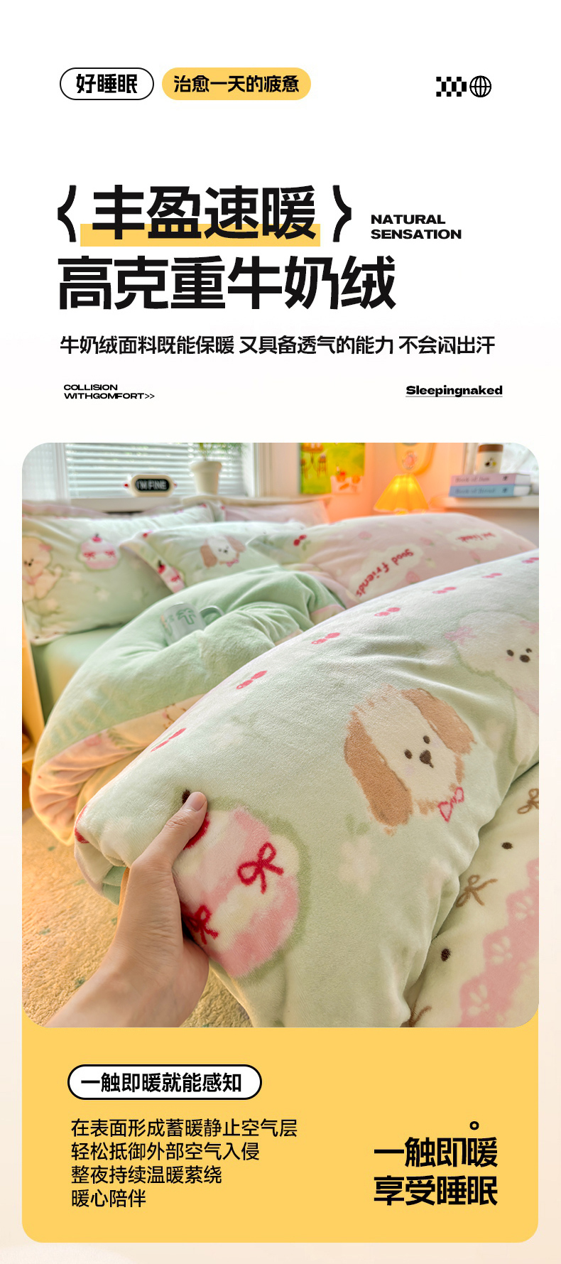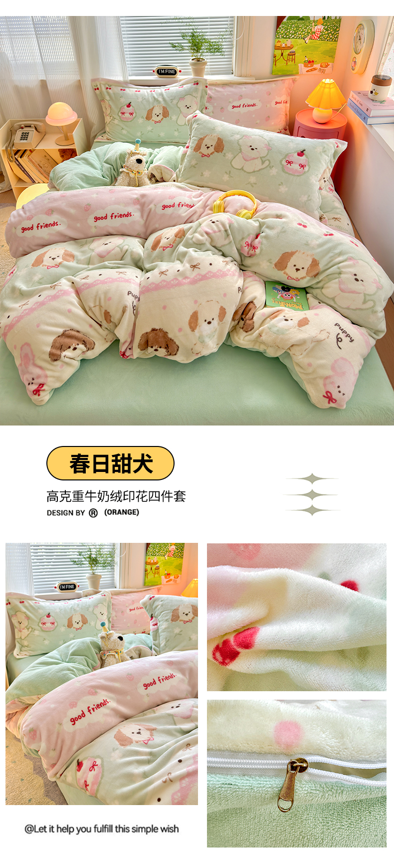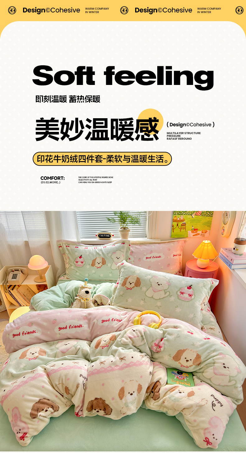 当前位置: 91家纺网 > 商品网购 > 床品套件 > 四件套 > 牛奶绒四件套 > 铭宣 2025新款高克重牛奶绒印花保暖四件套床单床笠单被套款 春日萌犬