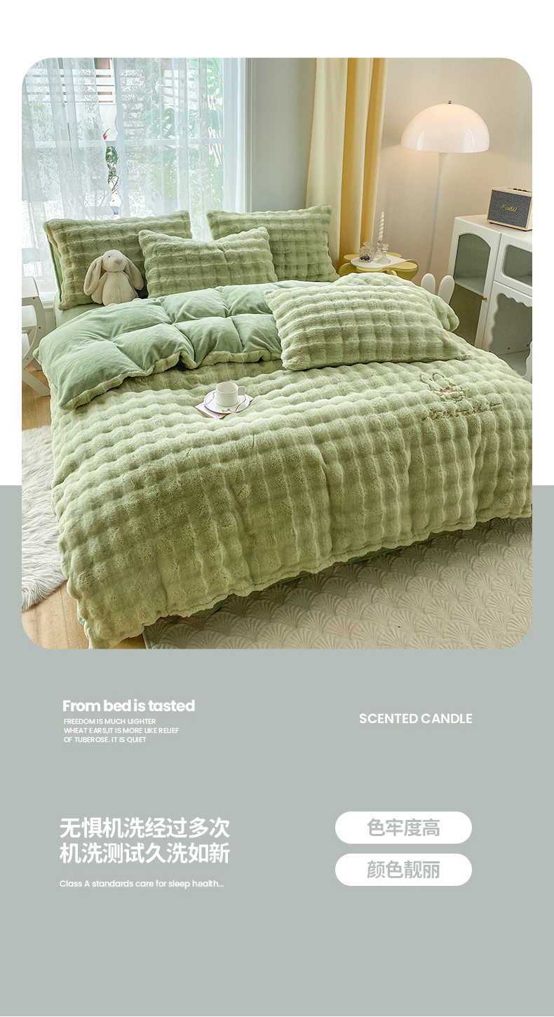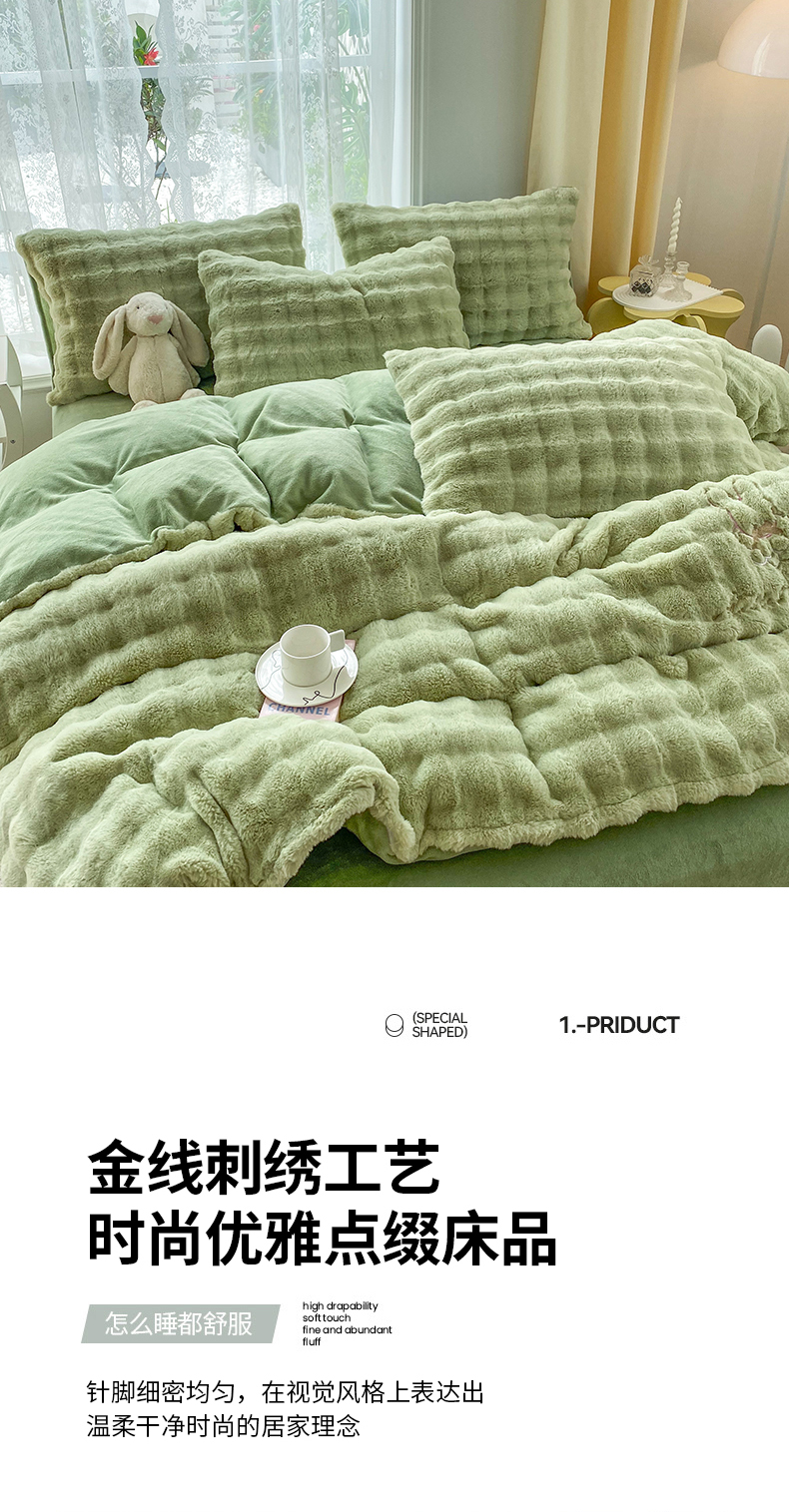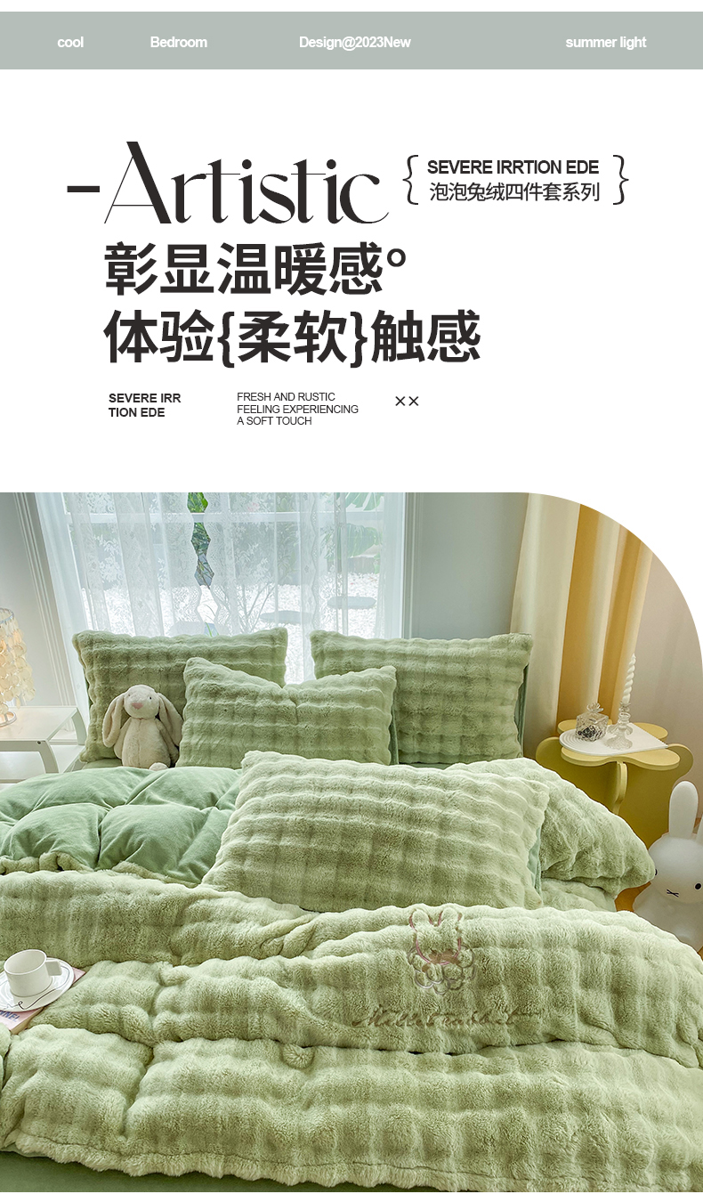 当前位置: 91家纺网 > 商品网购 > 床品套件 > 四件套 > 其它四件套 > 潮邦创意家居 2025新款小米兔泡泡兔绒保暖四件套 米兔绿