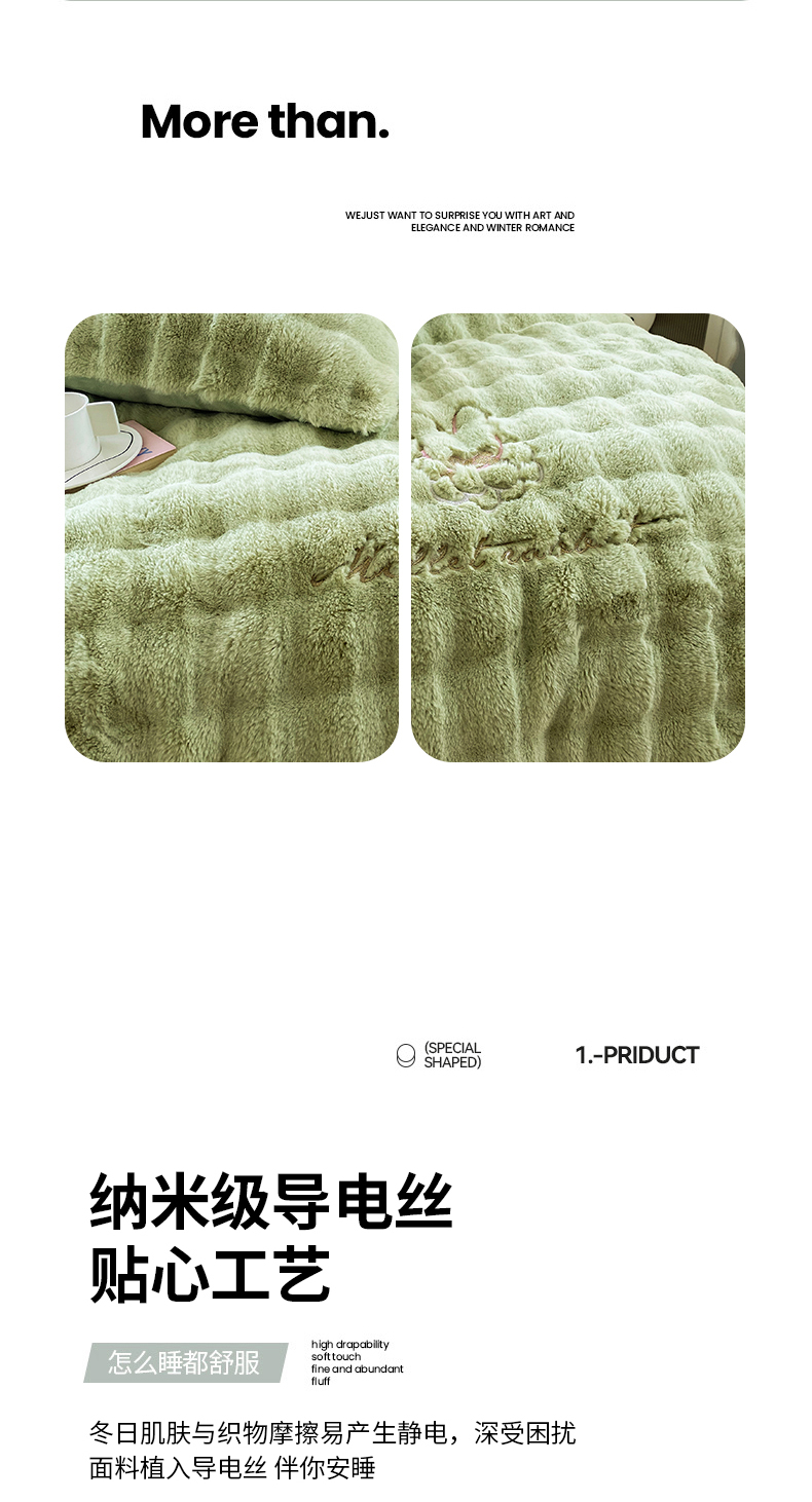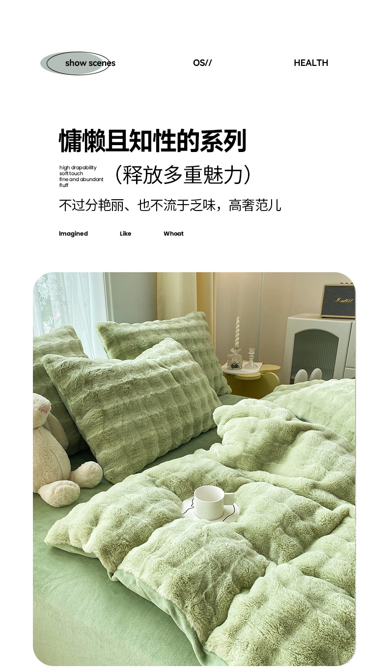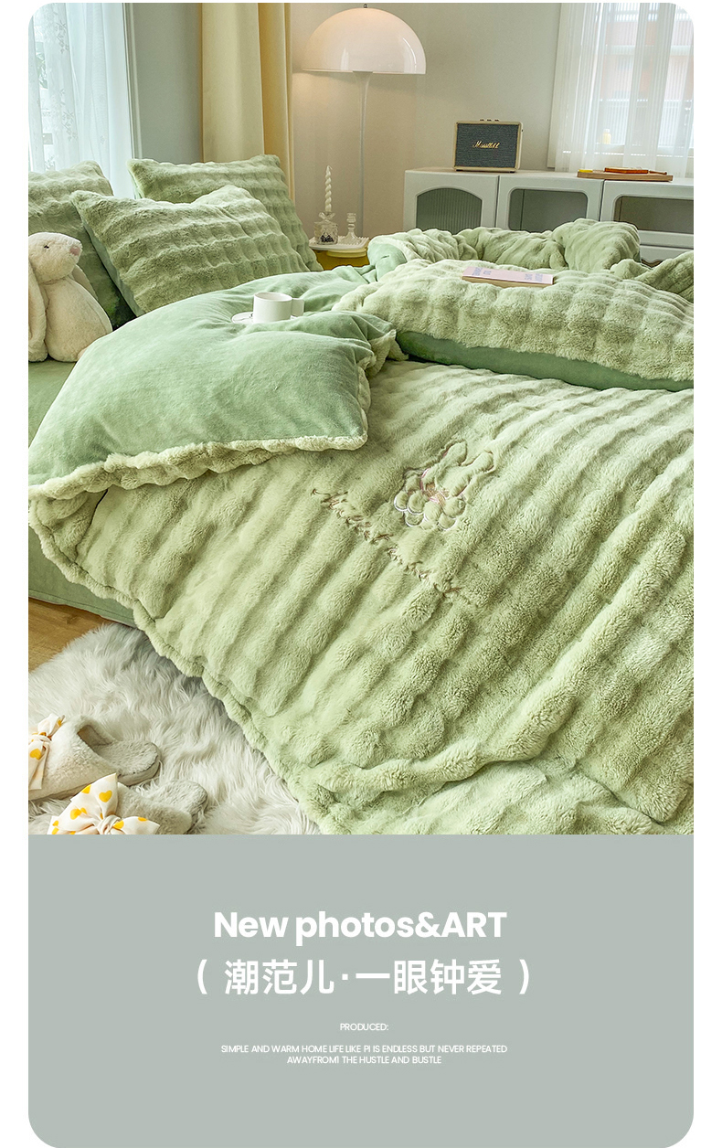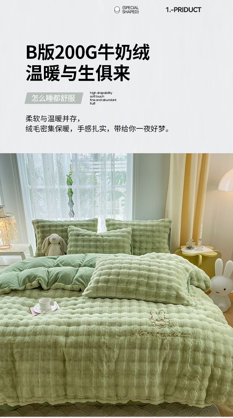 当前位置: 91家纺网 > 商品网购 > 床品套件 > 四件套 > 其它四件套 > 潮邦创意家居 2025新款小米兔泡泡兔绒保暖四件套 米兔绿