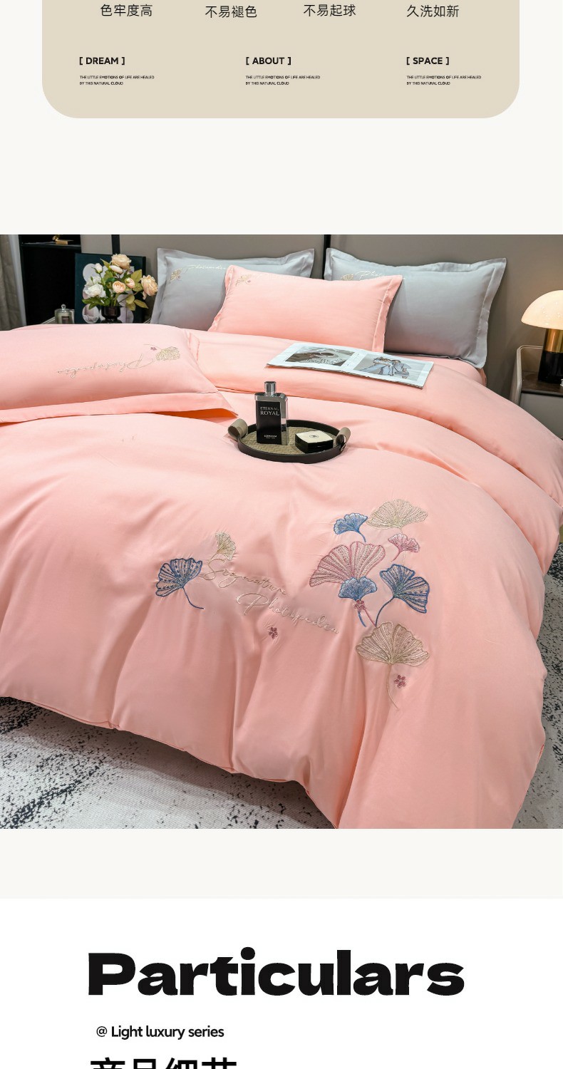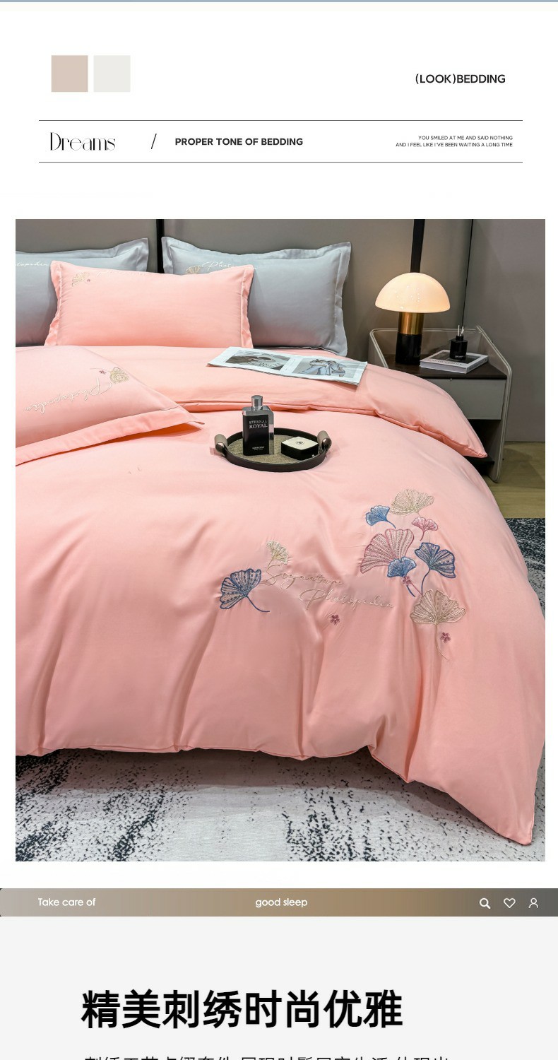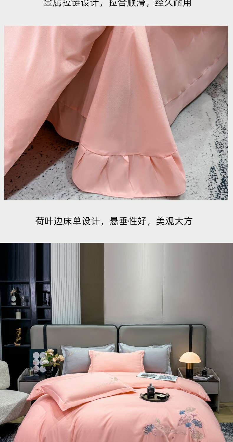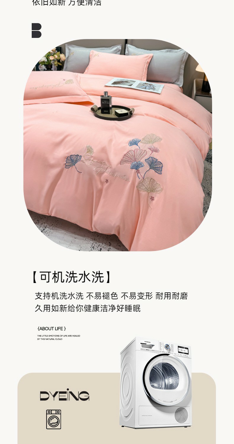 商品名称:悦织湾家纺 90克磨毛刺绣纯色四件套2025新款轻奢韩版公主风精致床上用品绣花亲肤水洗棉4件套 新银杏-玉色