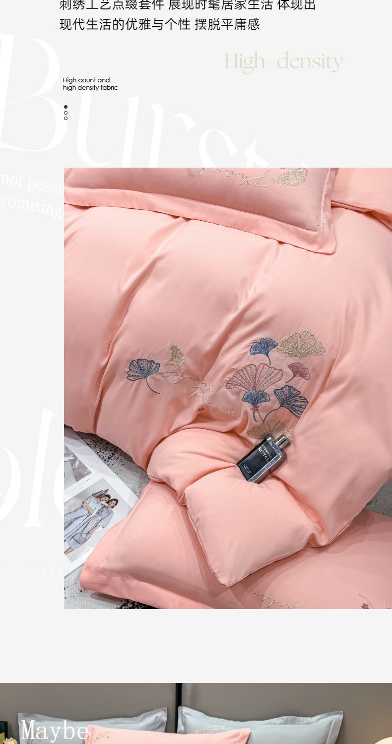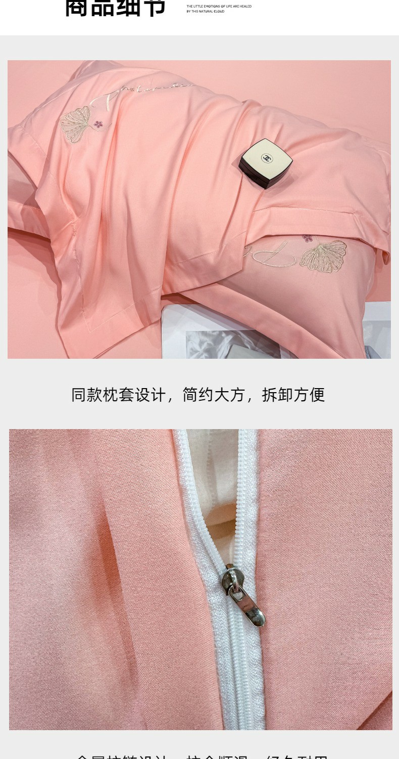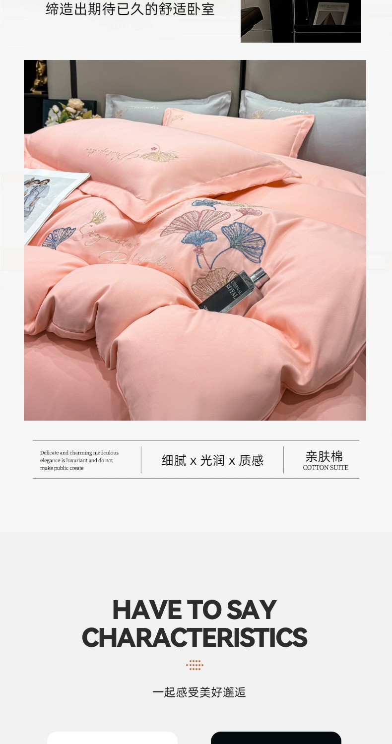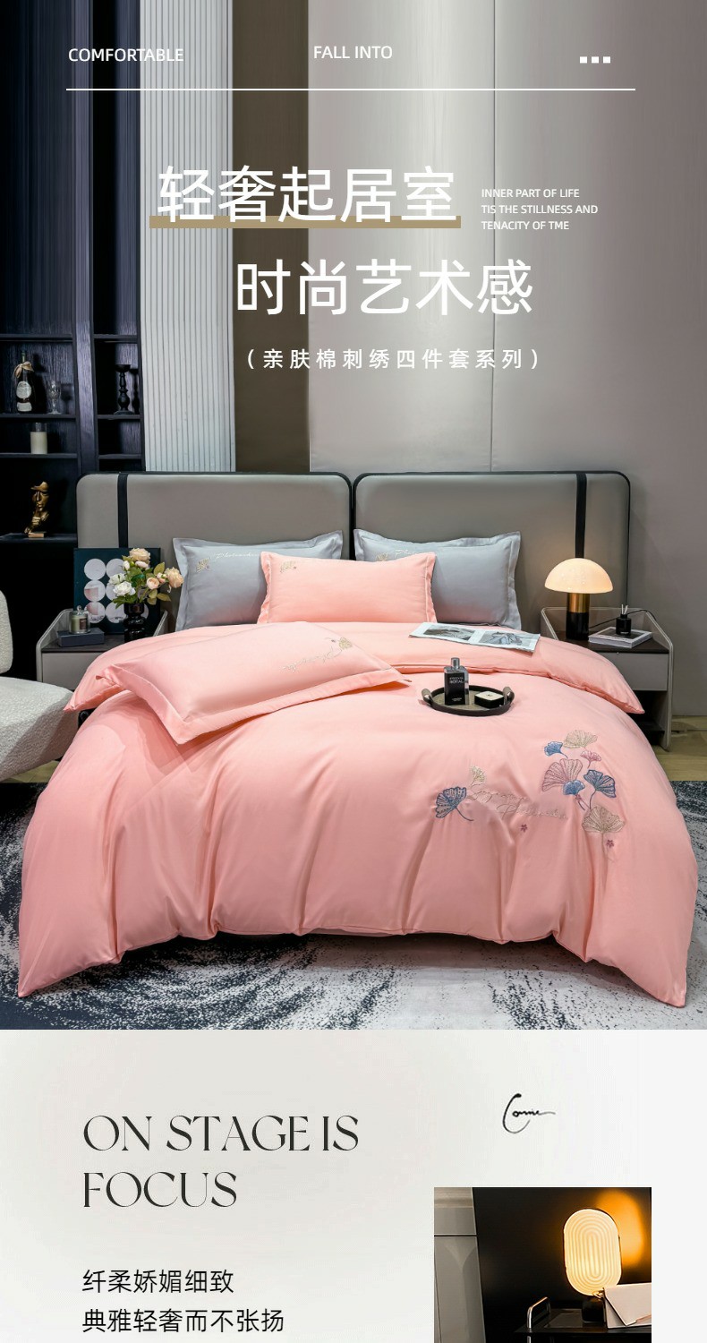 商品名称:悦织湾家纺 90克磨毛刺绣纯色四件套2025新款轻奢韩版公主风精致床上用品绣花亲肤水洗棉4件套 新银杏-玉色